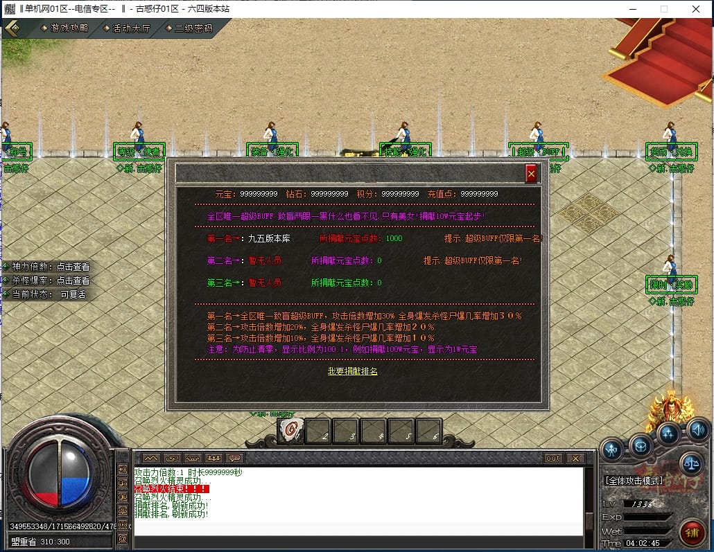 <本服必弄:捐献(切割直接*2倍)+双称号+超级BUFF+宝藏