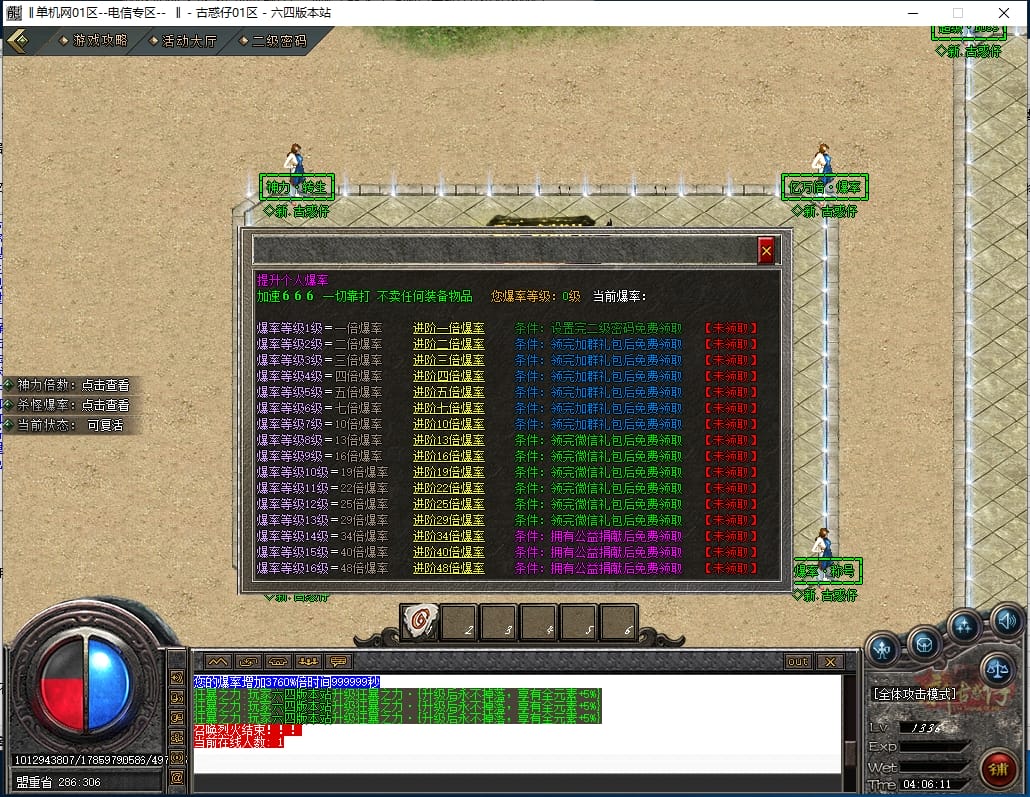 <3.本服爆率全开,所有材料装备都能爆出,一切看脸,建议玩家先升级爆率称号,切割称号,领