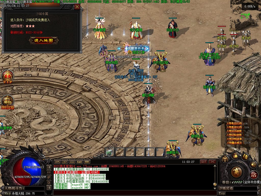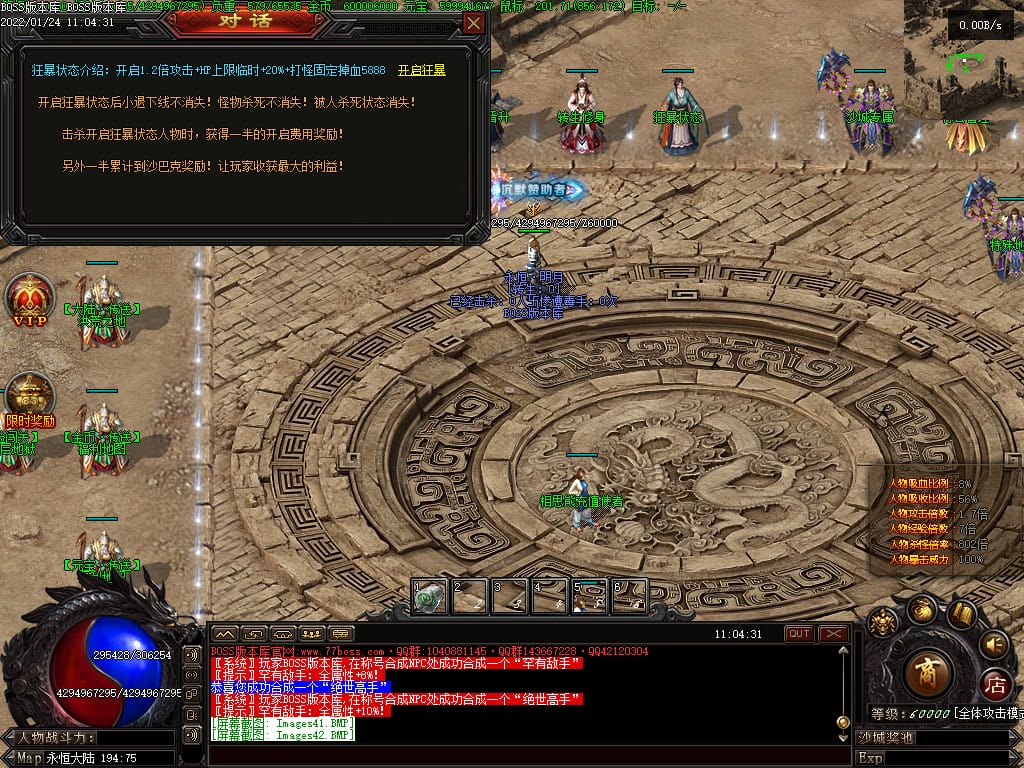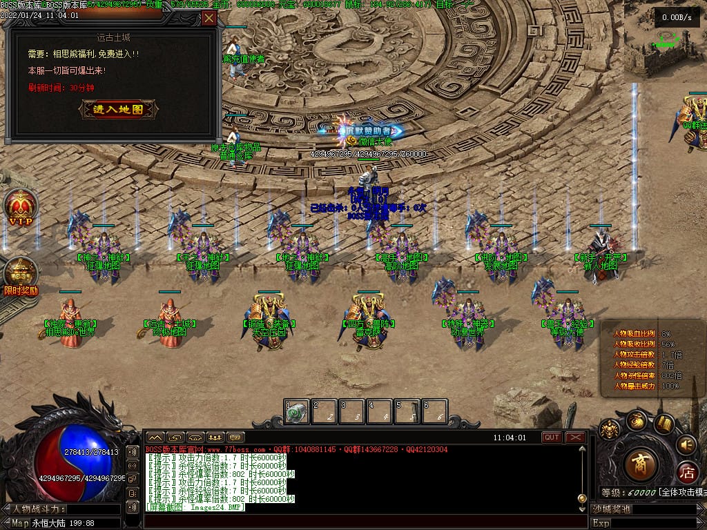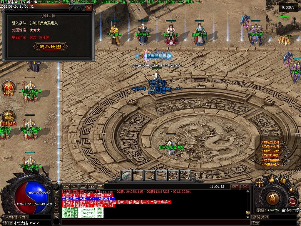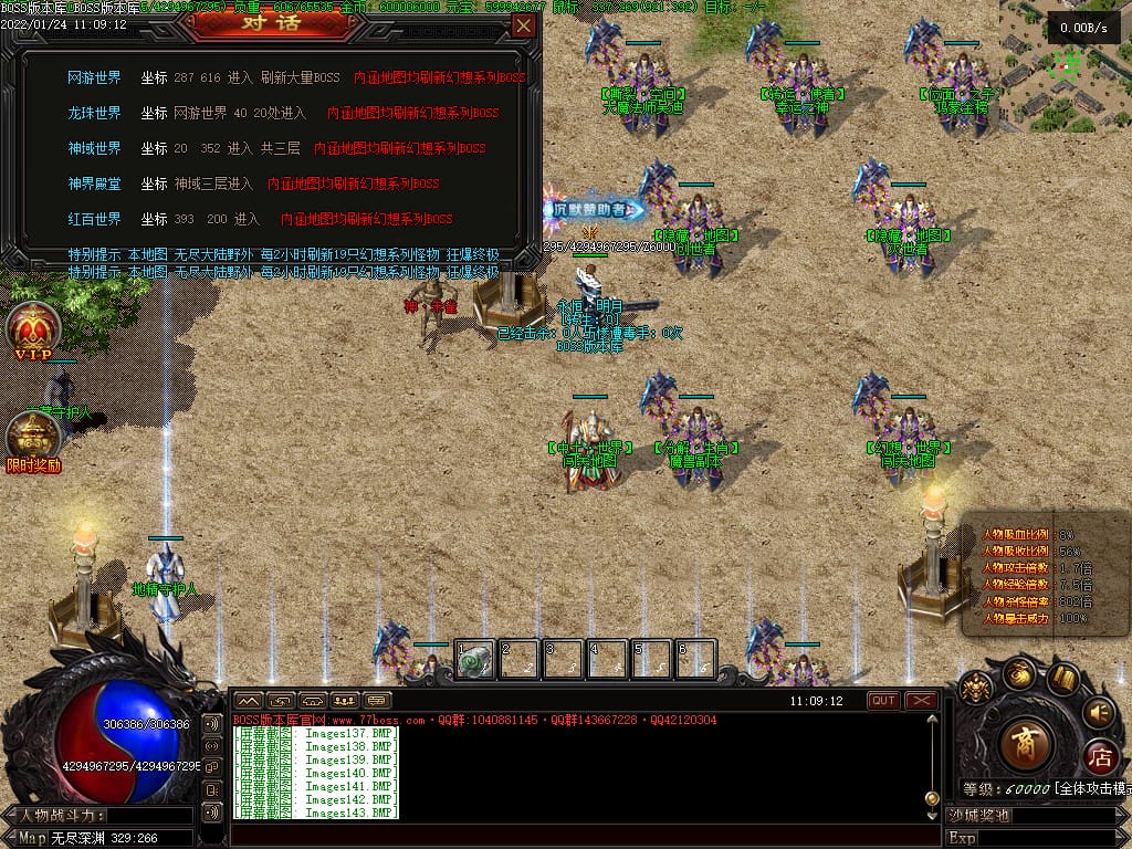 新增 网游世界 地图一枚 刷新超级BOSS 十凶守护 以及 4大神兽 以及终极神兽杨熊猫
