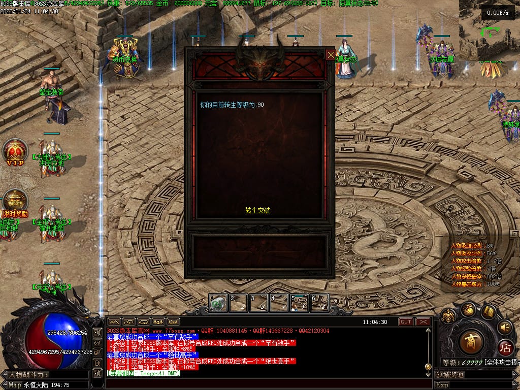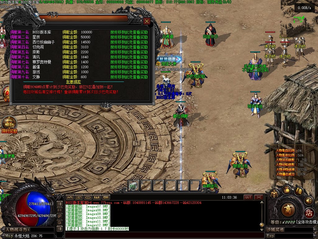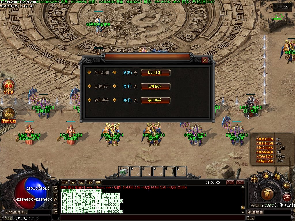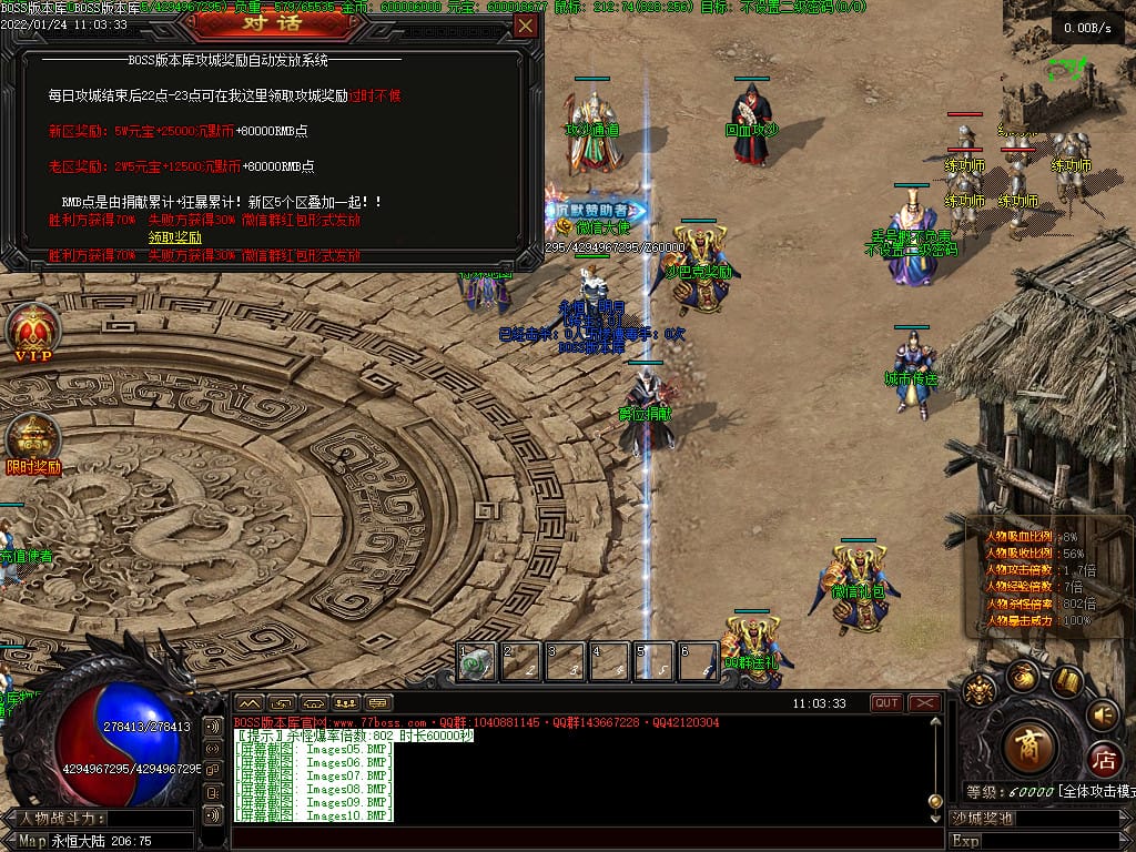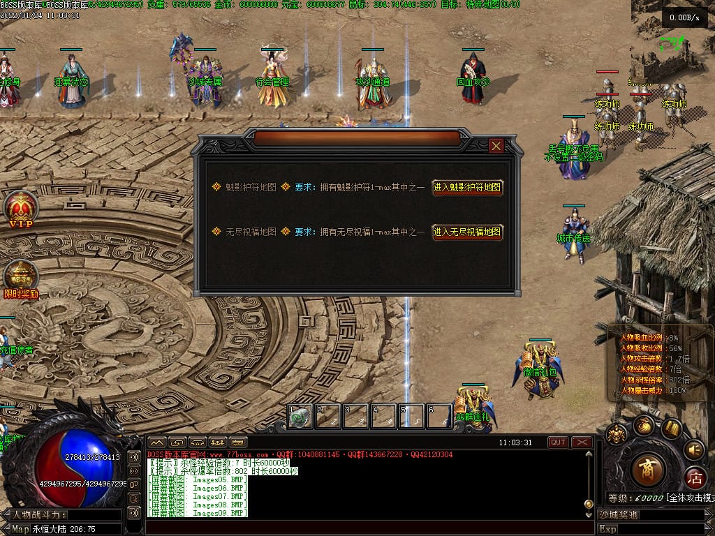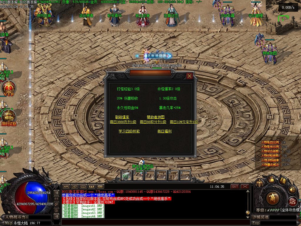 新增 网游世界 地图一枚 刷新超级BOSS 十凶守护 以及 4大神兽 以及终极神兽杨熊猫