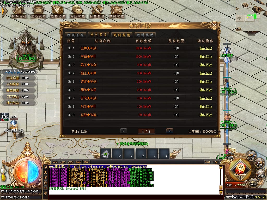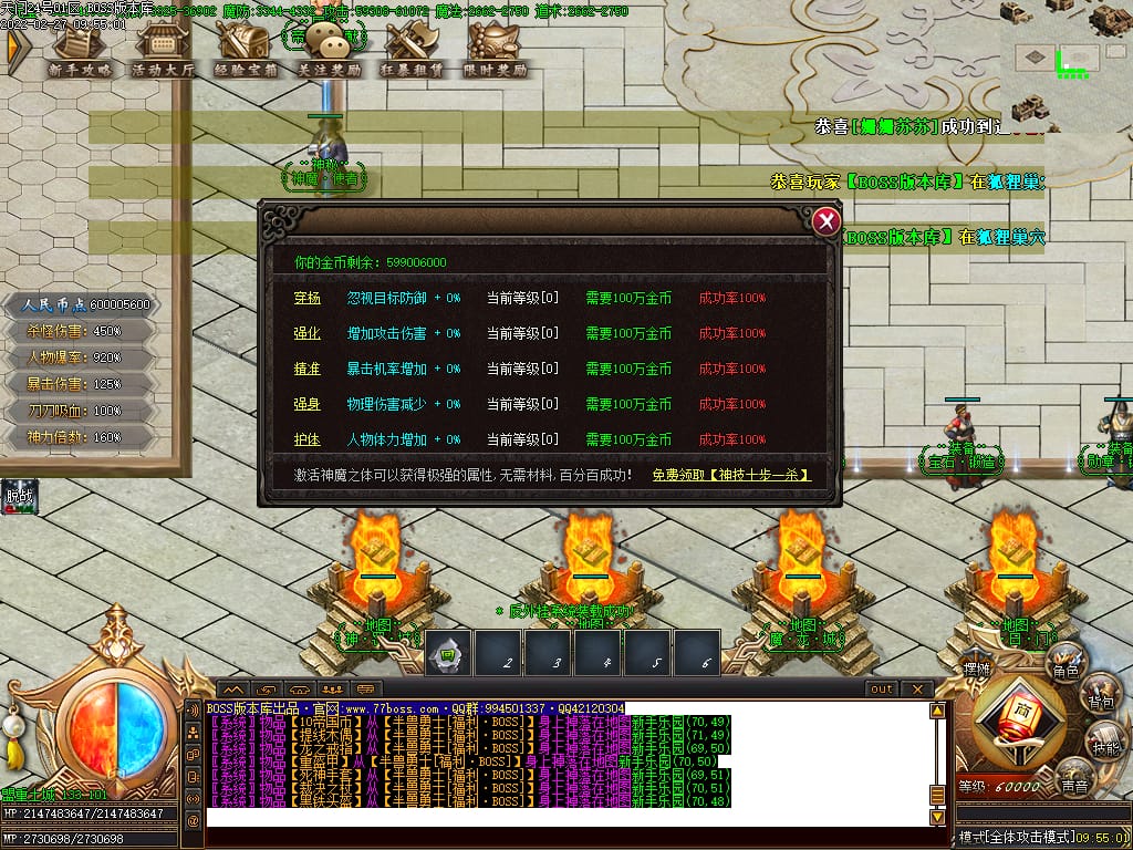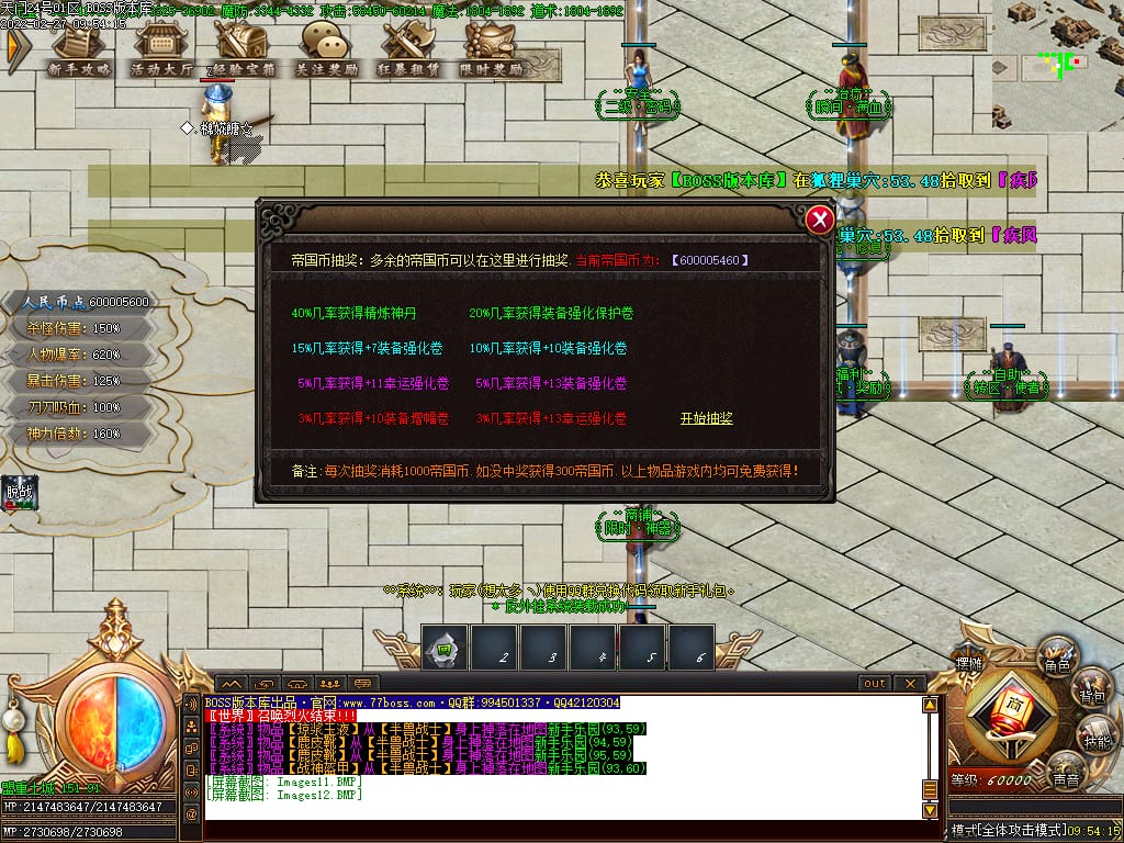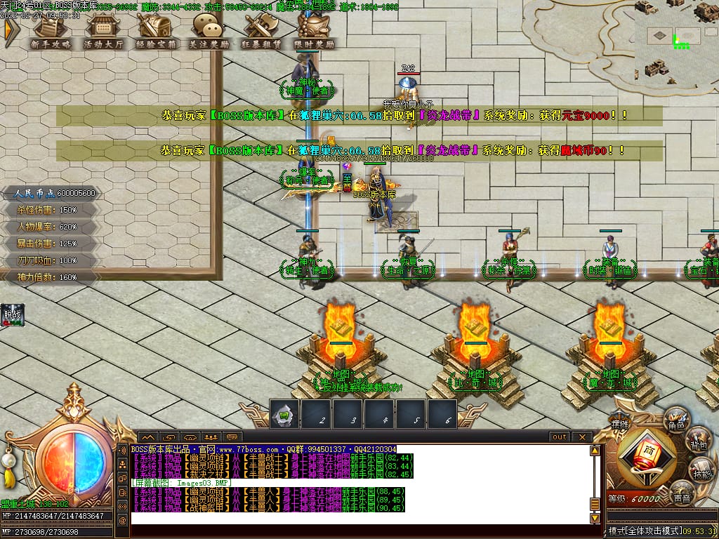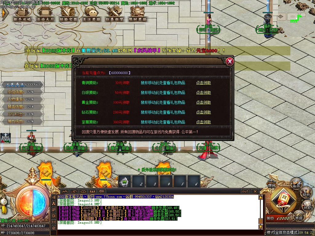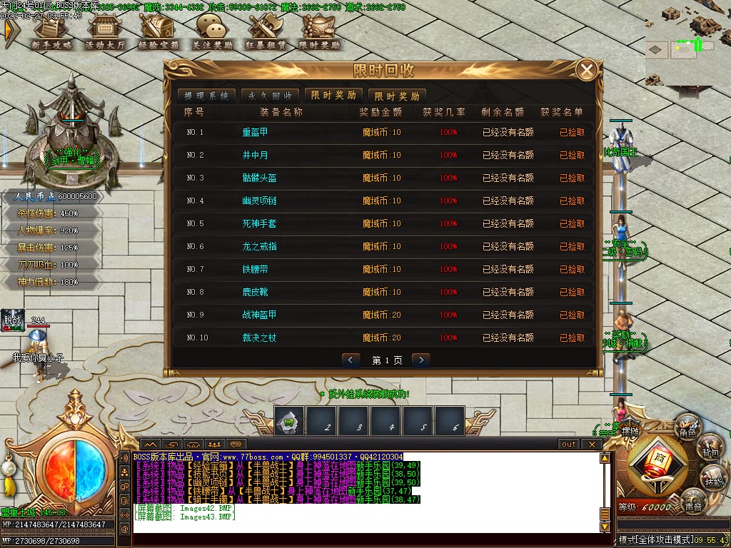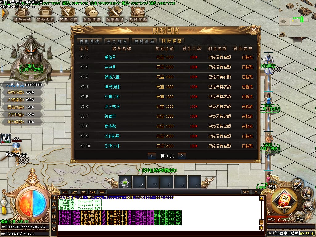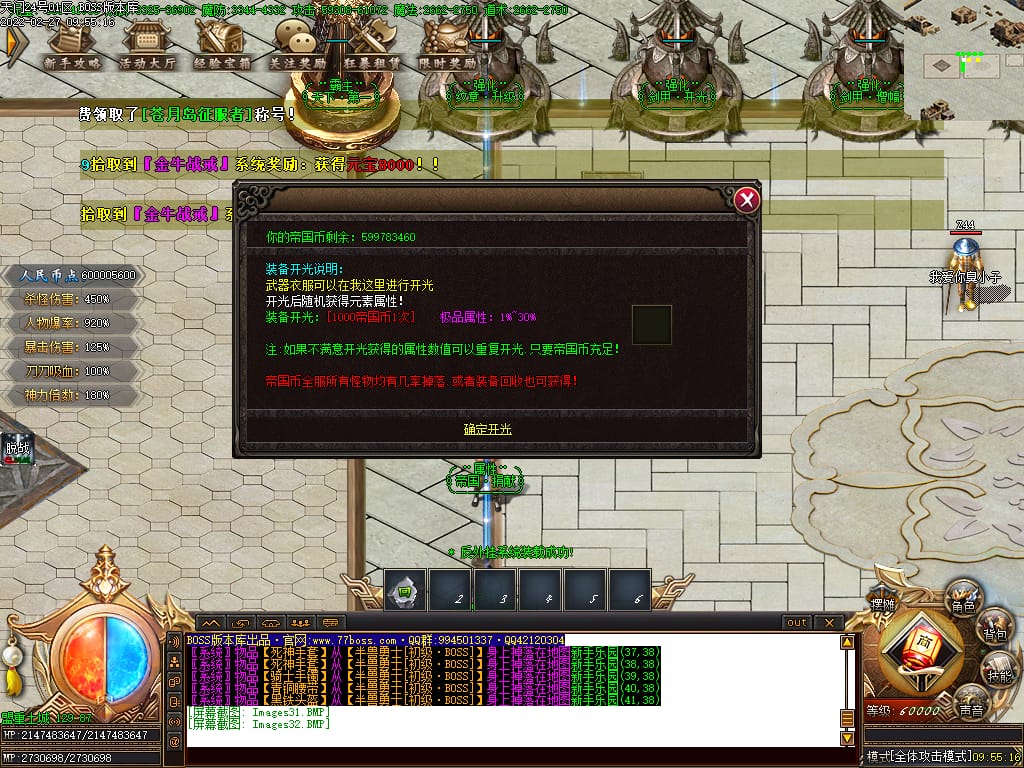 3.赠送:人物爆率提升150%.神力倍数+30%