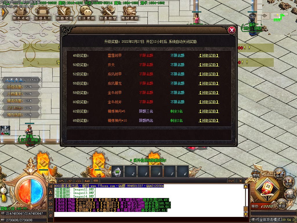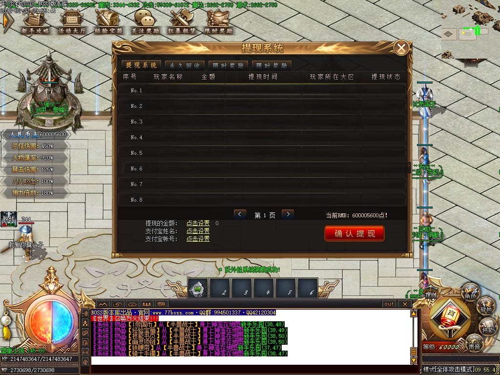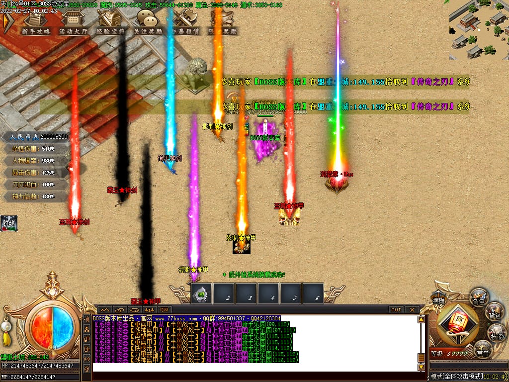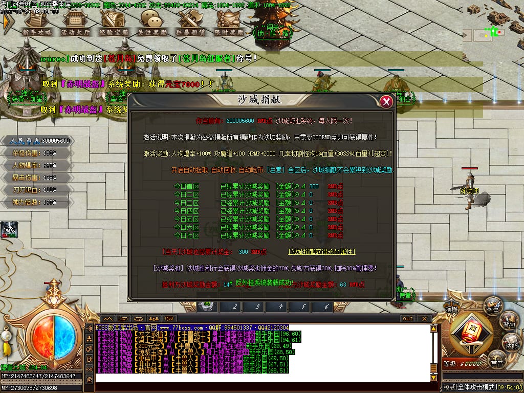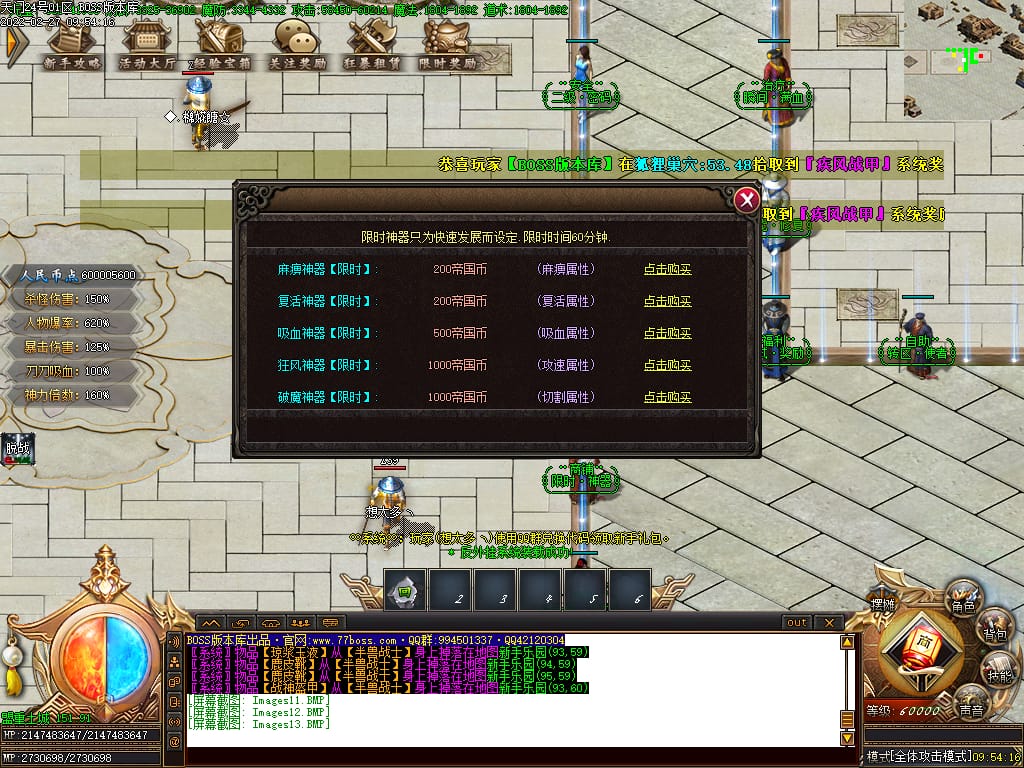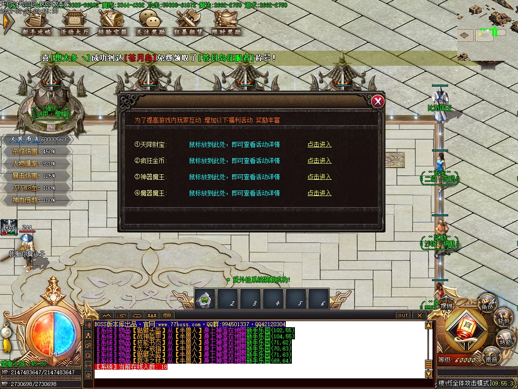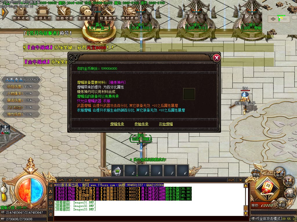 3.赠送:人物爆率提升150%.神力倍数+30%