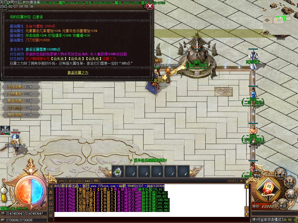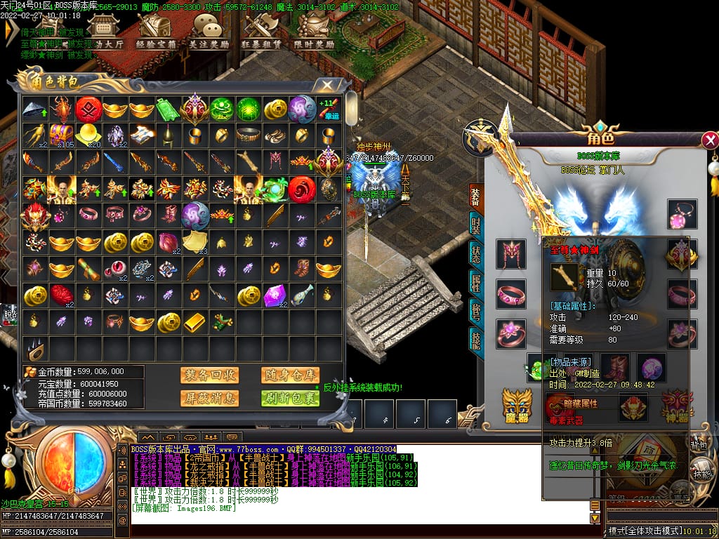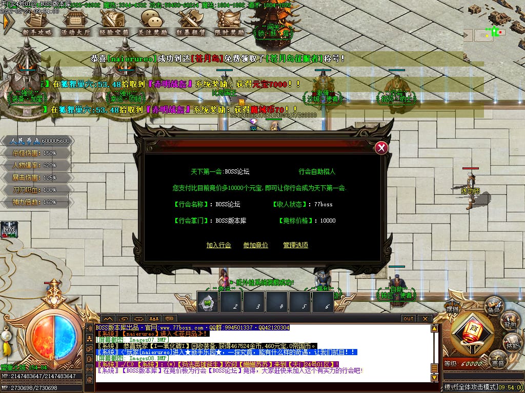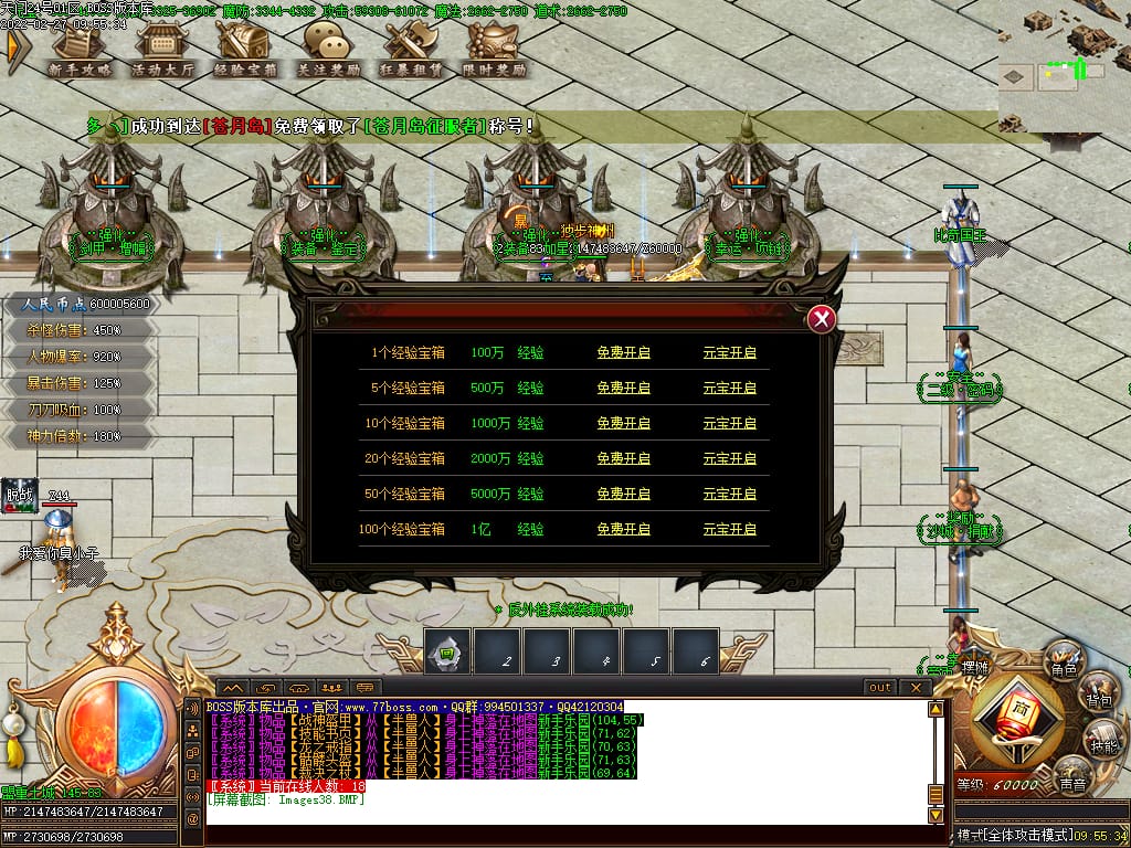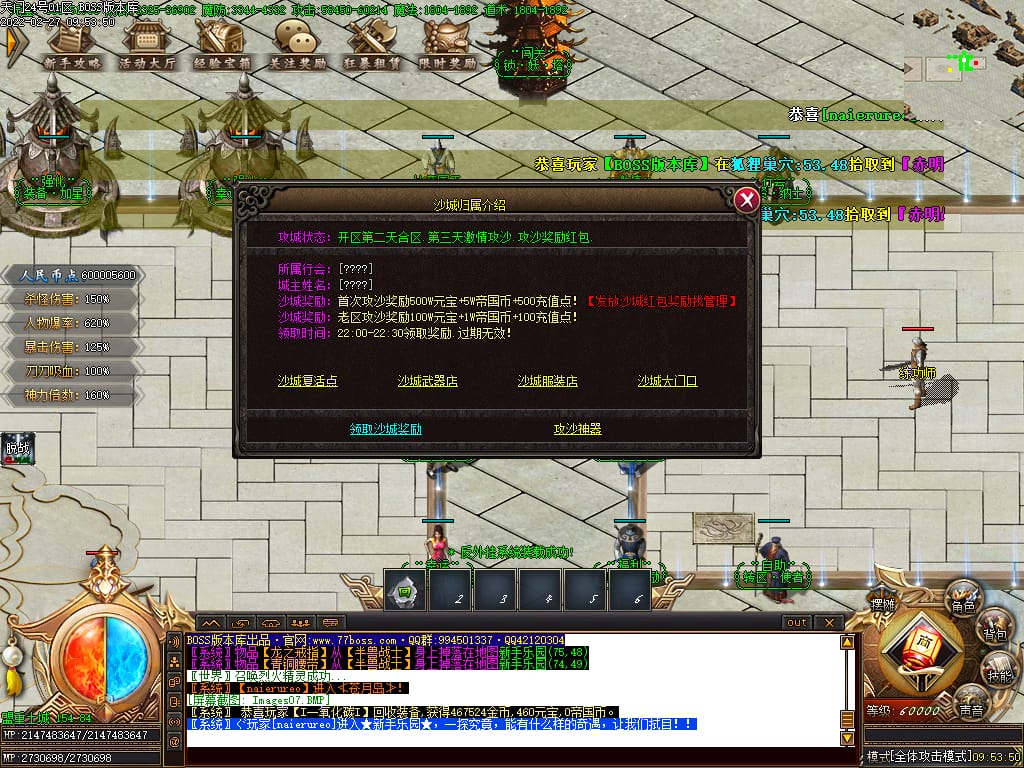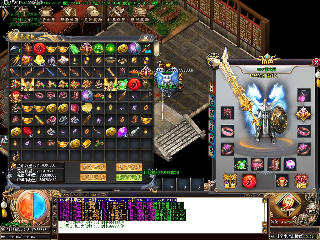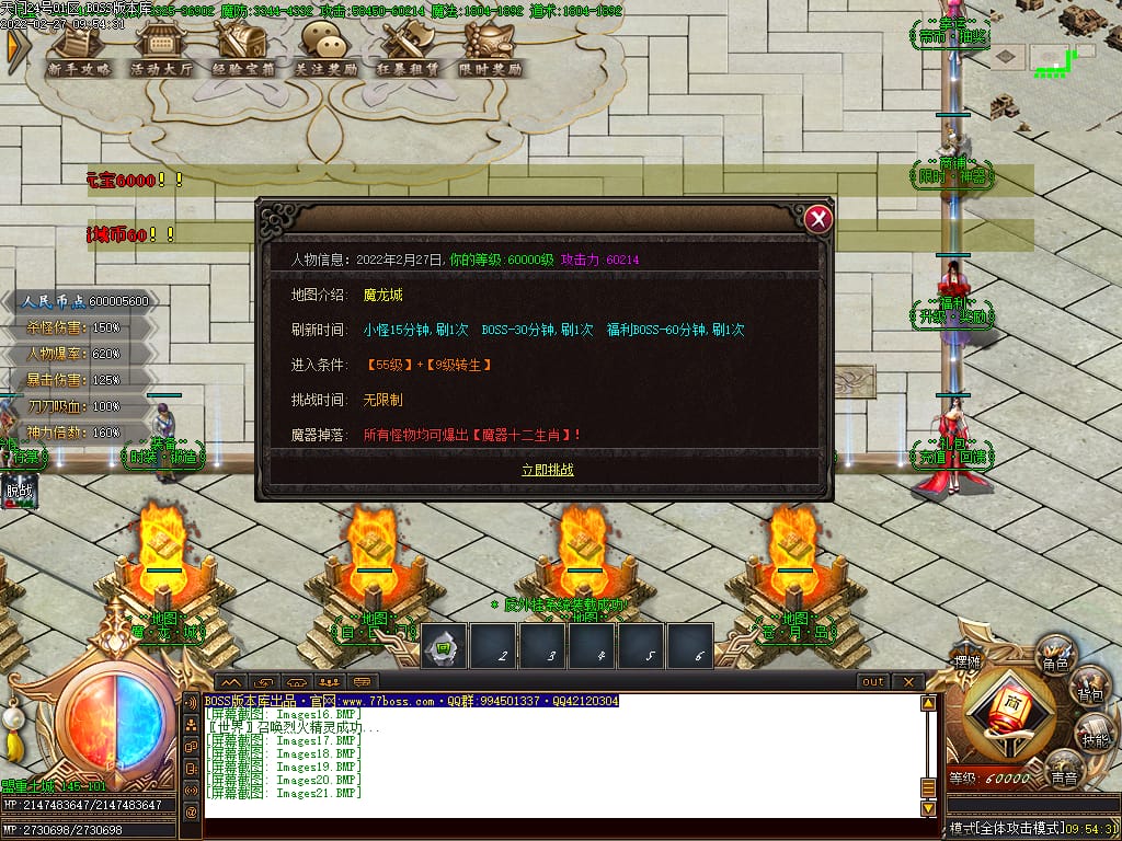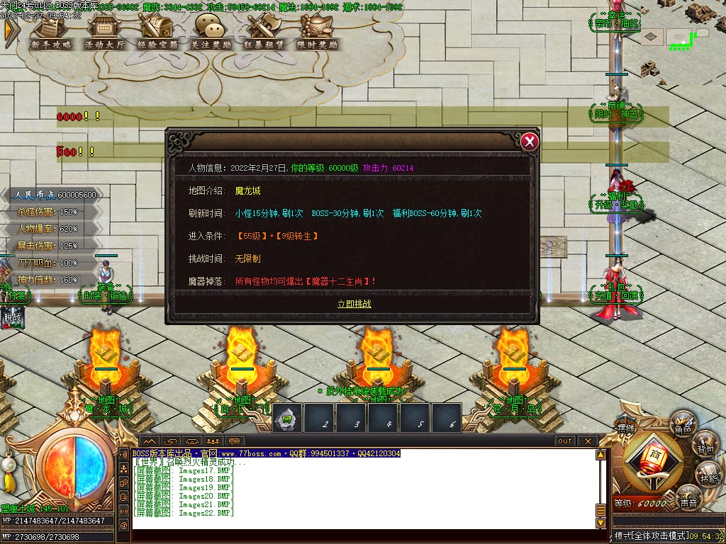 3.赠送:人物爆率提升150%.神力倍数+30%