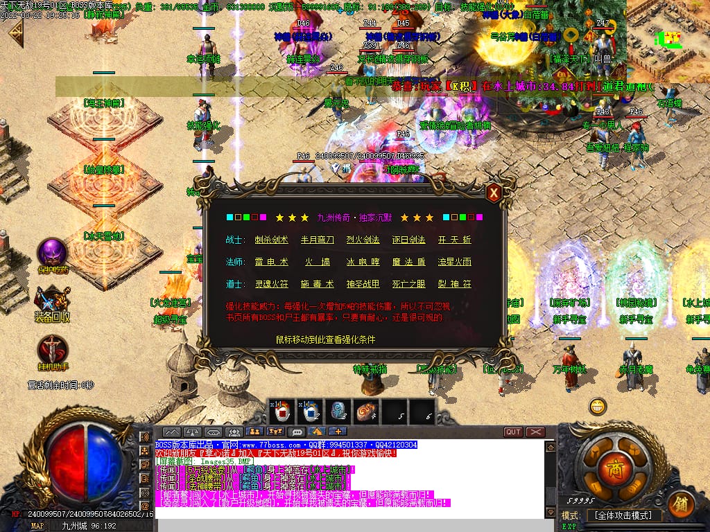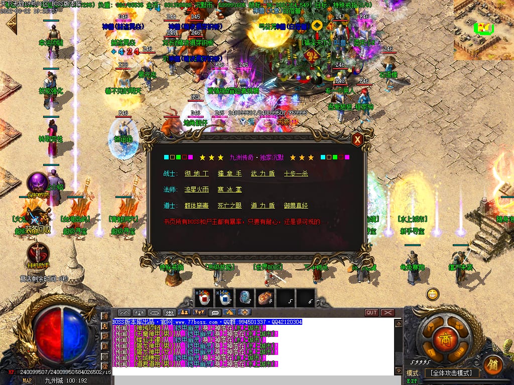 1) 上线后领取qq群礼包(888888)获取三职业召唤宝宝技能书,一套起步特殊,非常爽(必备)