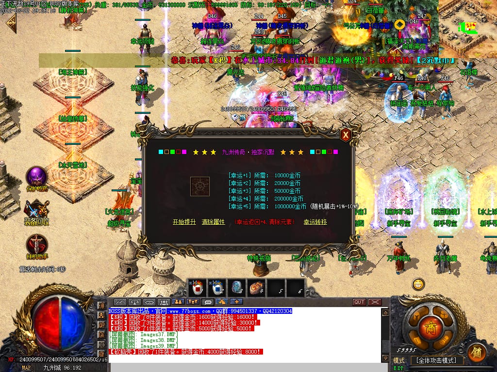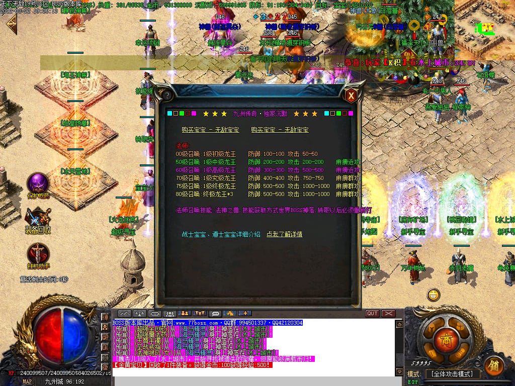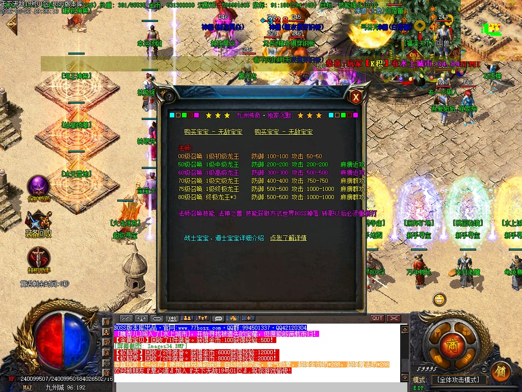 宝宝系统在土城左边请看清楚,对前期帮助很大!,3种会员属性不同,回收加成,爆率提升,神力倍功都有不同,请在NPC详细查看