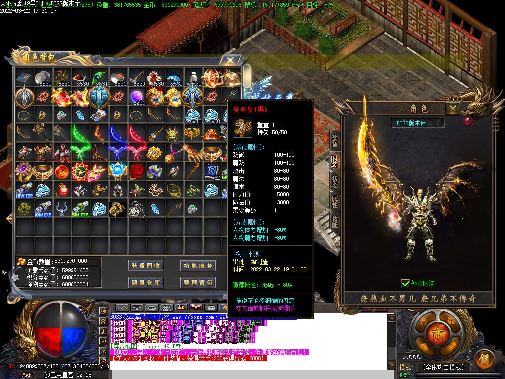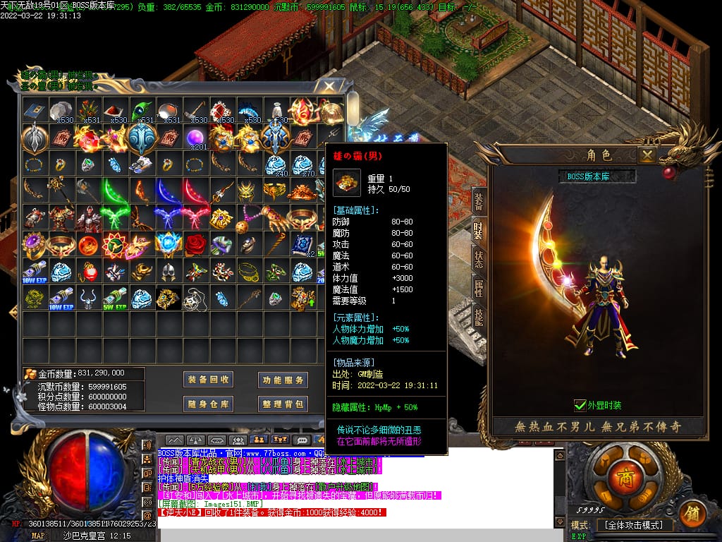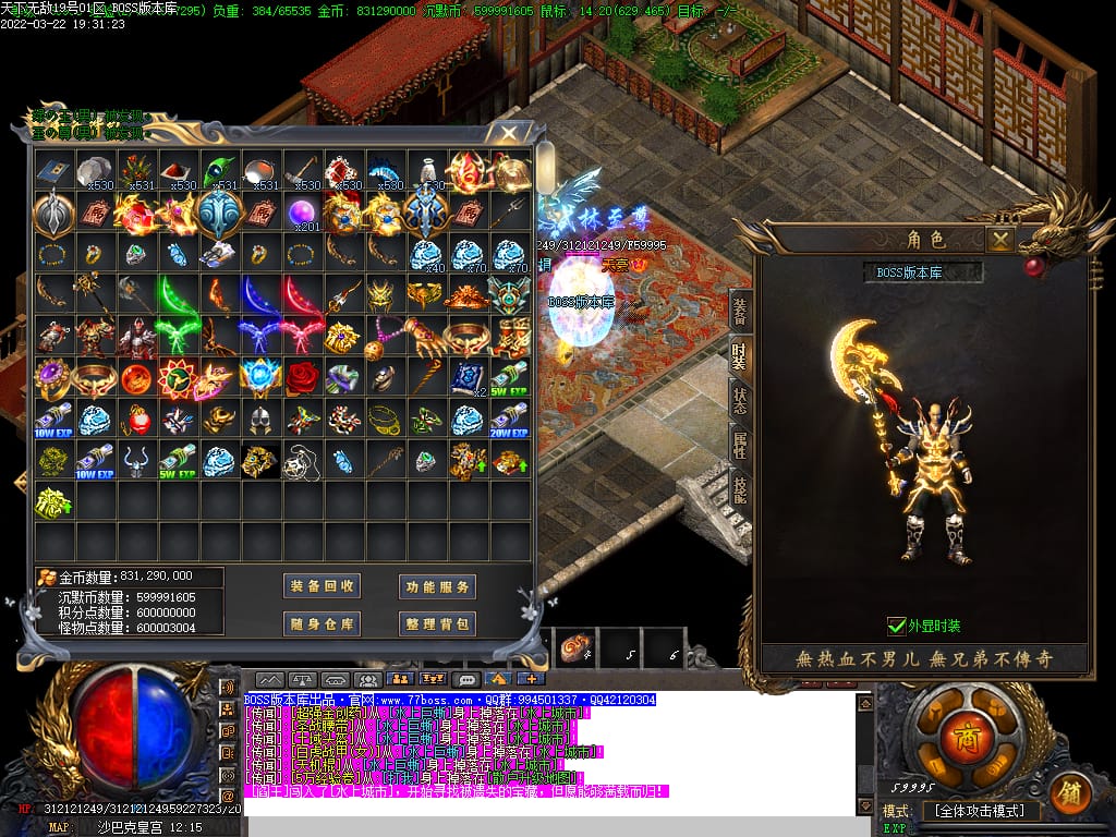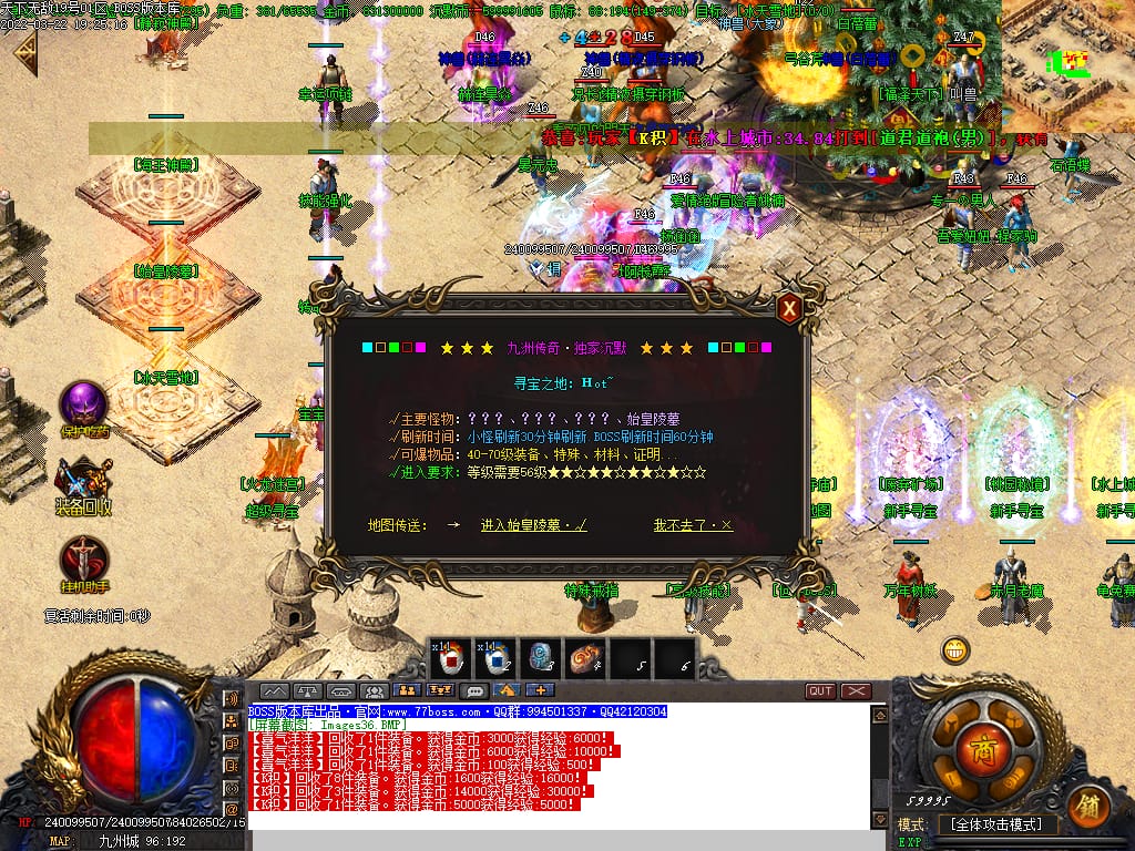 注意: 称号切割,紫气东来+捐献切割 可切任何怪物! 9转以上的武器带吸血 (包含9转武器)