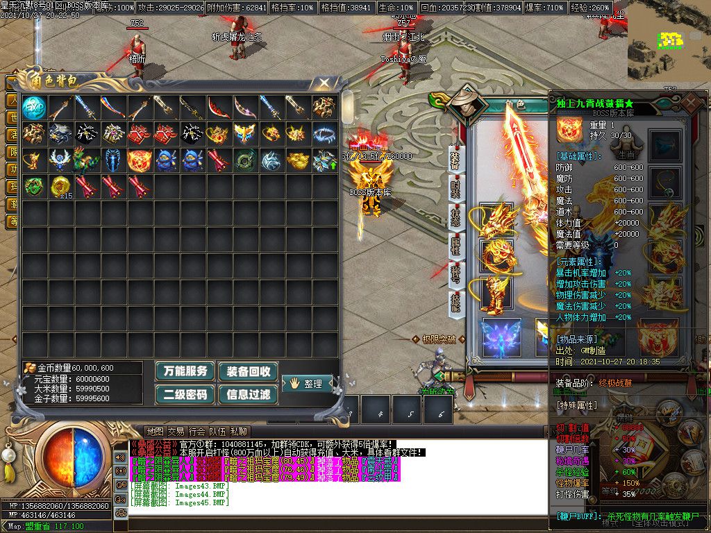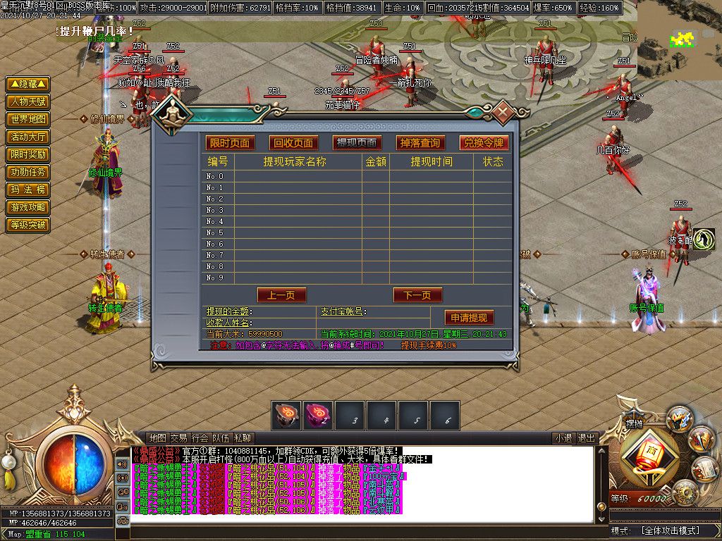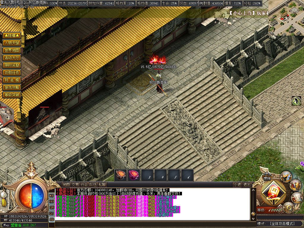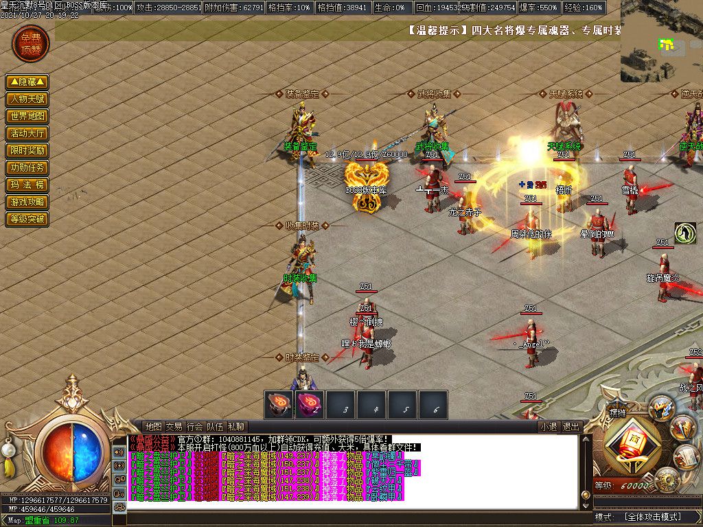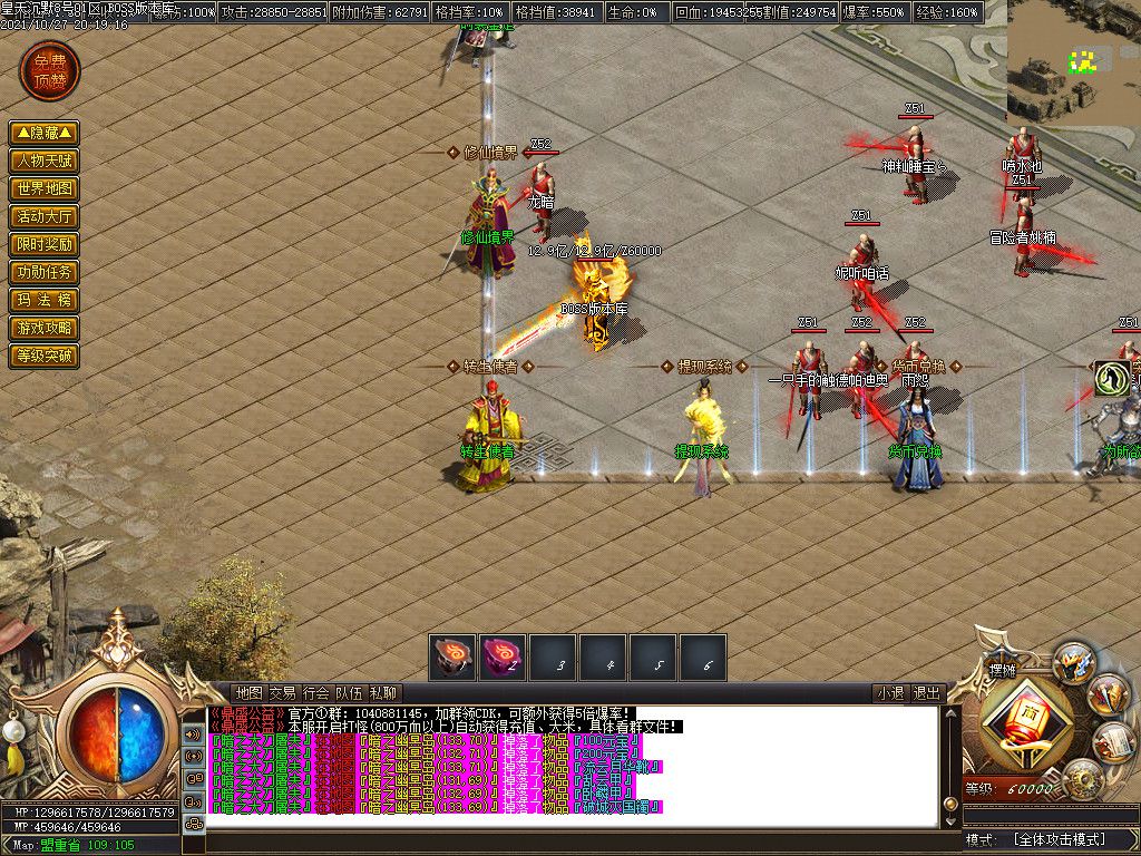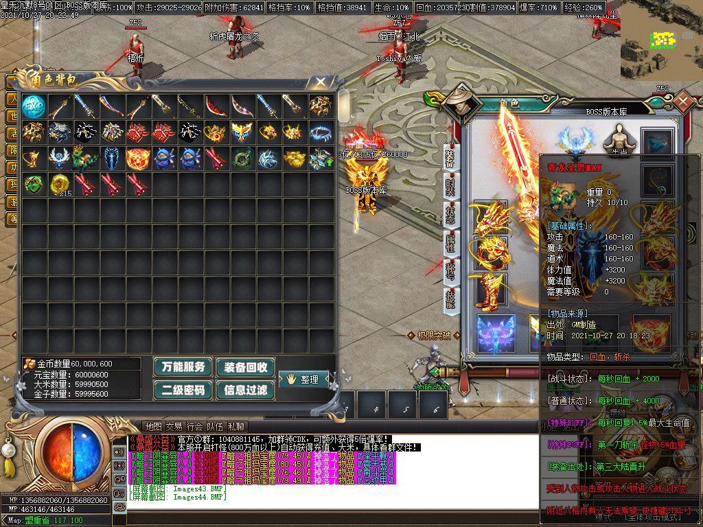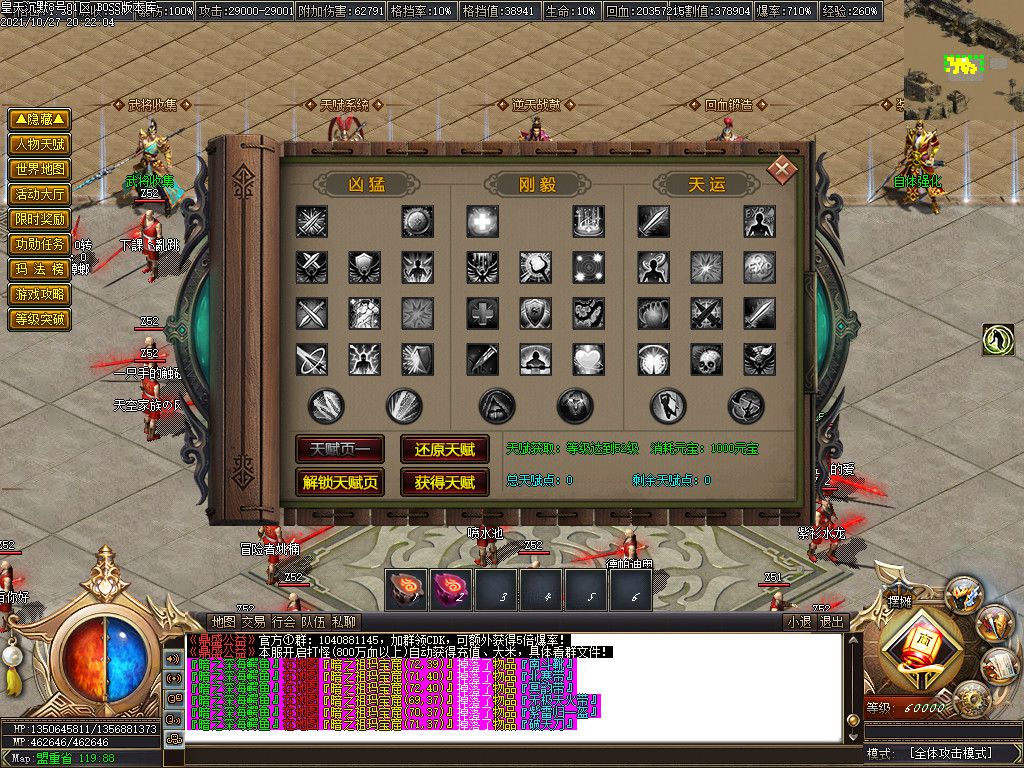 【狂暴系统】: 本服狂暴10R=100大米 永久赠送 切割值+1000 怪物爆率+10% 死亡不小时 开启属性 切割值+5000 怪物爆率+30% 打怪伤害+10%生命值+3000 基础攻击+150 全米素+5% 死亡消失 击杀者可获得50大米