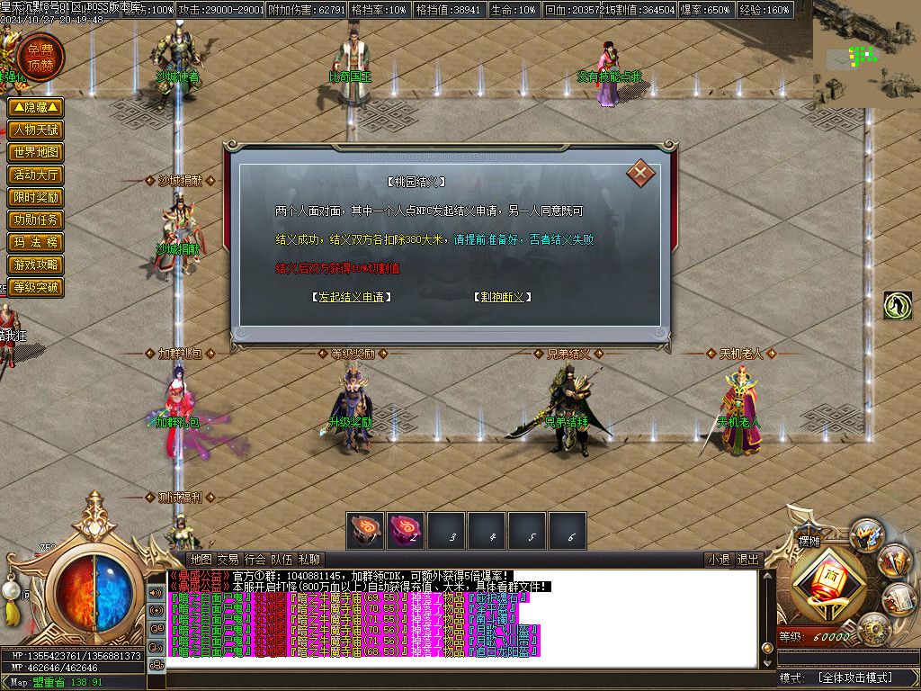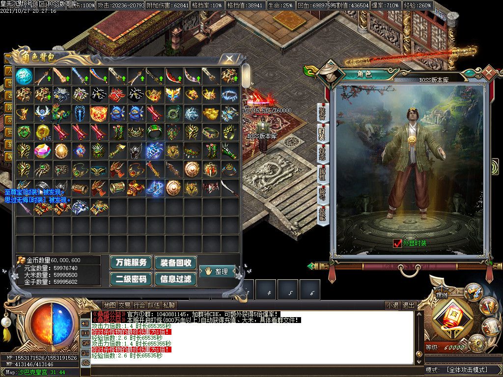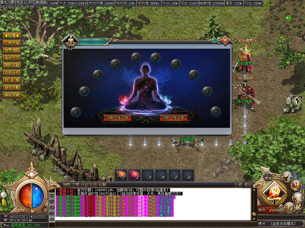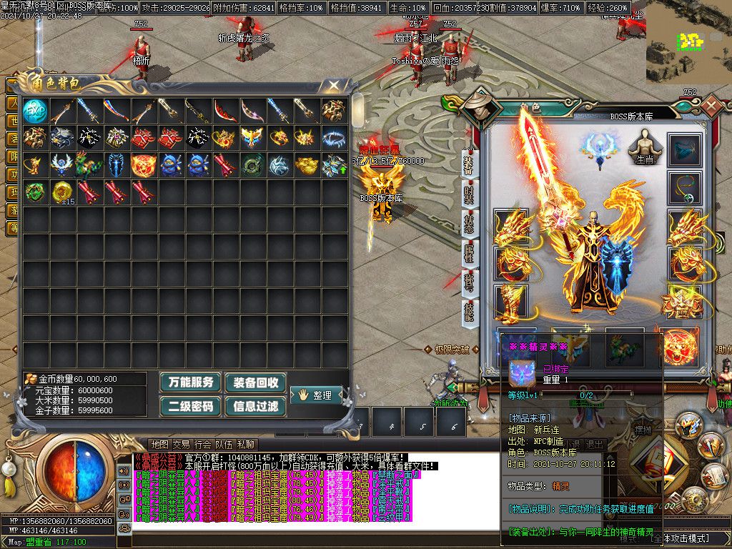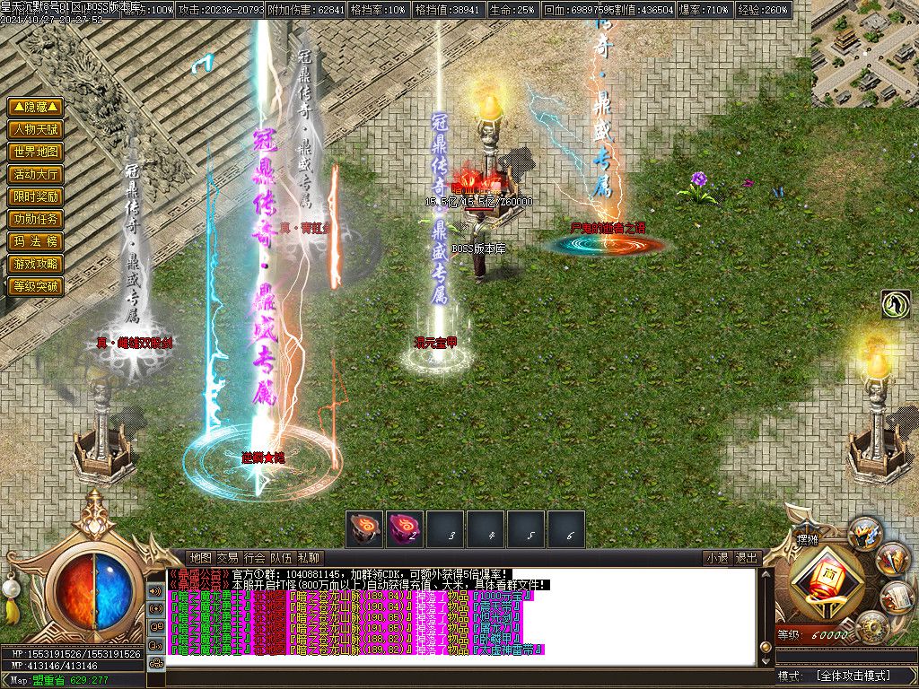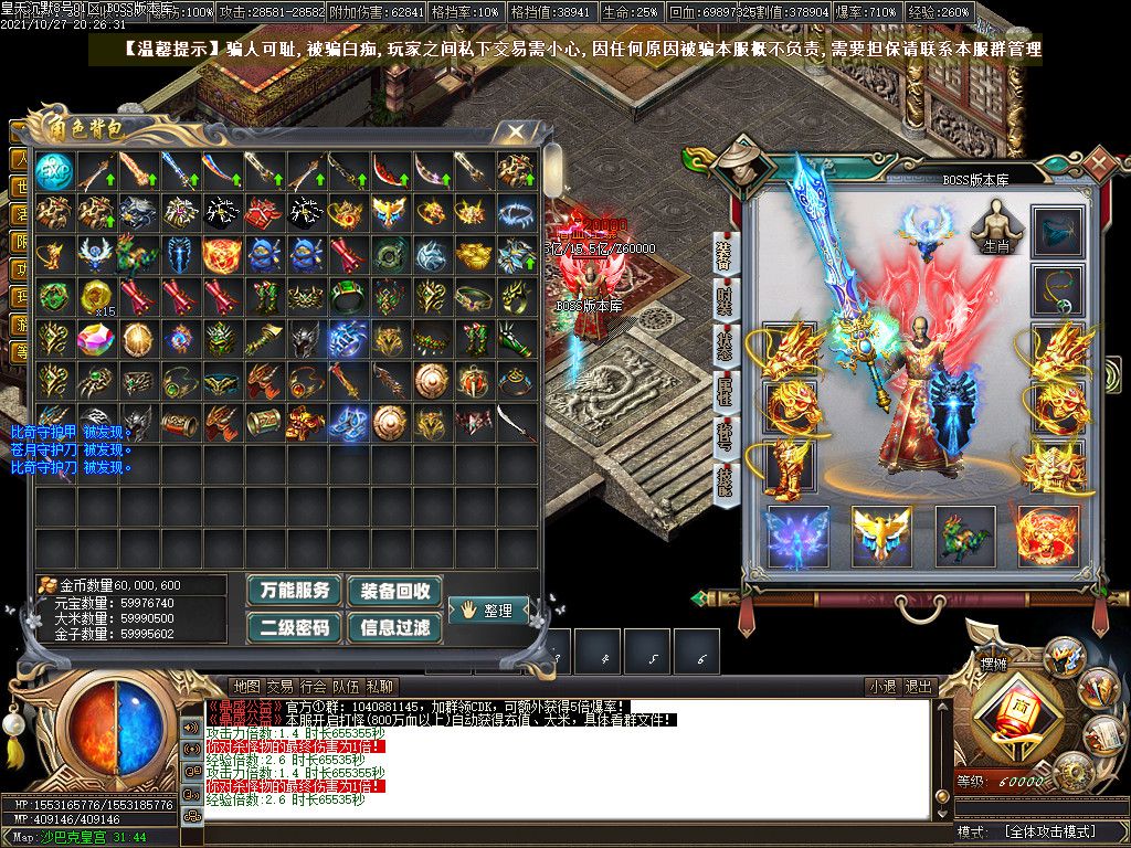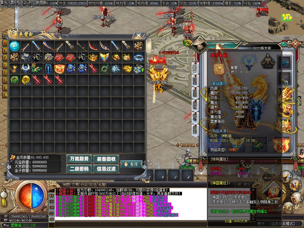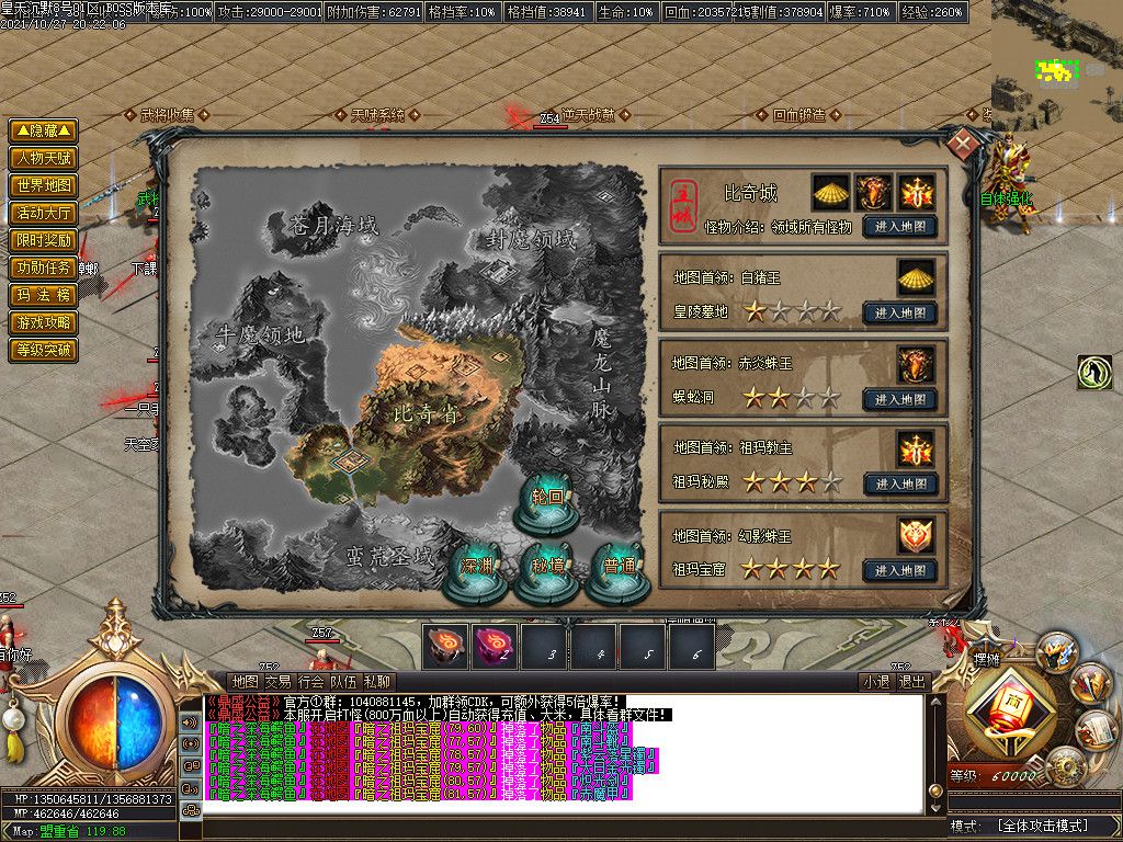 【狂暴系统】: 本服狂暴10R=100大米 永久赠送 切割值+1000 怪物爆率+10% 死亡不小时 开启属性 切割值+5000 怪物爆率+30% 打怪伤害+10%生命值+3000 基础攻击+150 全米素+5% 死亡消失 击杀者可获得50大米