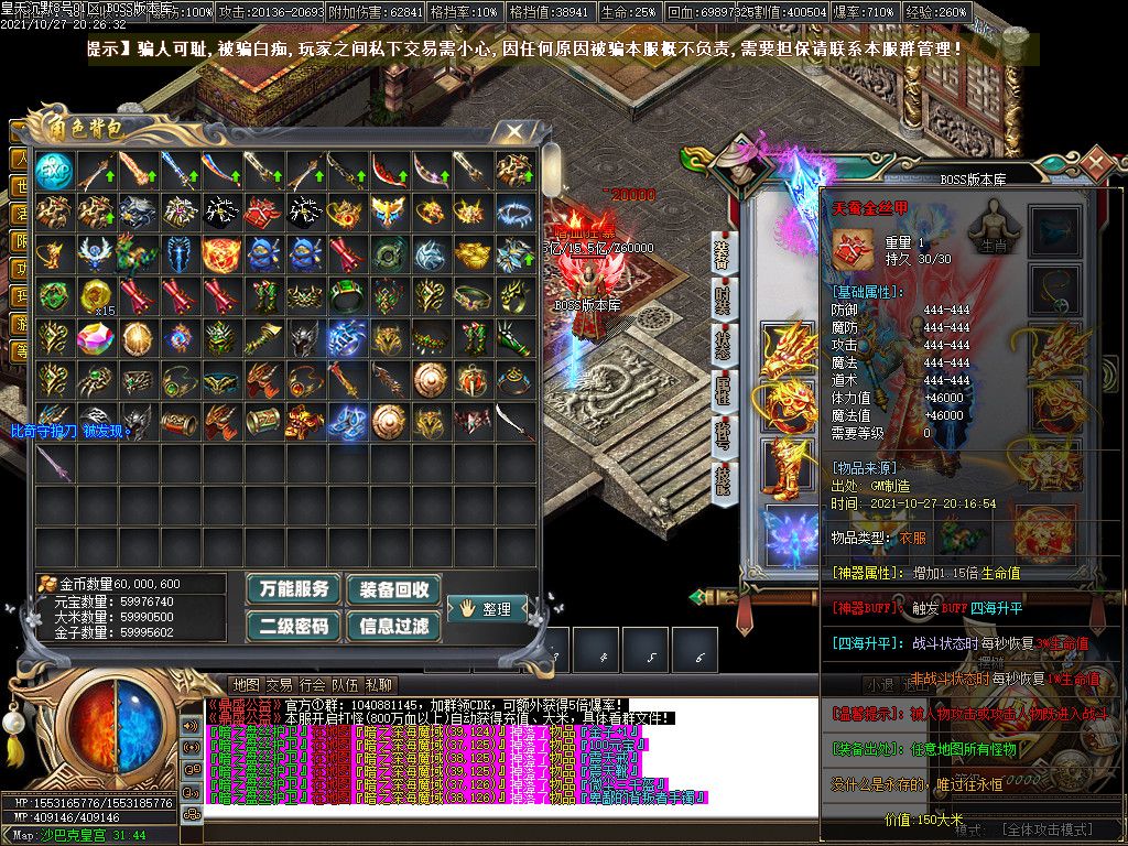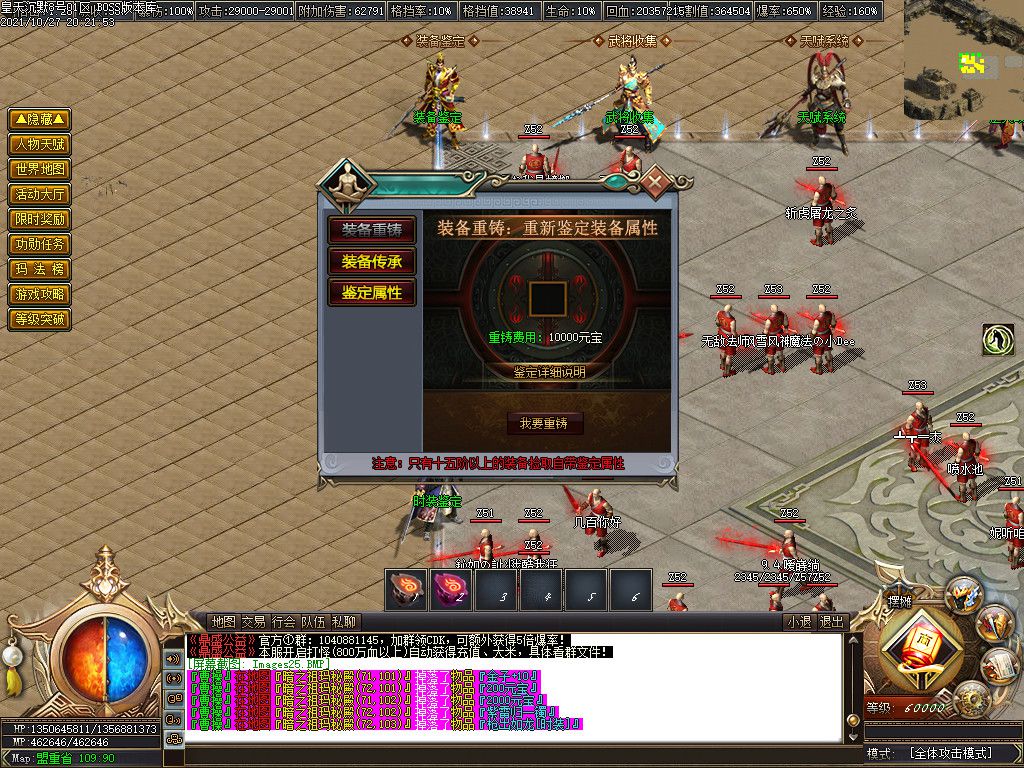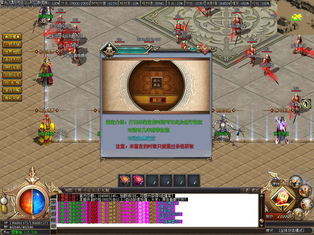 【关于鉴定】:具体请到土城108:88装备鉴定处查看!【拾取装备第一次自动鉴定,一定要把好的属性留起来,可以转移】