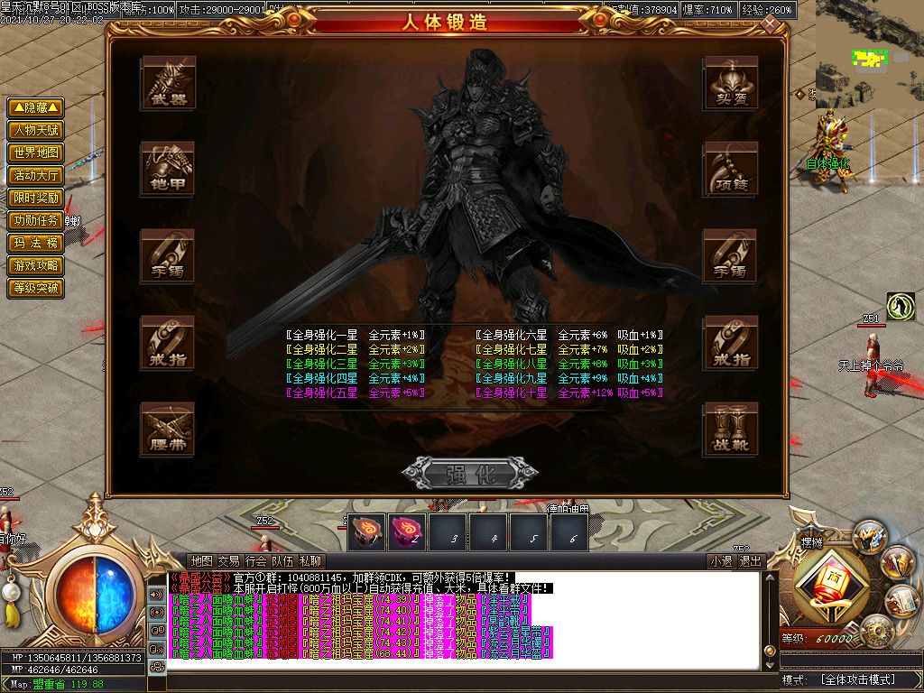 【关于强化】: 全身强化一星 【全米素+1%】 全身强化二星 【全米素+2%】 全身强化三星 【全米素+3%】 全身强化四星 【全米素+4%】 全身强【化五星 【全米素+5%】 全身强化六星 【全米素+6%+吸血+1%】 全身强化七星 【全米素+7%+吸血+2%】 全身强化八星 【全米素+8%+吸血+3%】 【全身强化九星 【全米素+9%+吸血+4%】 全身强化十星 【全米素+12%+吸血+5%】