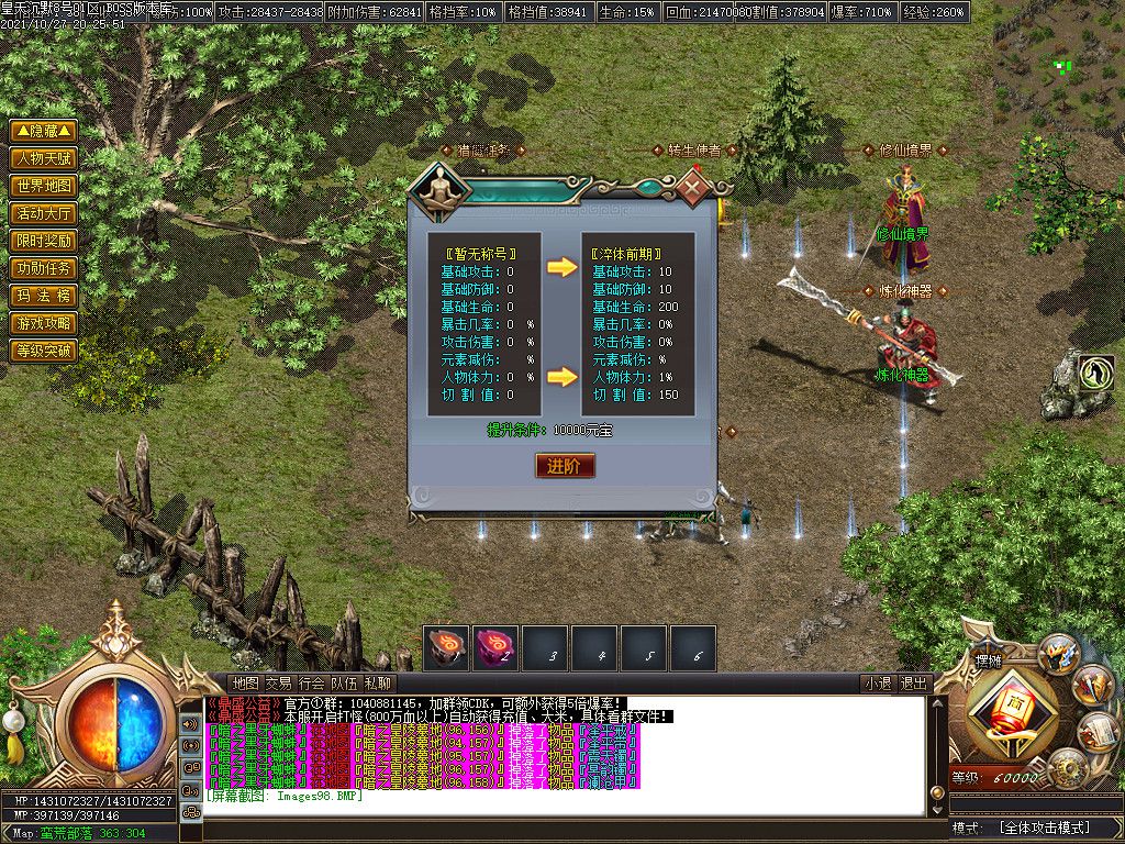 【修仙称号】:称号增加全米素和全面板属性,在修仙NPC处晋级,消耗货币为元宝!【无其他任何暗坑】