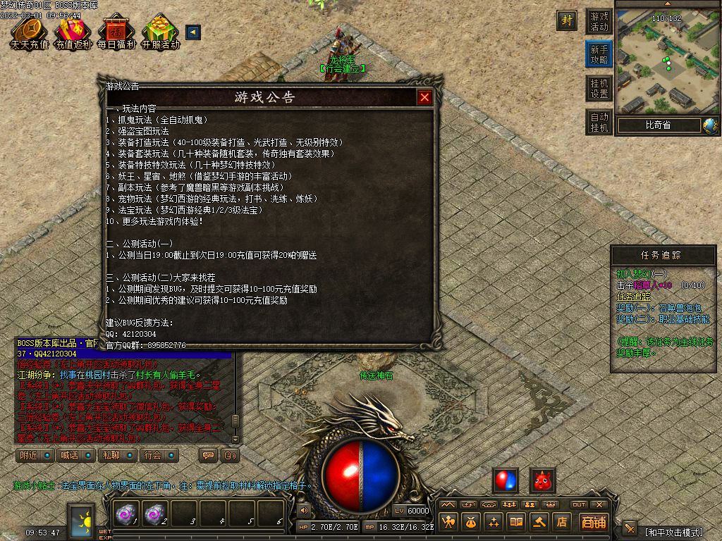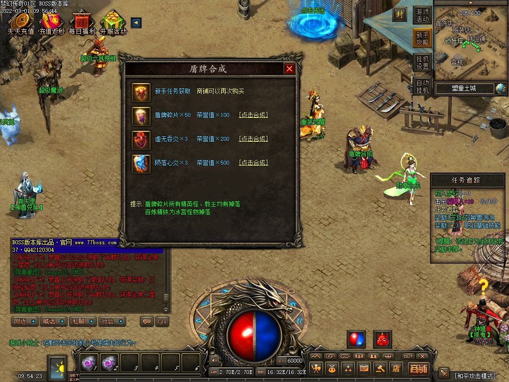 0-30级:玩家创建角色直接出生在新手村,先领取游戏左上角的各种礼包,礼包码在群里与公众号和抖音号获取,然后依照的新手任务就可以直升30级,还附送相应的基础装备和技能,同时附赠新手双铭文,可以去盟重武器店直接洗练初期的双铭文,同时在商铺购买新手盾牌燎原之火(2w金币),让你打怪更快,还附赠宠物泡泡一只。注:(完成任务后可以选择先做满捉鬼任务与宝图任务,有意想不到的惊喜),捉鬼与挖宝图任务建议玩家每日必做。