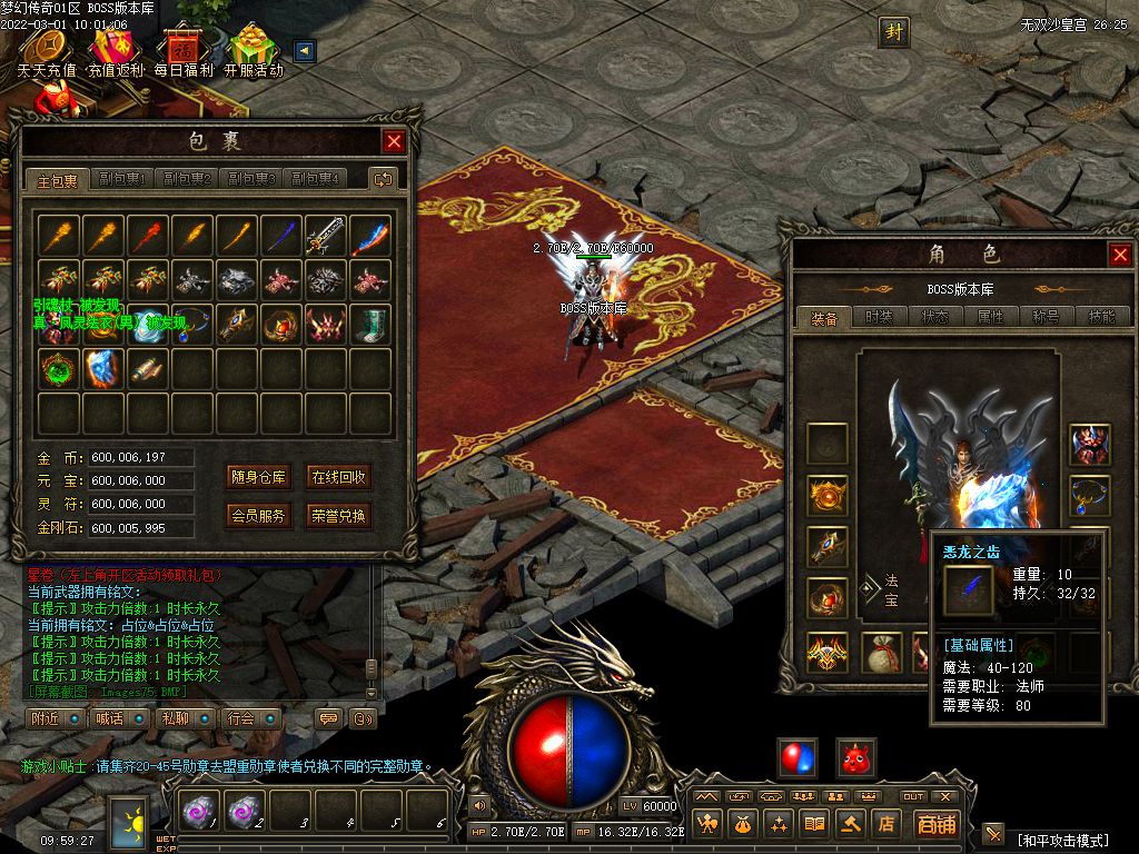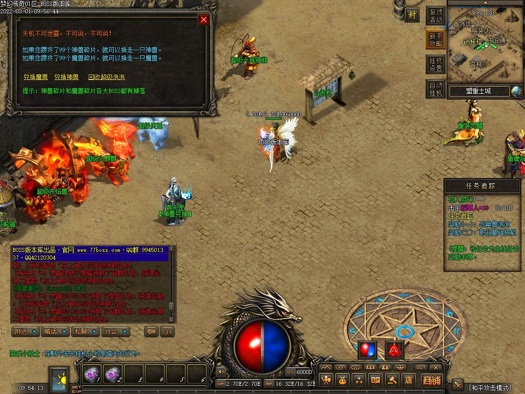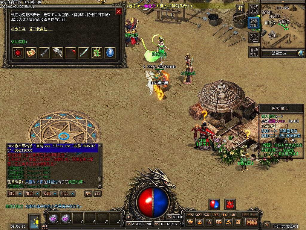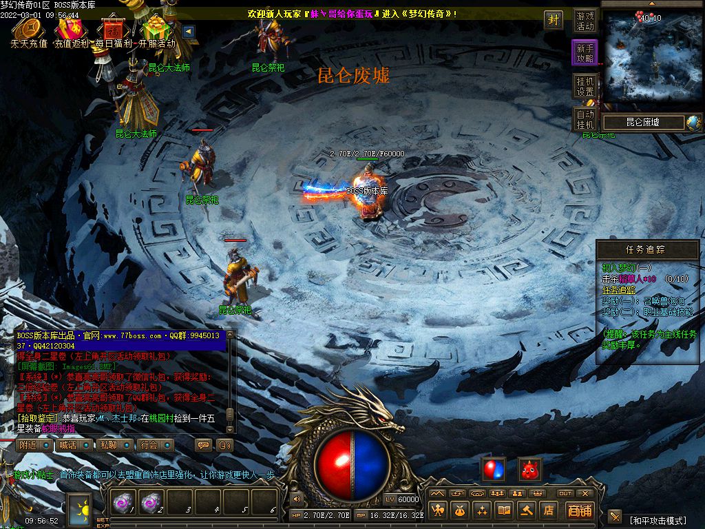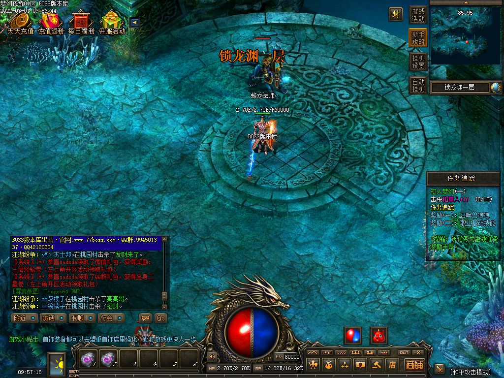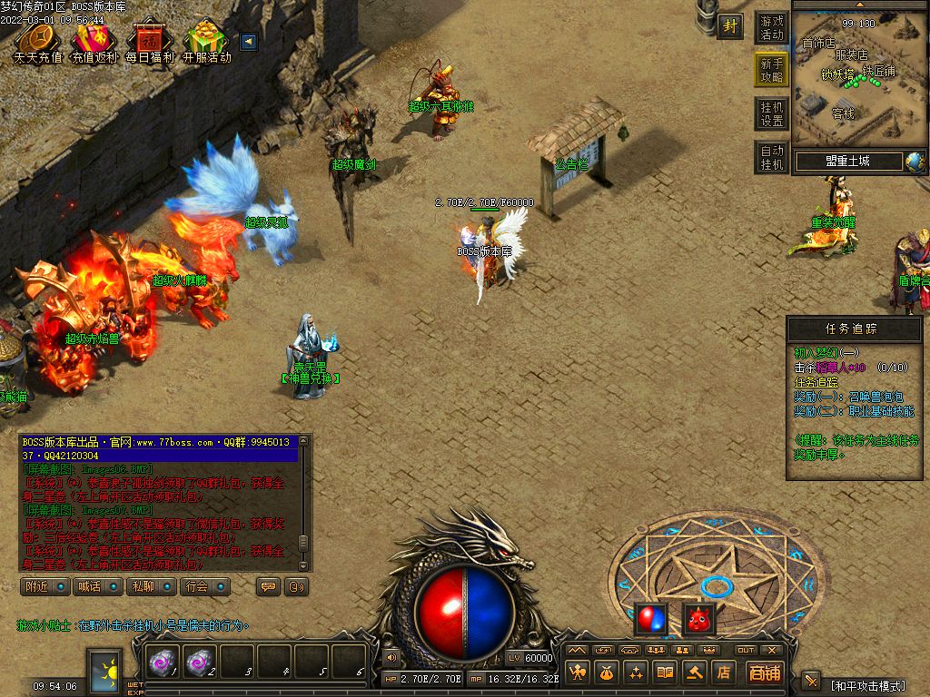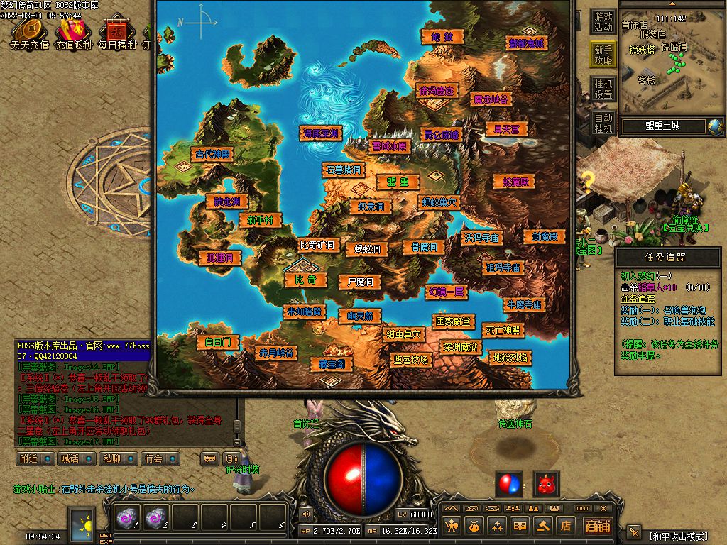 3.魔龙峡谷1-3层都可挂机,地图大,怪物分散,不易被怪物集火,注意2.3层会有BOSS魔龙教主,能力不知足者建议远离魔龙教主,注意此地图不可以使用随机。(魔龙教主掉落45级使用的各种装备)。