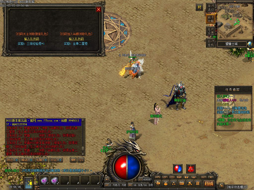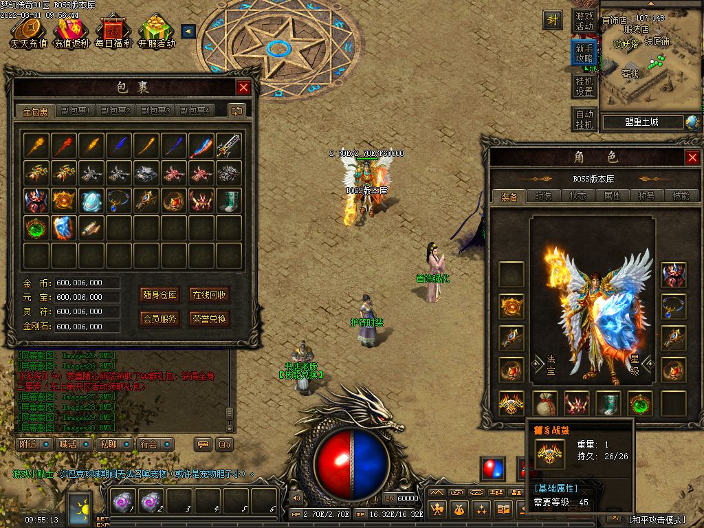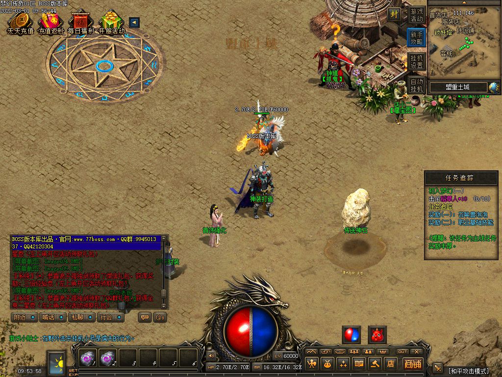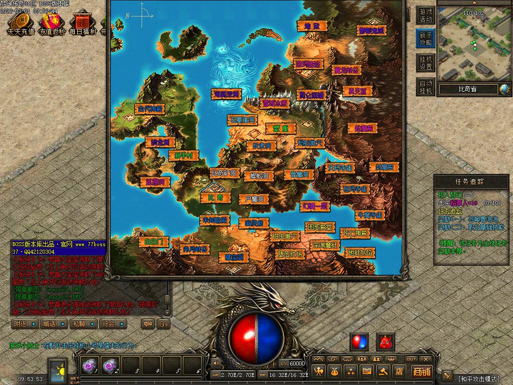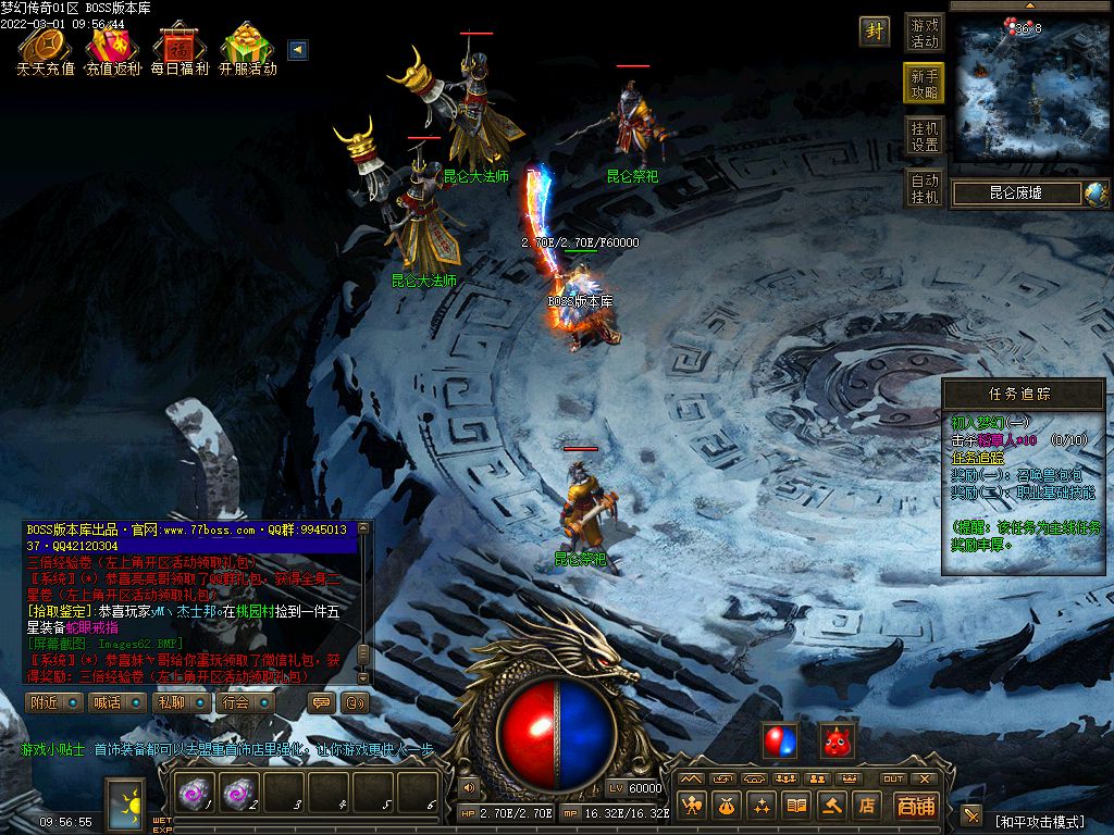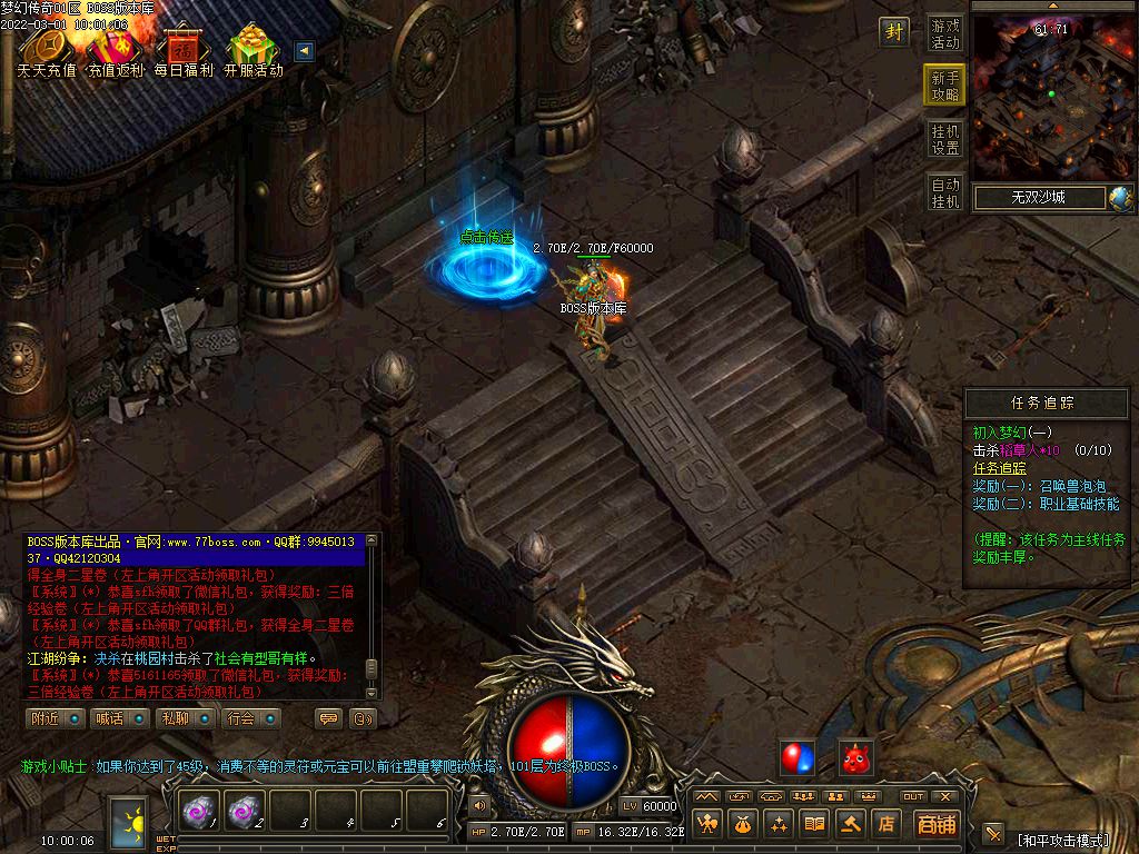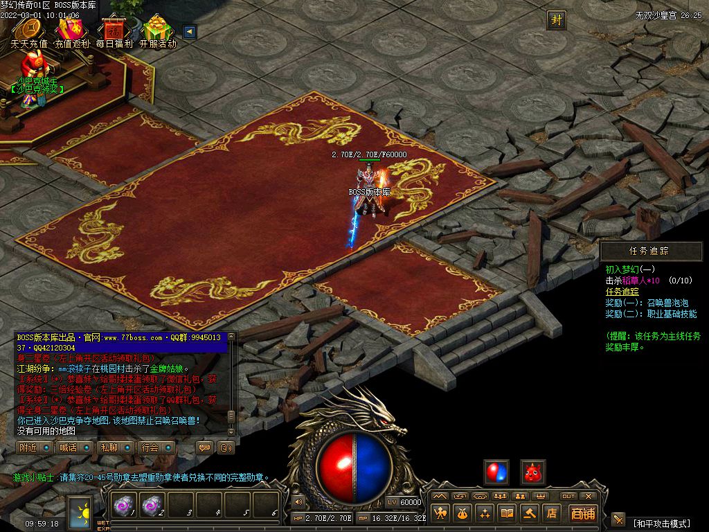 3.魔龙峡谷1-3层都可挂机,地图大,怪物分散,不易被怪物集火,注意2.3层会有BOSS魔龙教主,能力不知足者建议远离魔龙教主,注意此地图不可以使用随机。(魔龙教主掉落45级使用的各种装备)。