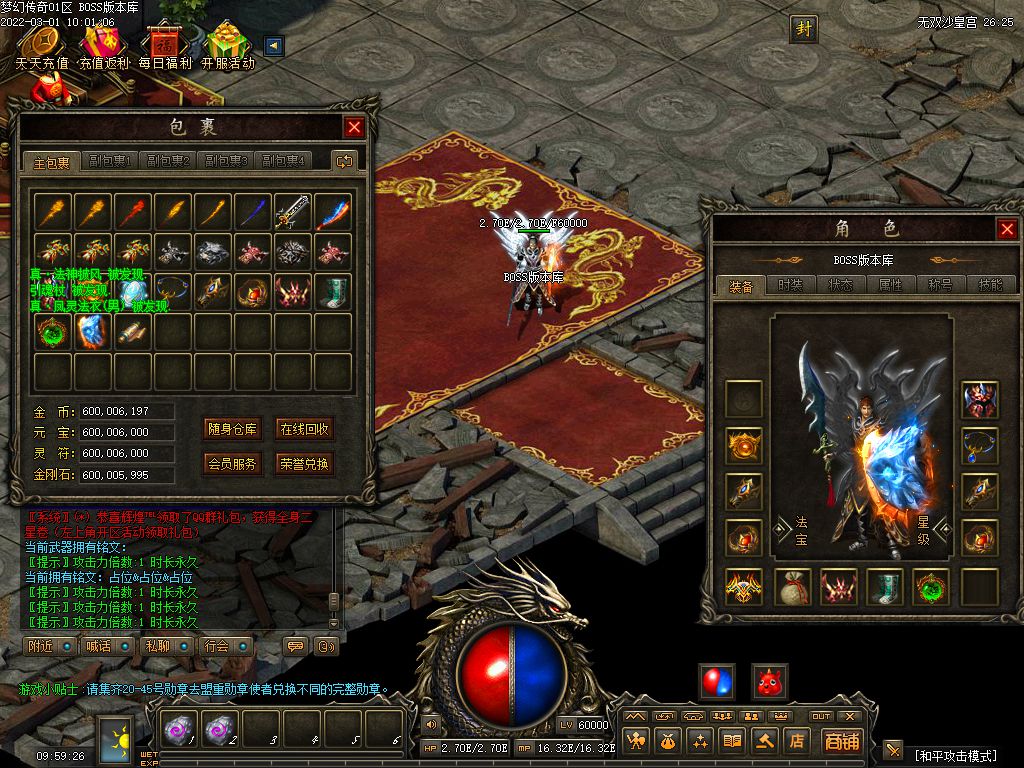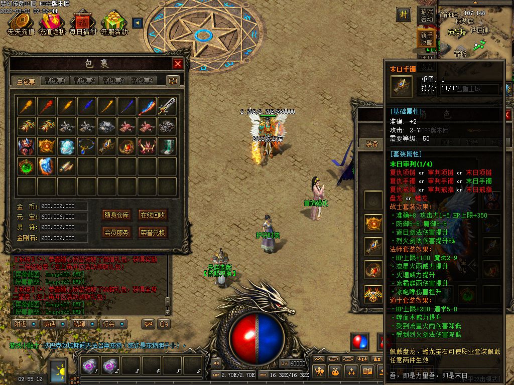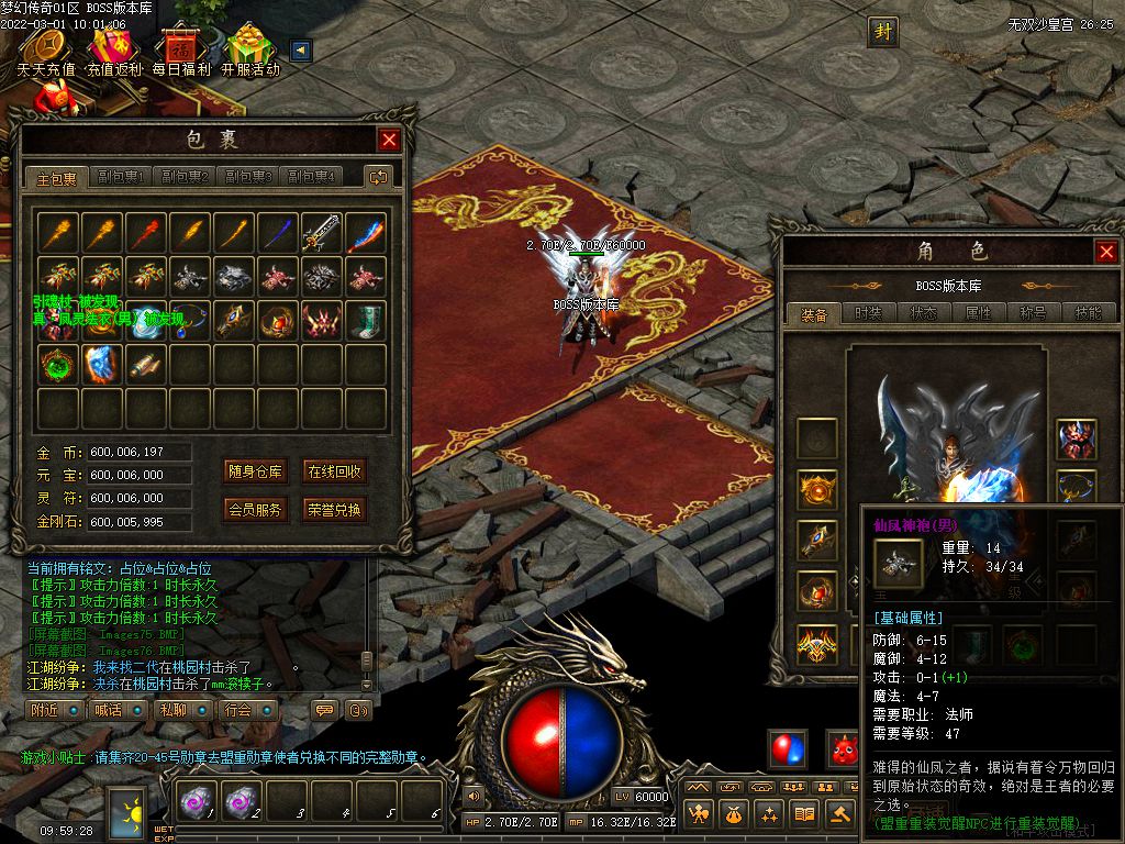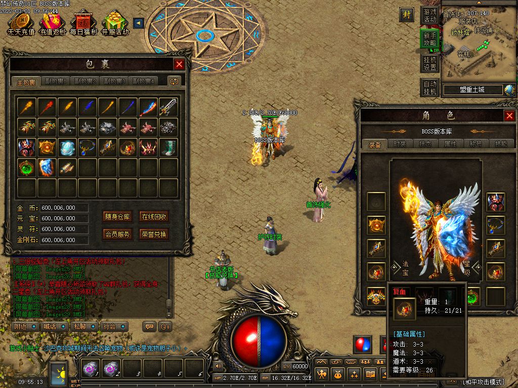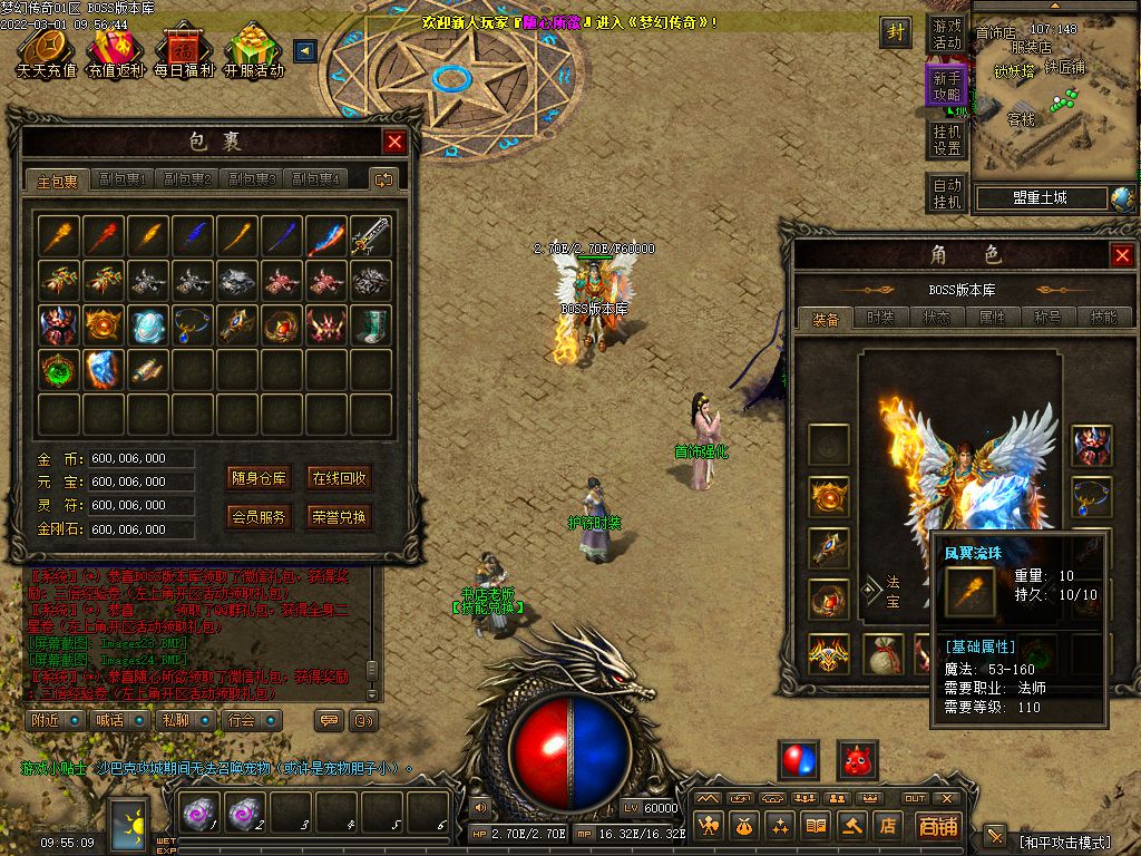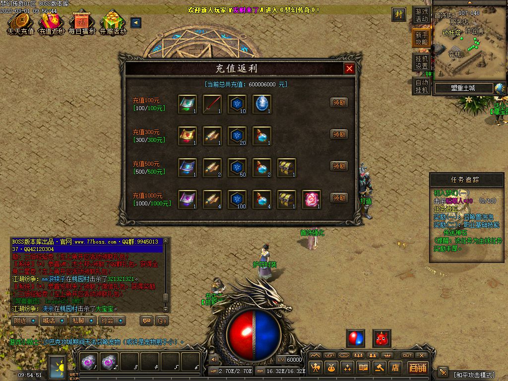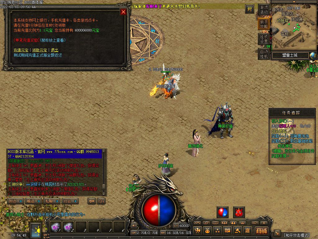 3.魔龙峡谷1-3层都可挂机,地图大,怪物分散,不易被怪物集火,注意2.3层会有BOSS魔龙教主,能力不知足者建议远离魔龙教主,注意此地图不可以使用随机。(魔龙教主掉落45级使用的各种装备)。