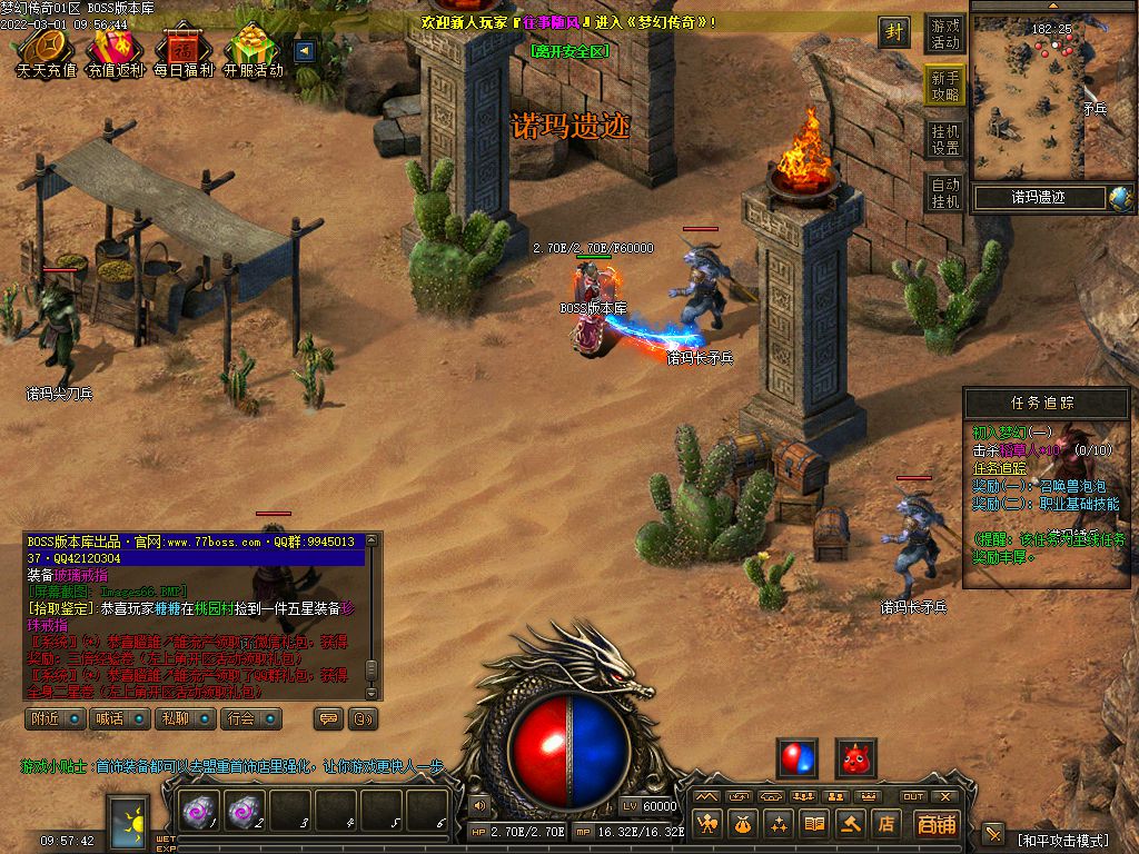 4.诺玛遗迹全图也可以挂机,怪物伤害血量一般,碰到精英以及BOSS请务必击杀,掉落各种装备材料。