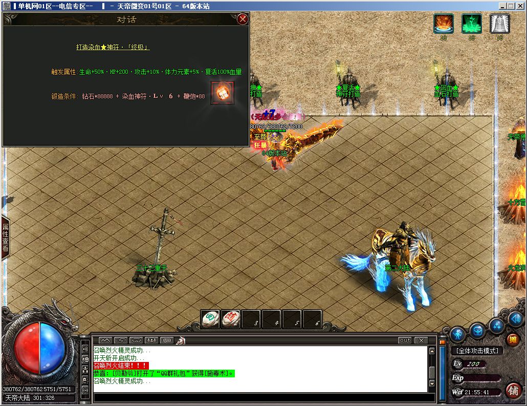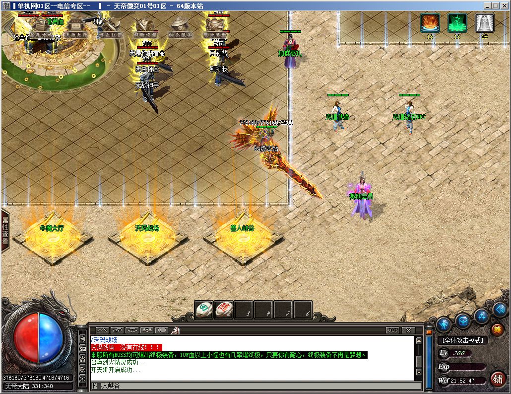 本服所有BOSS均可爆出终极装备,10W血以上小怪也有几率爆终极,只要你有耐心,终极装备不再是梦想。