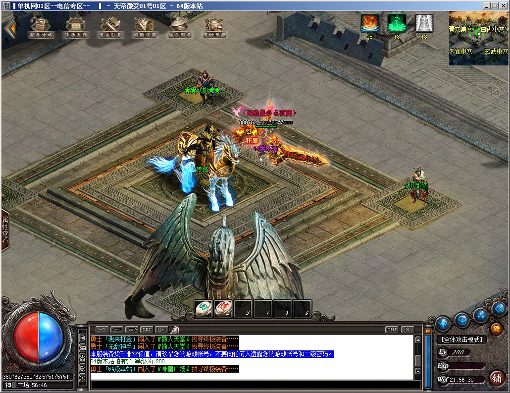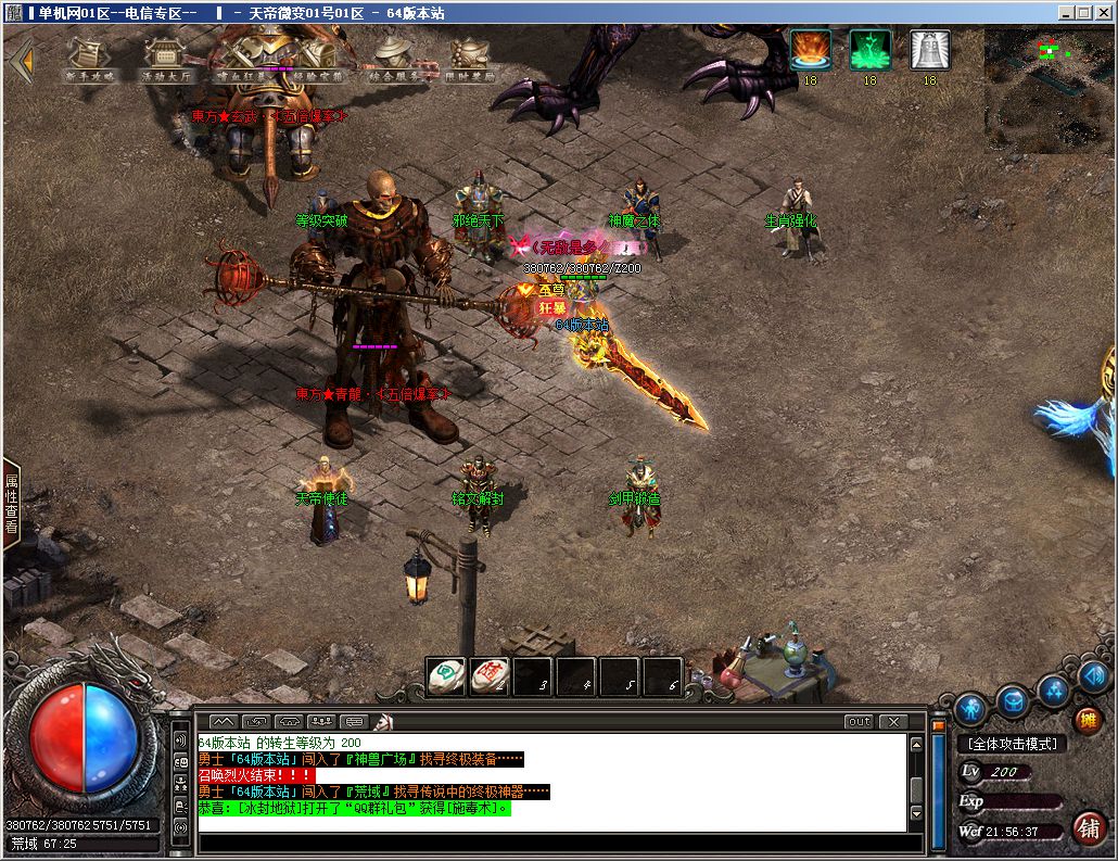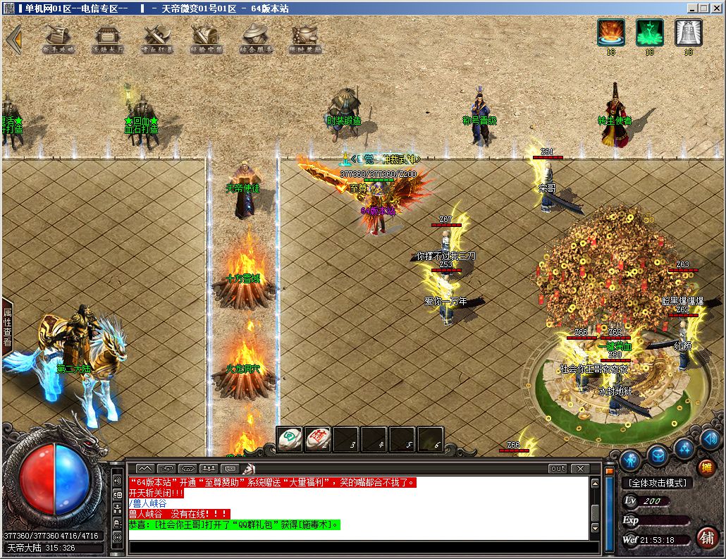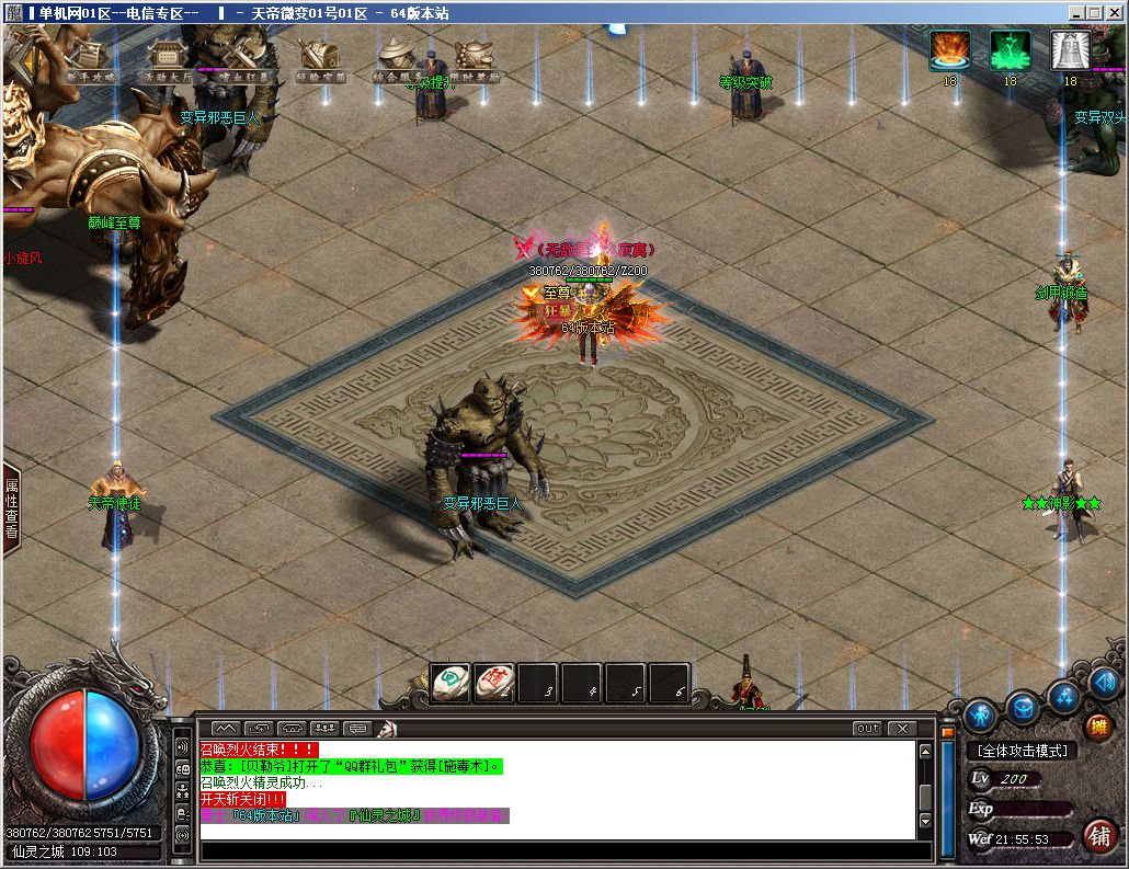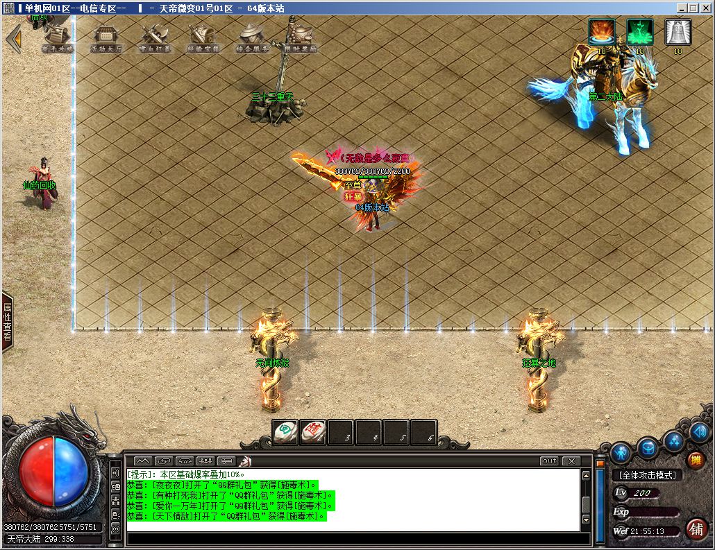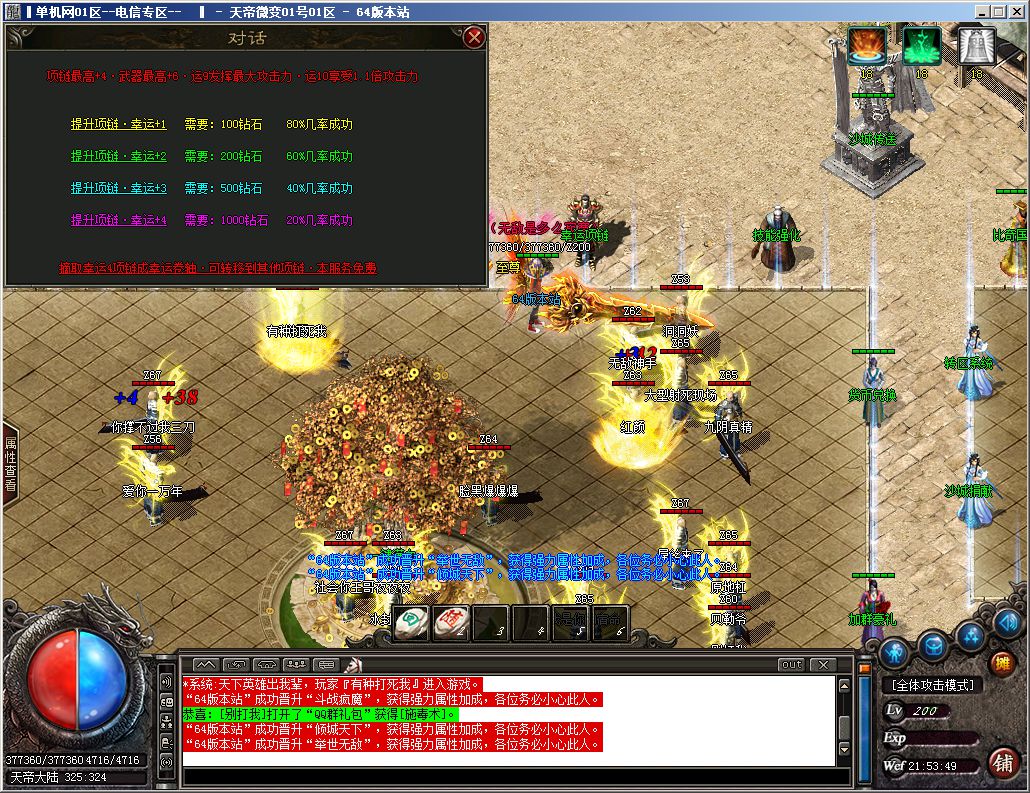 爆率公告:本服小怪都有几率掉落高级装备,BOSS爆率是小怪的10倍,血量越多的BOSS掉落高级装备的几率越高,祝大家人人终极套。