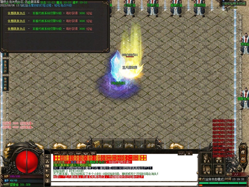 ※【游戏介绍】升级自己吃珠子,可以边打怪边回收,20倍回收经验。升级飞起