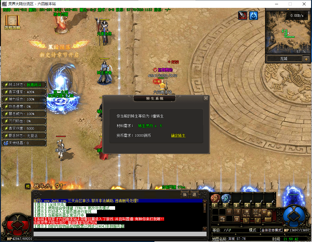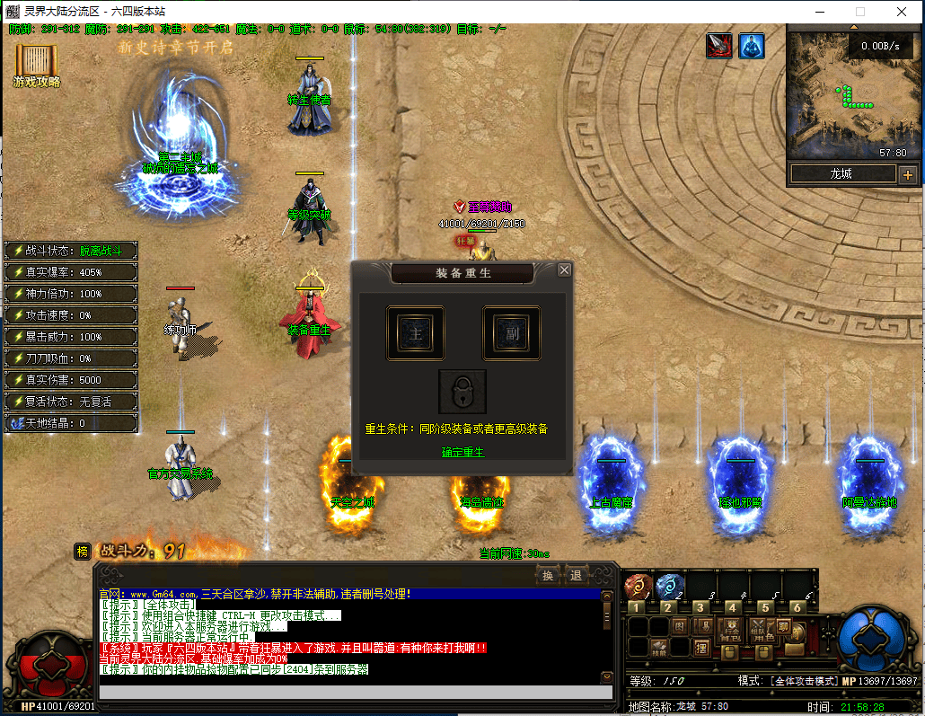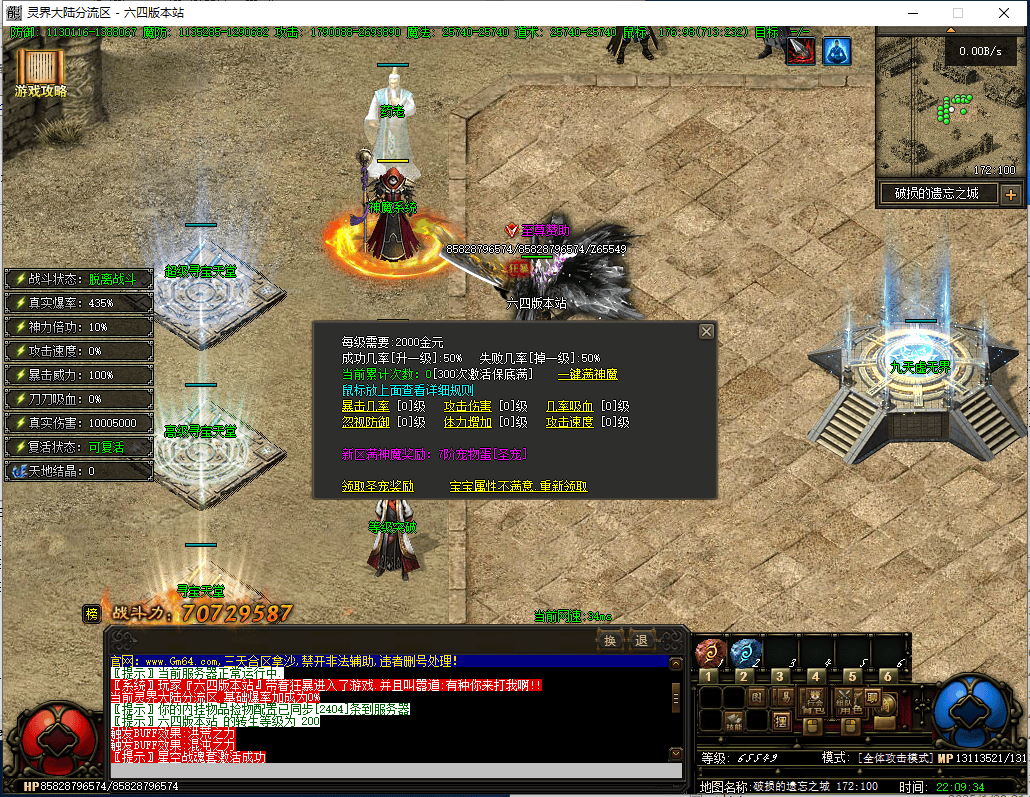 【前期简单攻略】:无论是老板还是白嫖,开区第一目标就是快速下二大陆,点满级神魔[会送一个7阶起步[圣宠]白嫖号几小时也能满!然后想办法进后期地图就对了.][升级.转生.提升战斗力]