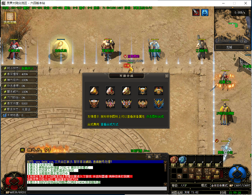 【前期简单攻略】:1059升级1060在二大陆剑甲合成处,合成高级剑甲.游戏后期也是如此,提升剑甲就会提升等级,气运值获取方式=三大陆装备重生,仙晶石获取方式=五大路怪物掉落