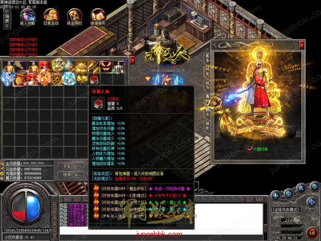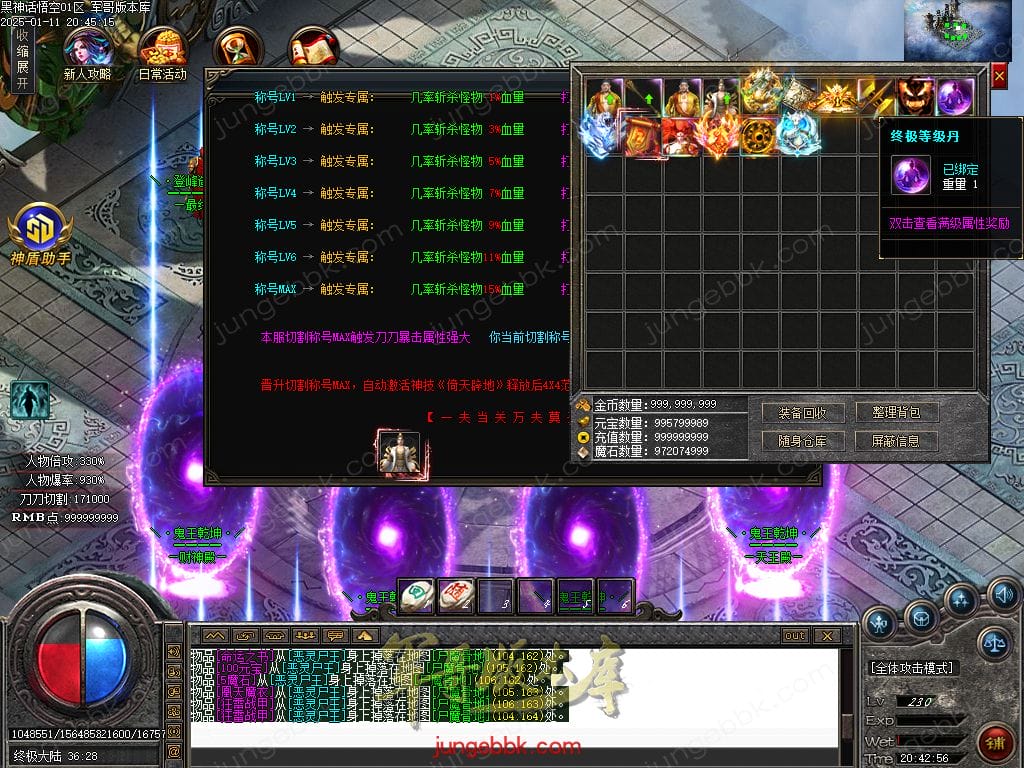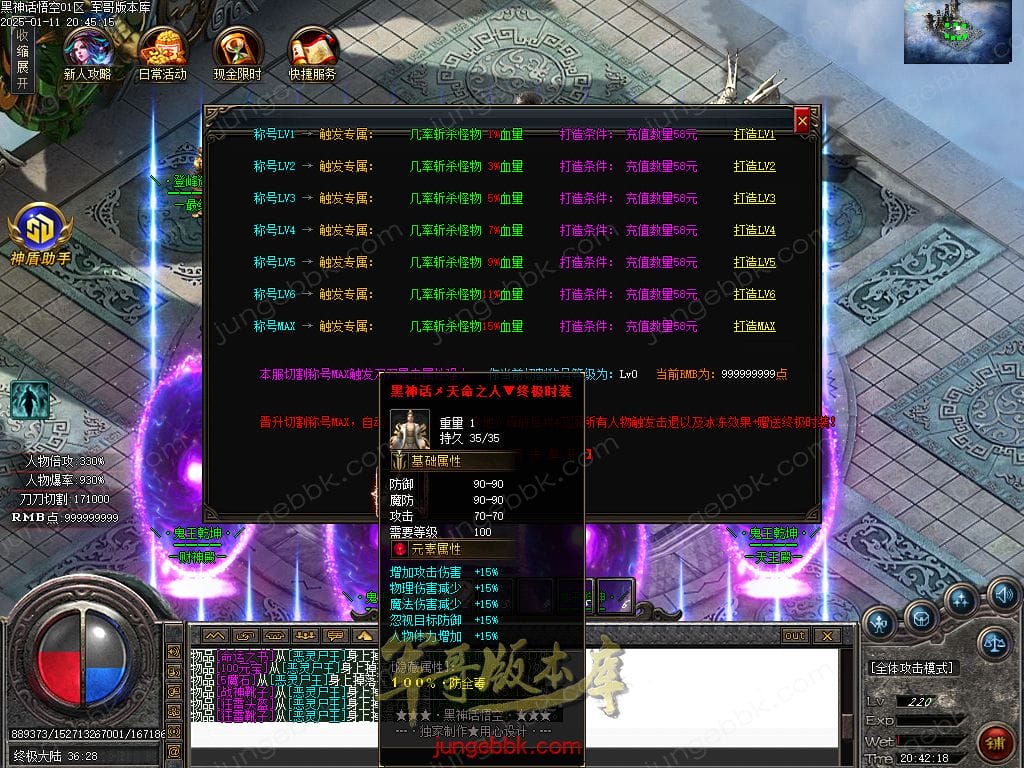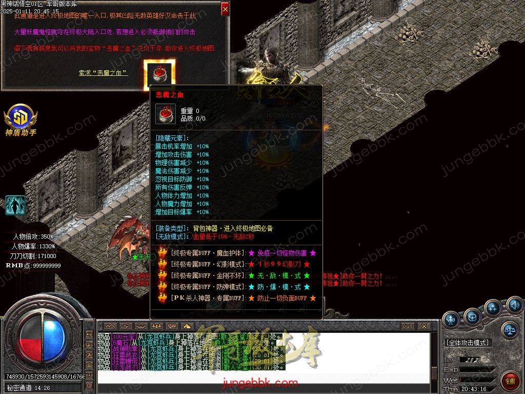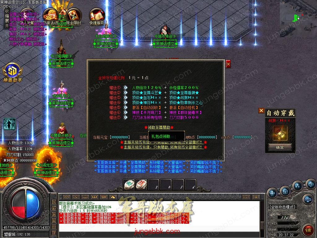 本服所有装备货币全爆。只要你有时间,终极不是梦想!!