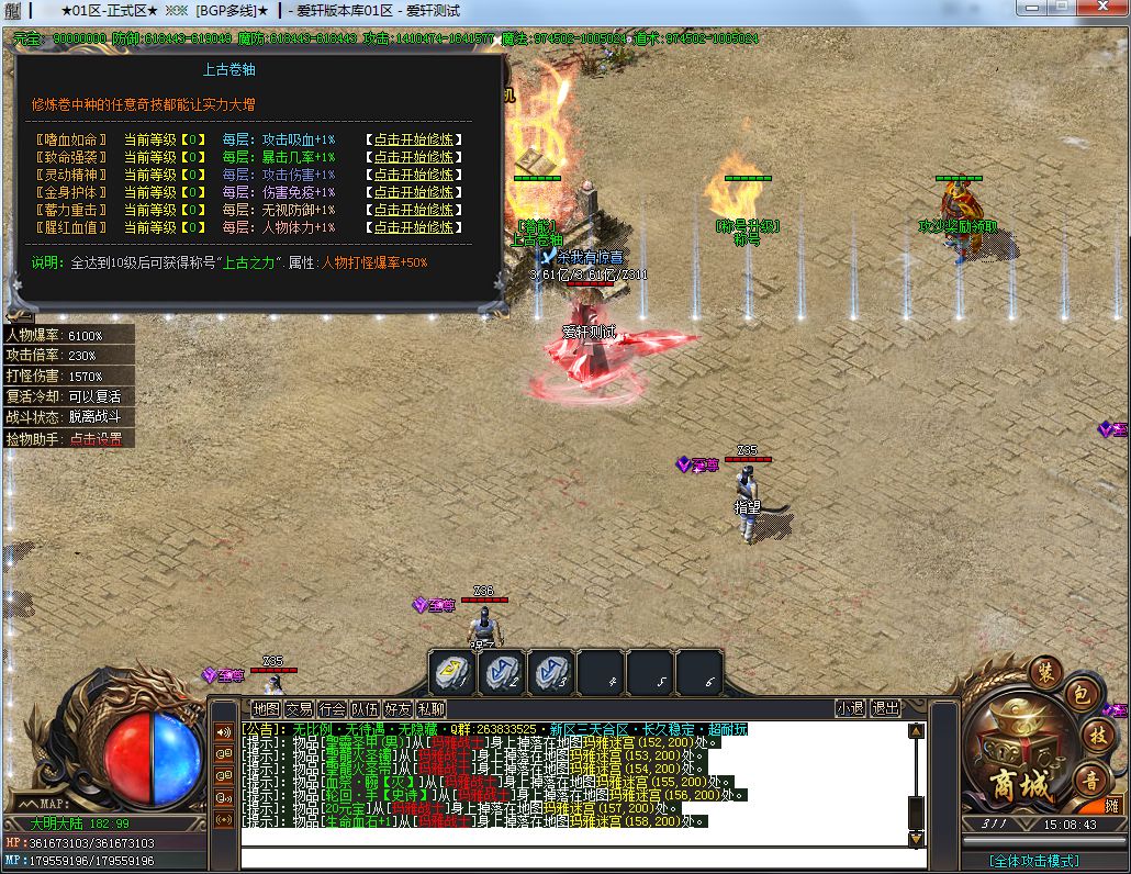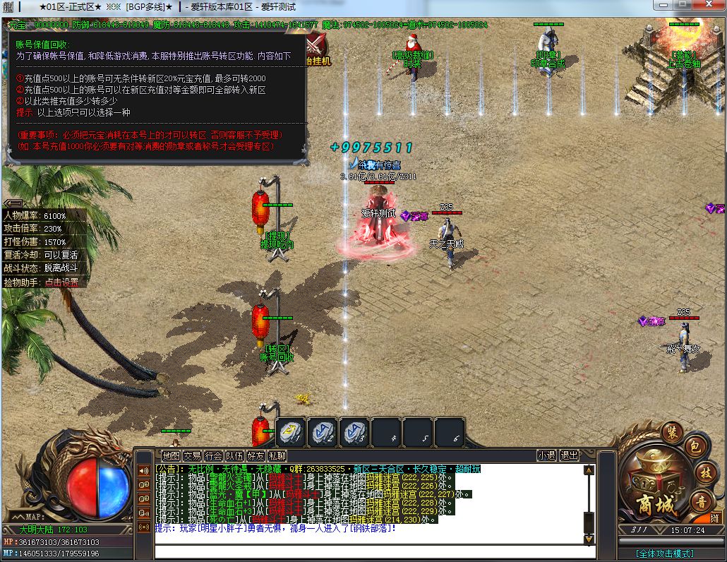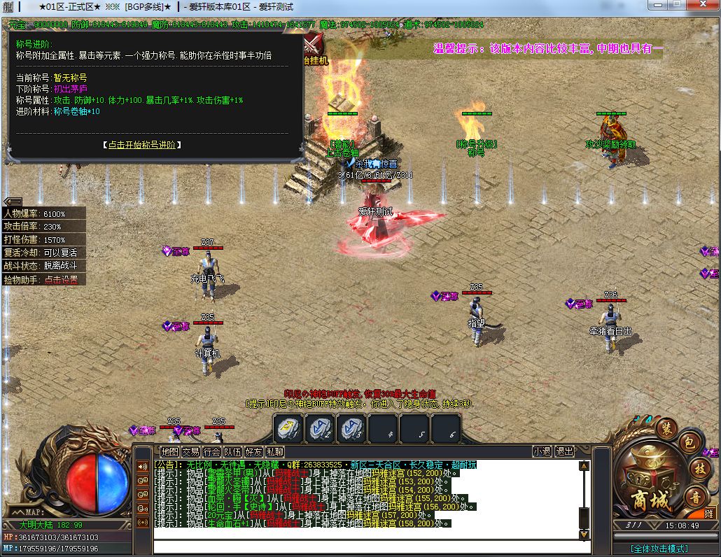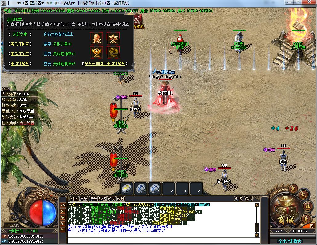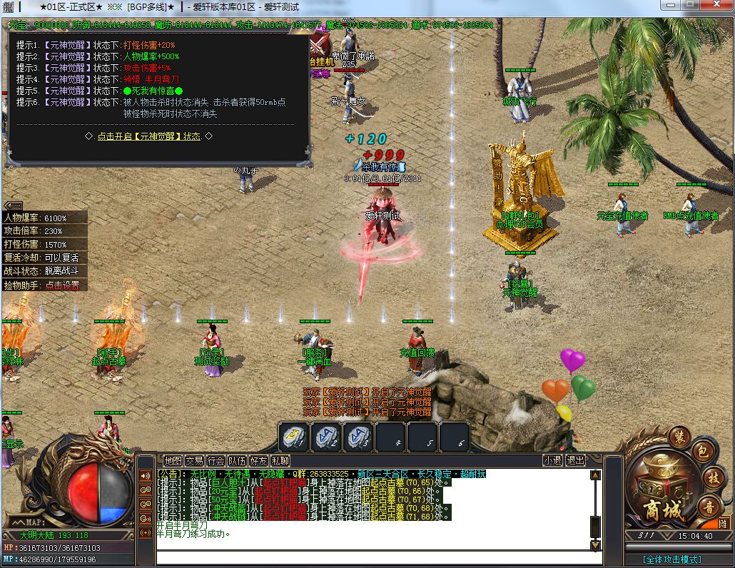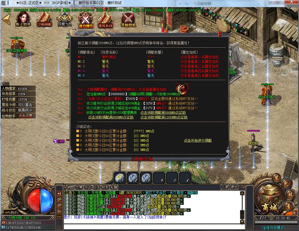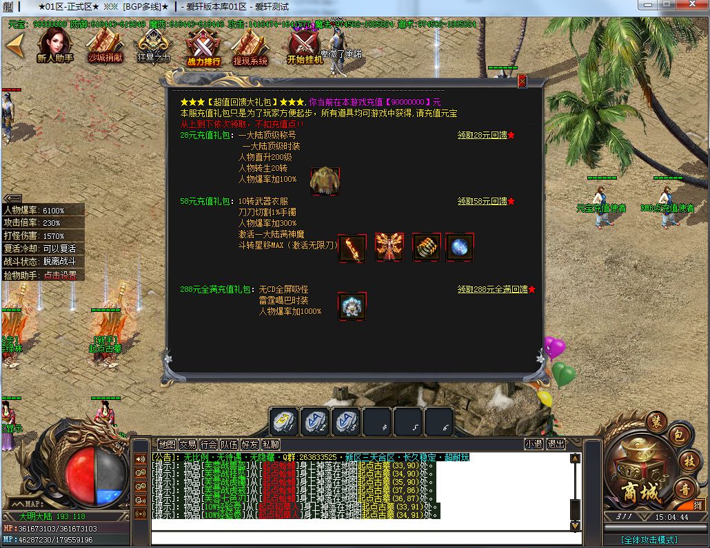 土豪消费:288礼包+19元RMB(聚宝盆)+40元RMB(沙捐+狂暴)+88元RMB(二大陆称号,刀刀切2%)=435元