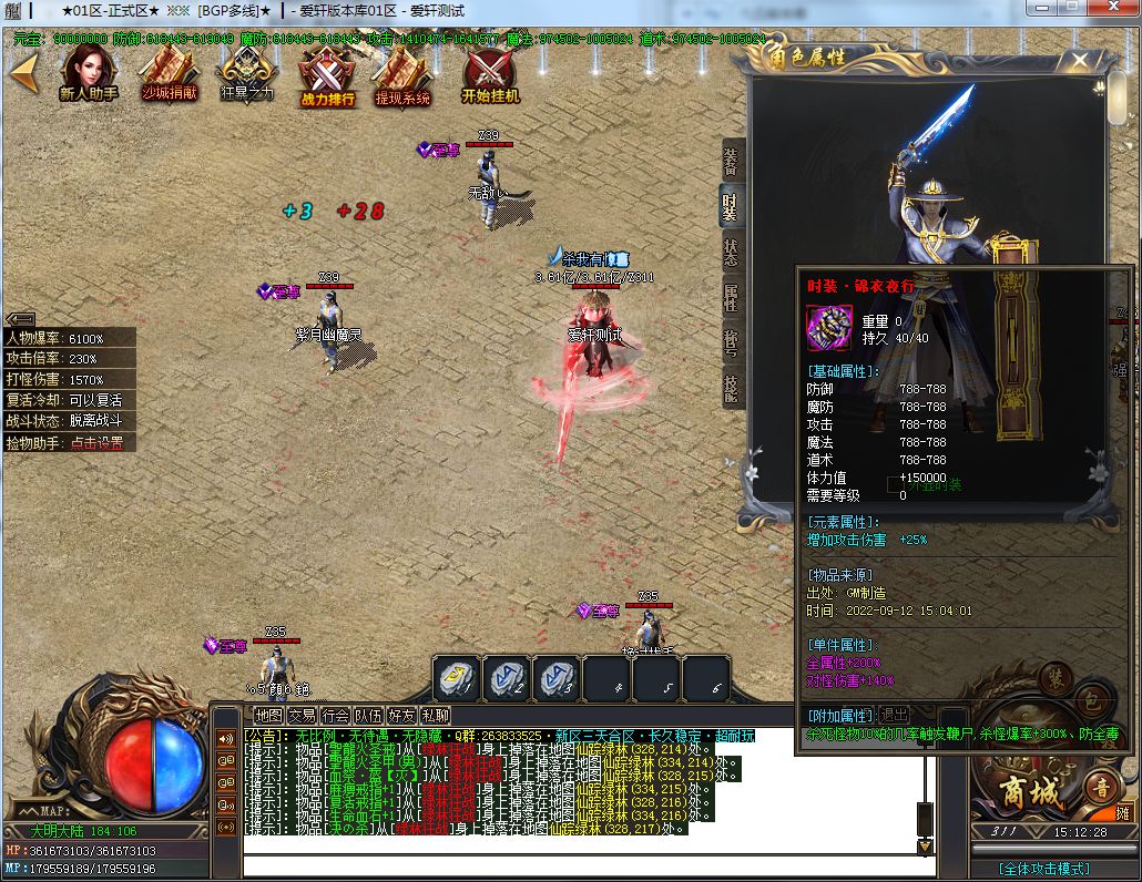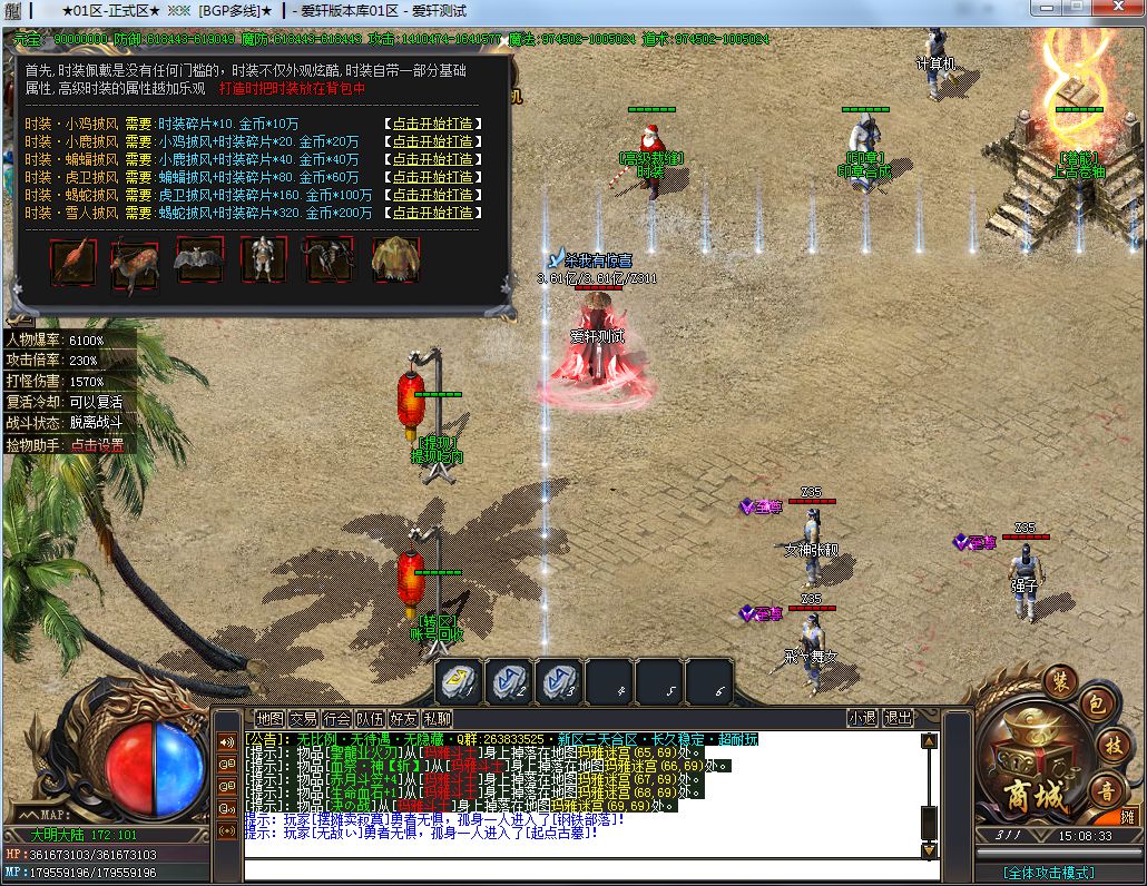 顶级消费:288礼包+19元RMB(聚宝盆)+40元RMB(沙捐+狂暴)+88元RMB(二大陆称号,刀刀切2%)+1200元RMB(顶级时装)=1635元