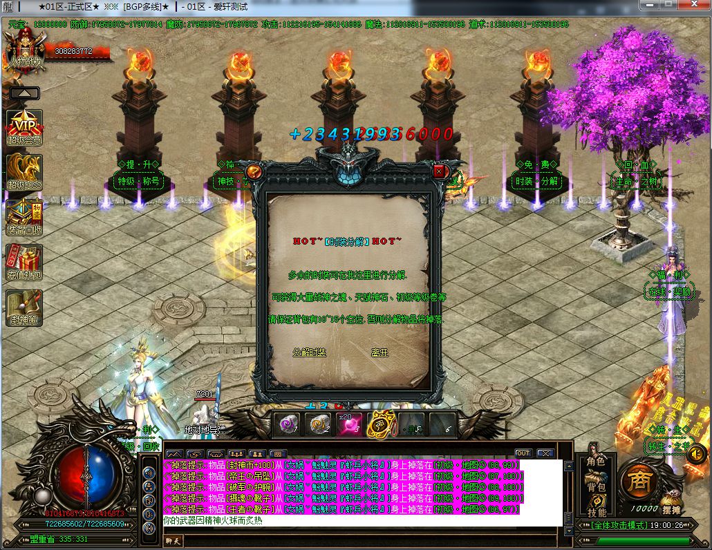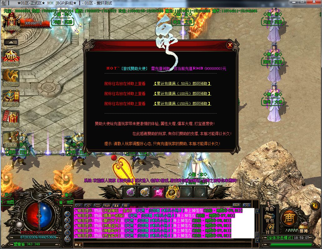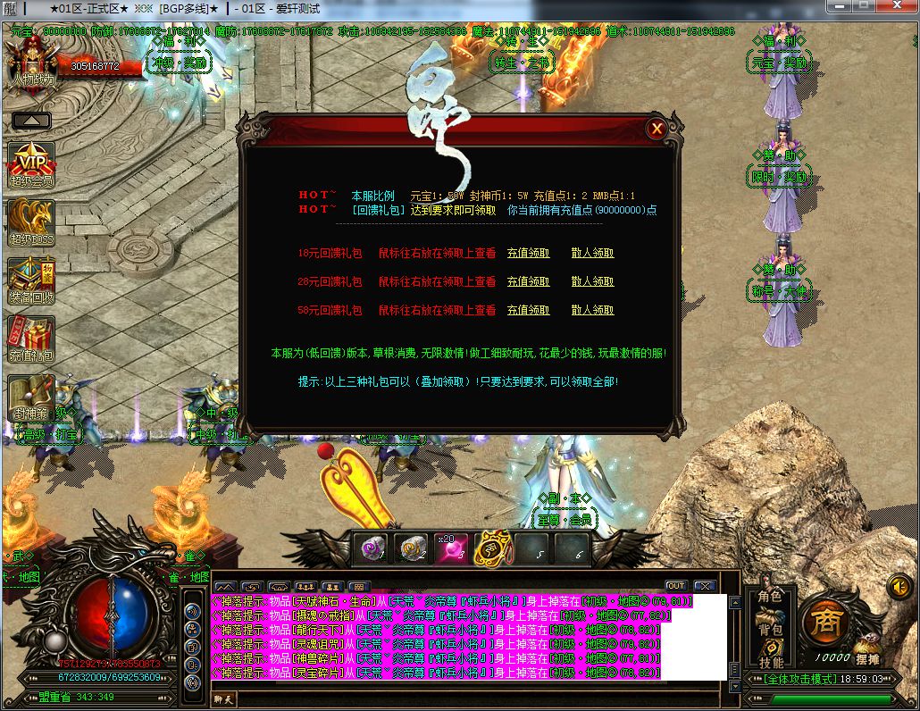【游戏介绍】:本服充值比例1元=500000元宝+50000封神币+2充值点+1RMB,无任何比例,完全公平公正原则,所有人同一起点