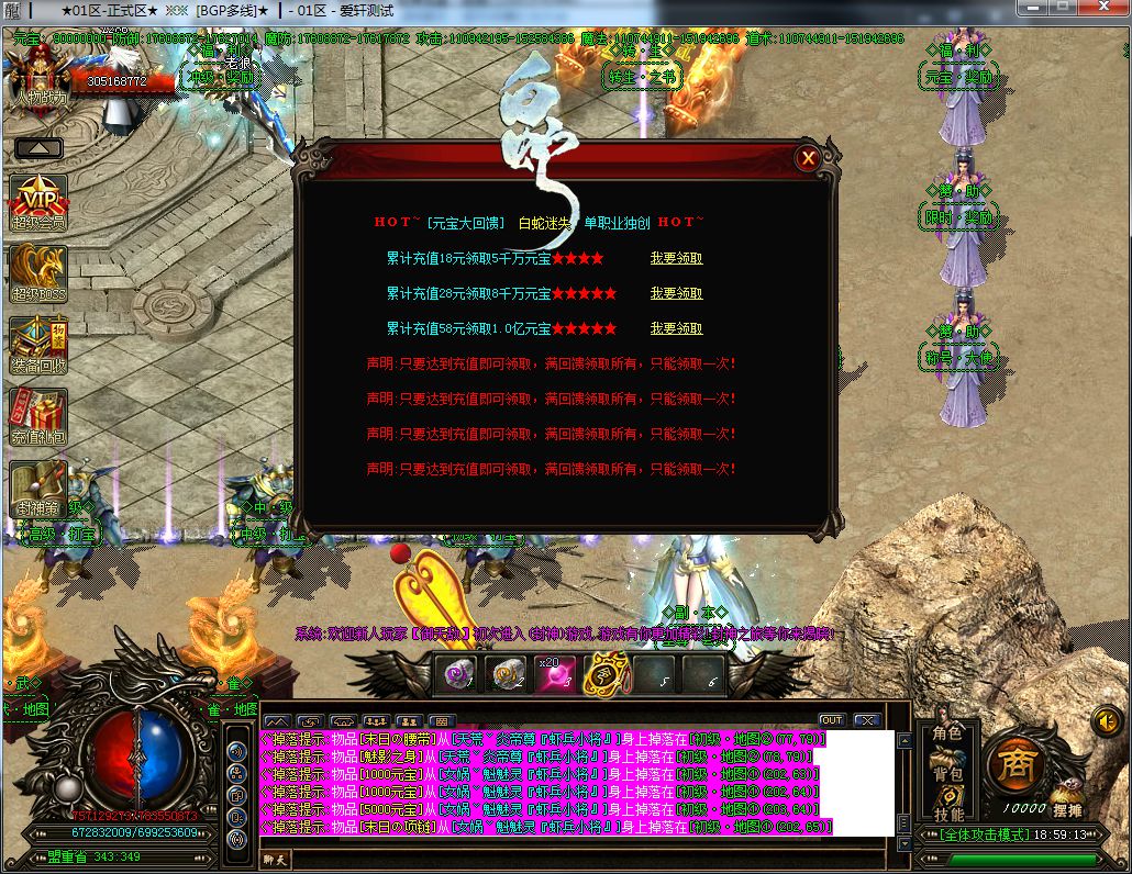 白蛇第二季倍攻超变迷失单职业传奇版本-假人系统-限时奖励-通神宝阁-天赋系统
