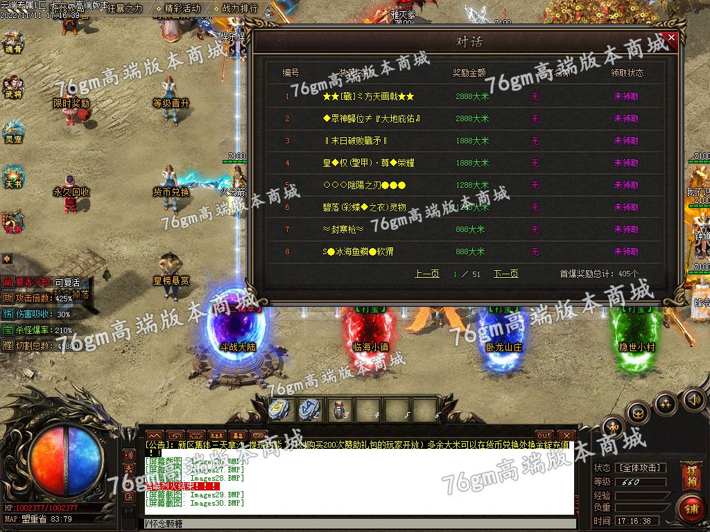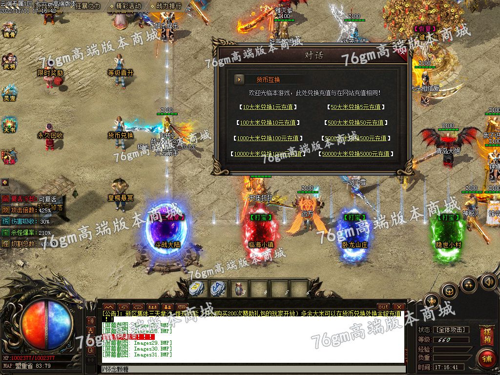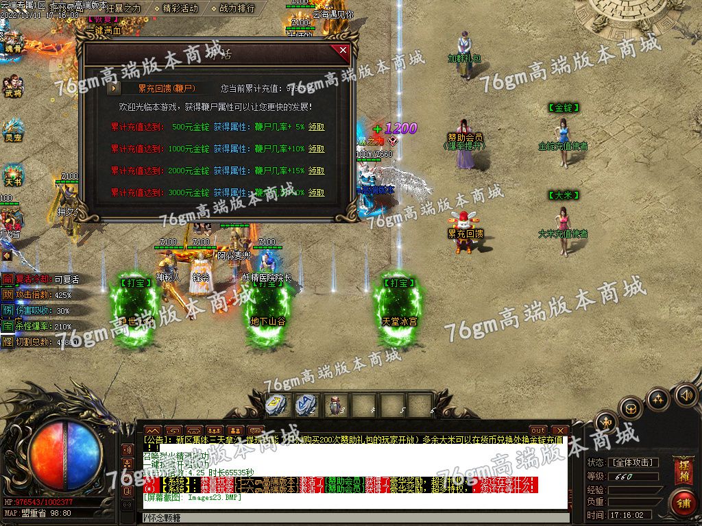 3.新区三天合区:闯关卡 参考价格200个=1米,个人商铺出售,价格低于参考价合区商人扫货