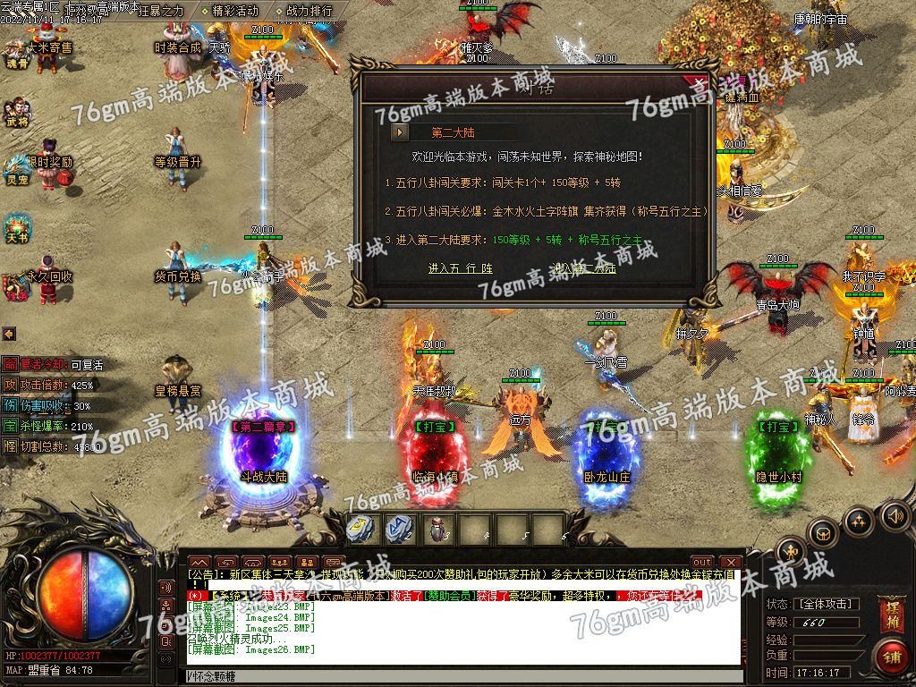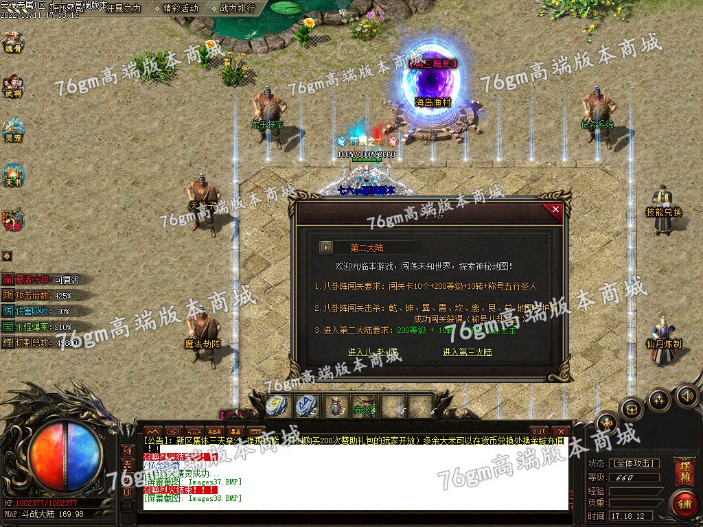 2.进行五行阵闯关,获得称号,可近二大陆(此功能在第二大陆NPC内)