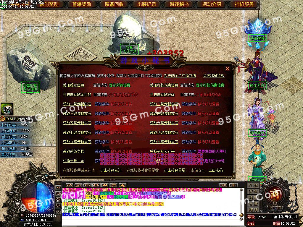 商城:商城可背包专署,打孔材料,爆率卷,打怪,杀人必备!