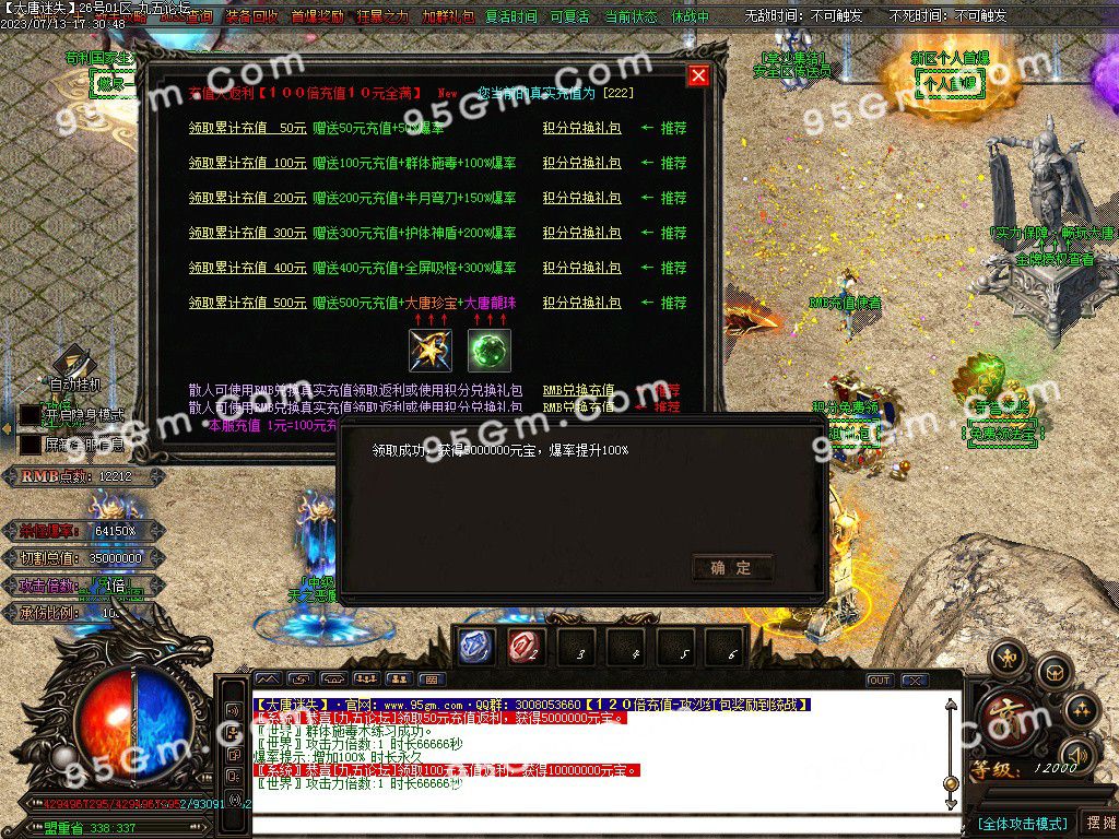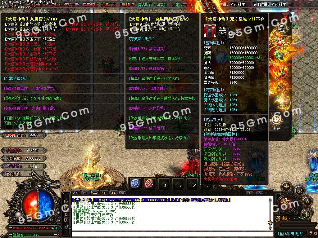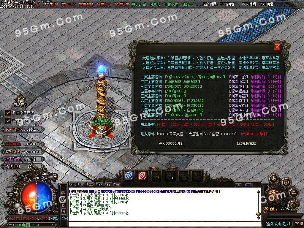 法宝出处:所有200倍以上的怪都有几率爆出!!爆率非常高,新区打个十几套轻轻松松。