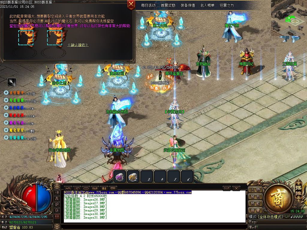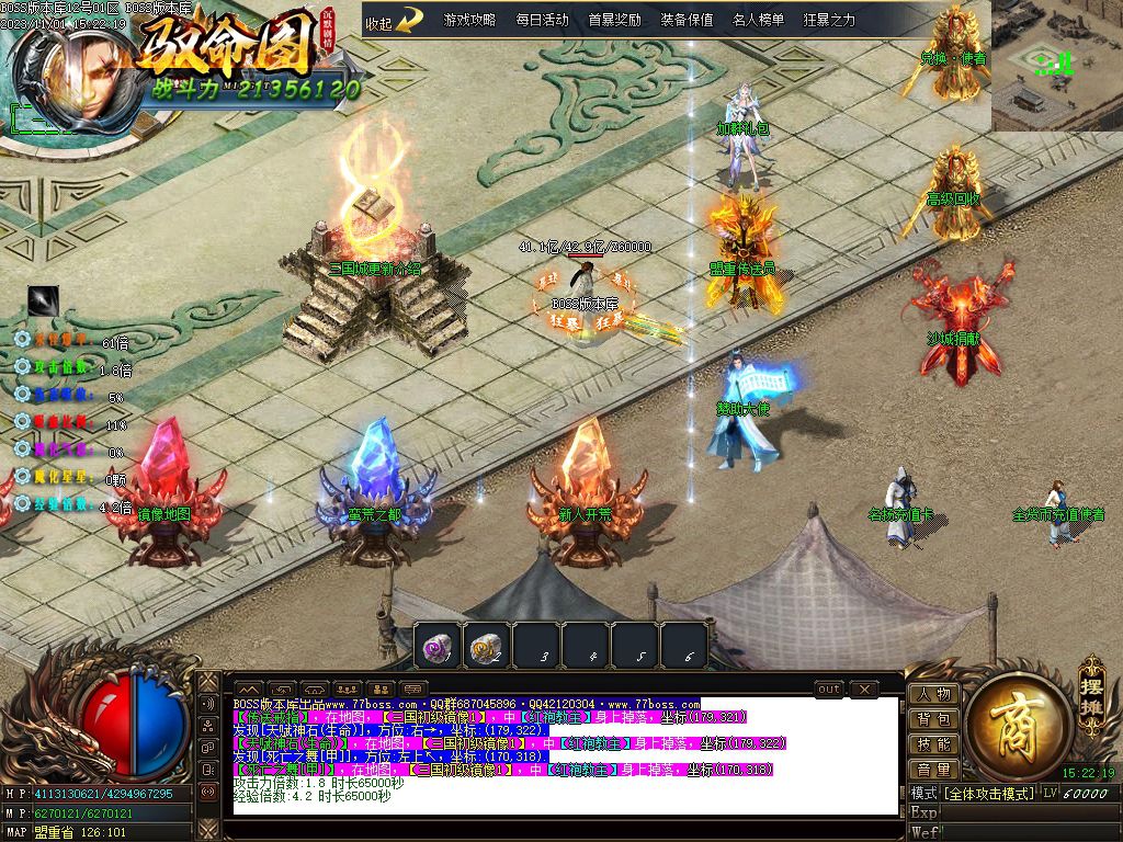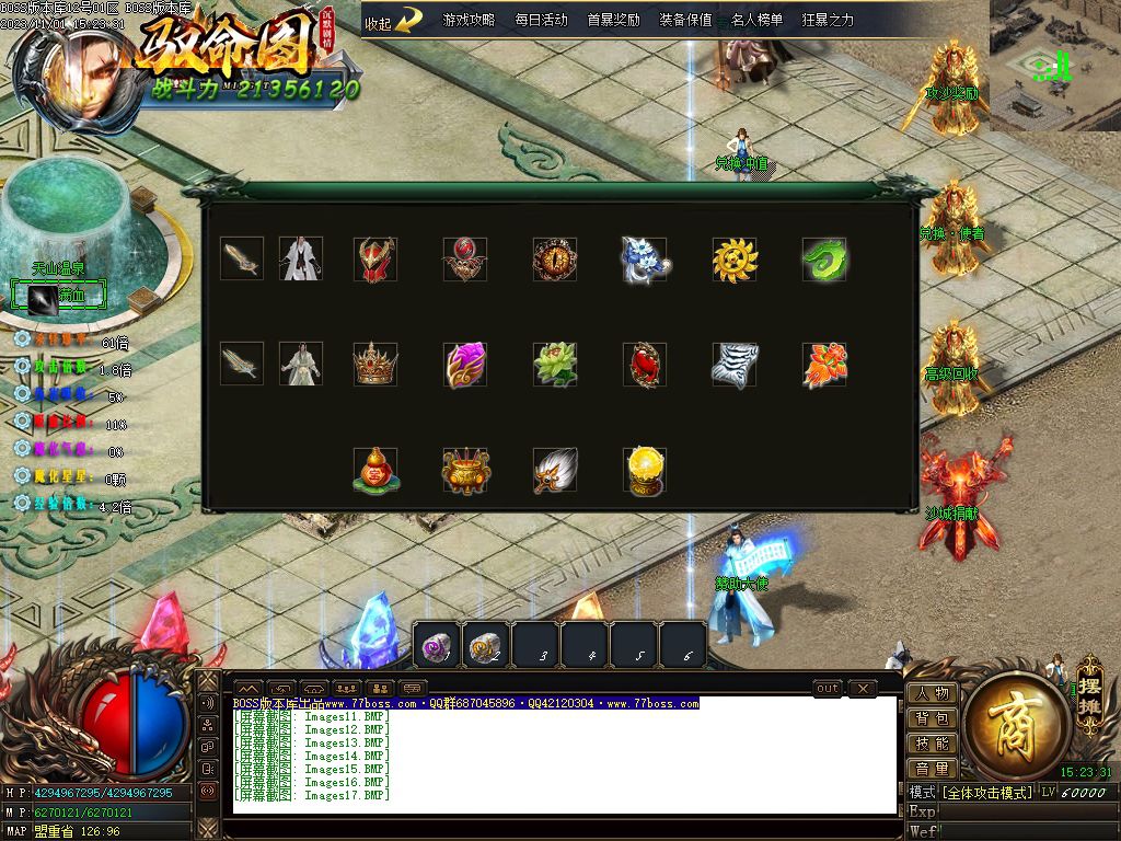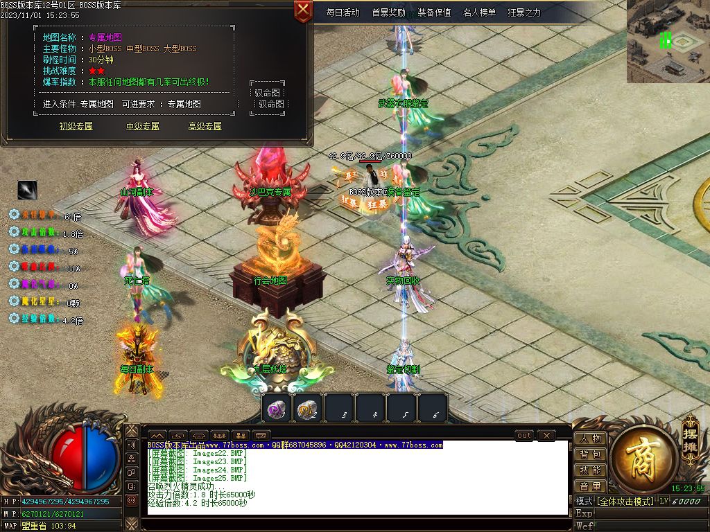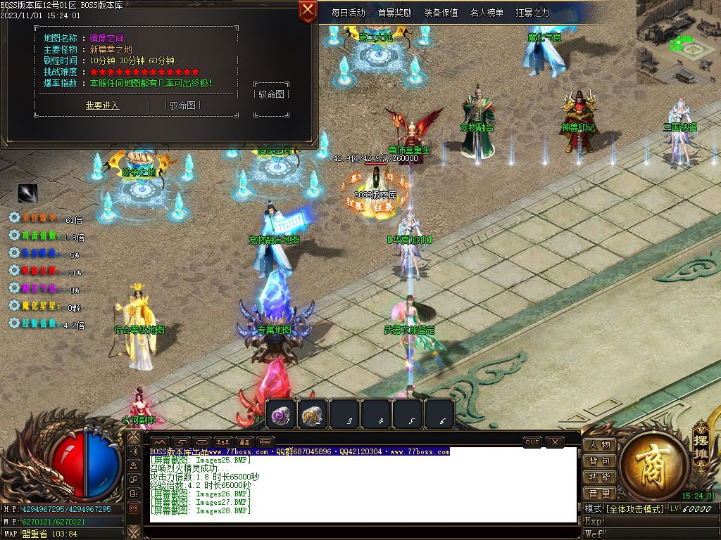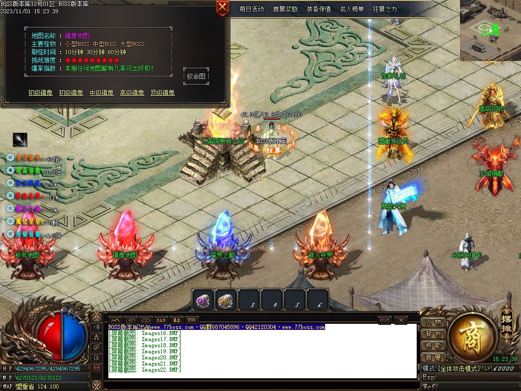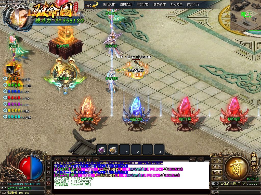 4.本服地图超多,地图等级越高,爆率越高,地图里面刷新全BOSS模式.1000W血BOSS爆所有装备