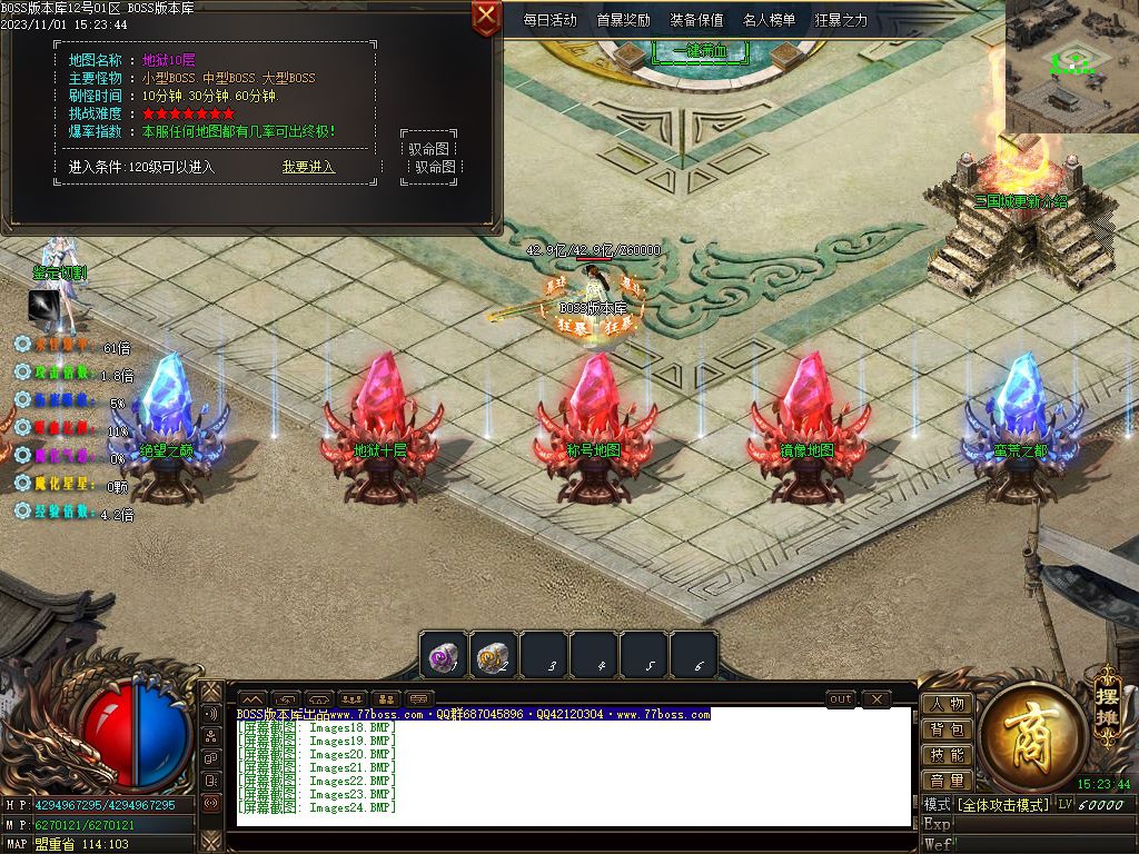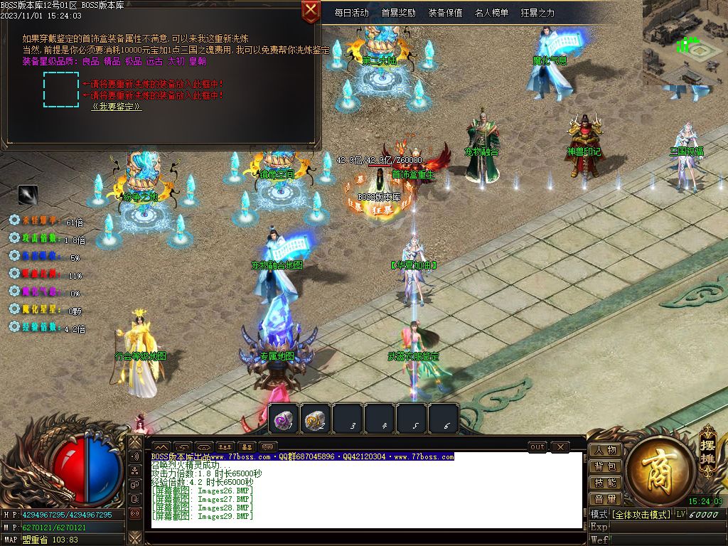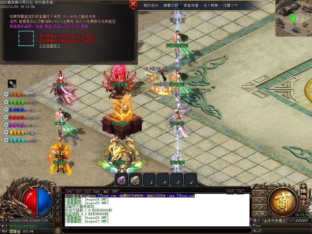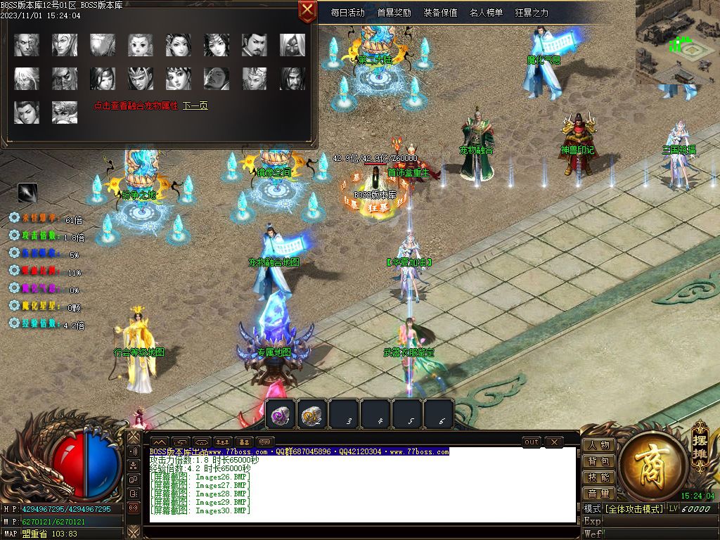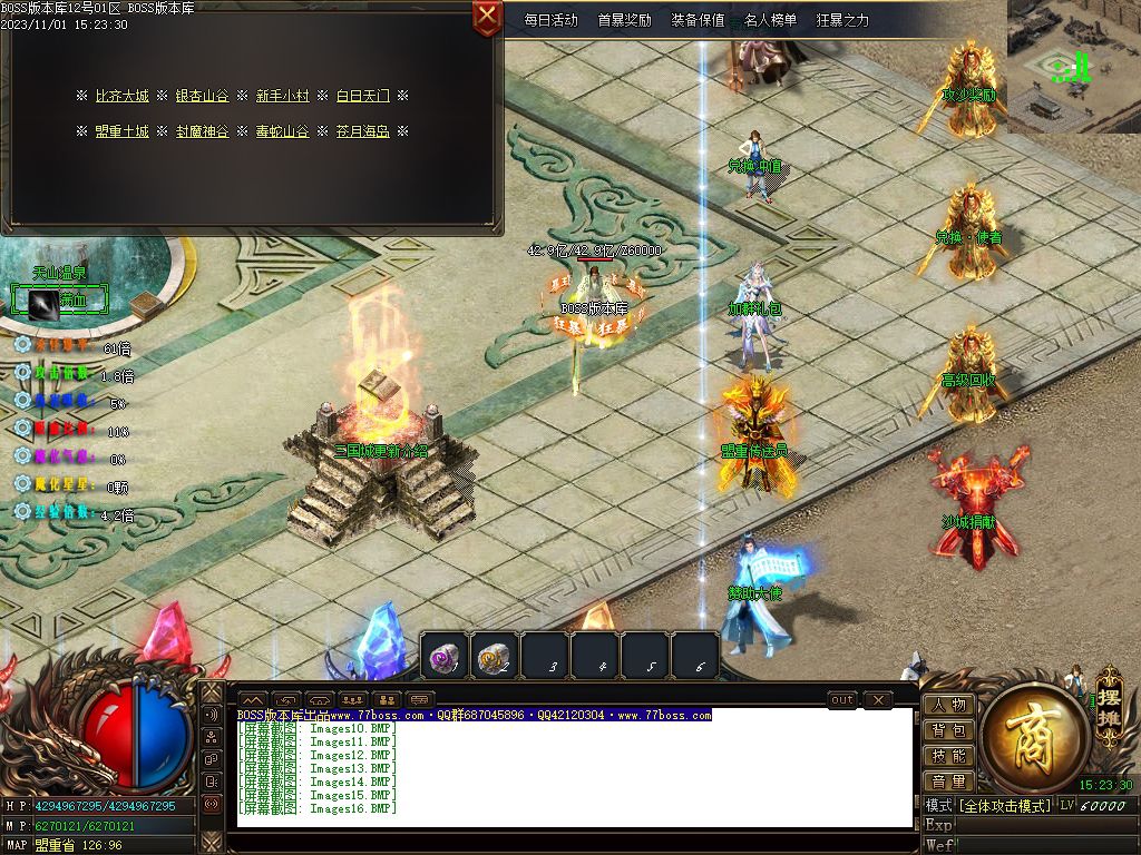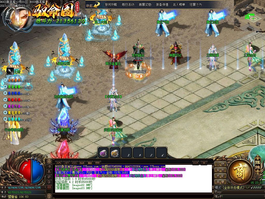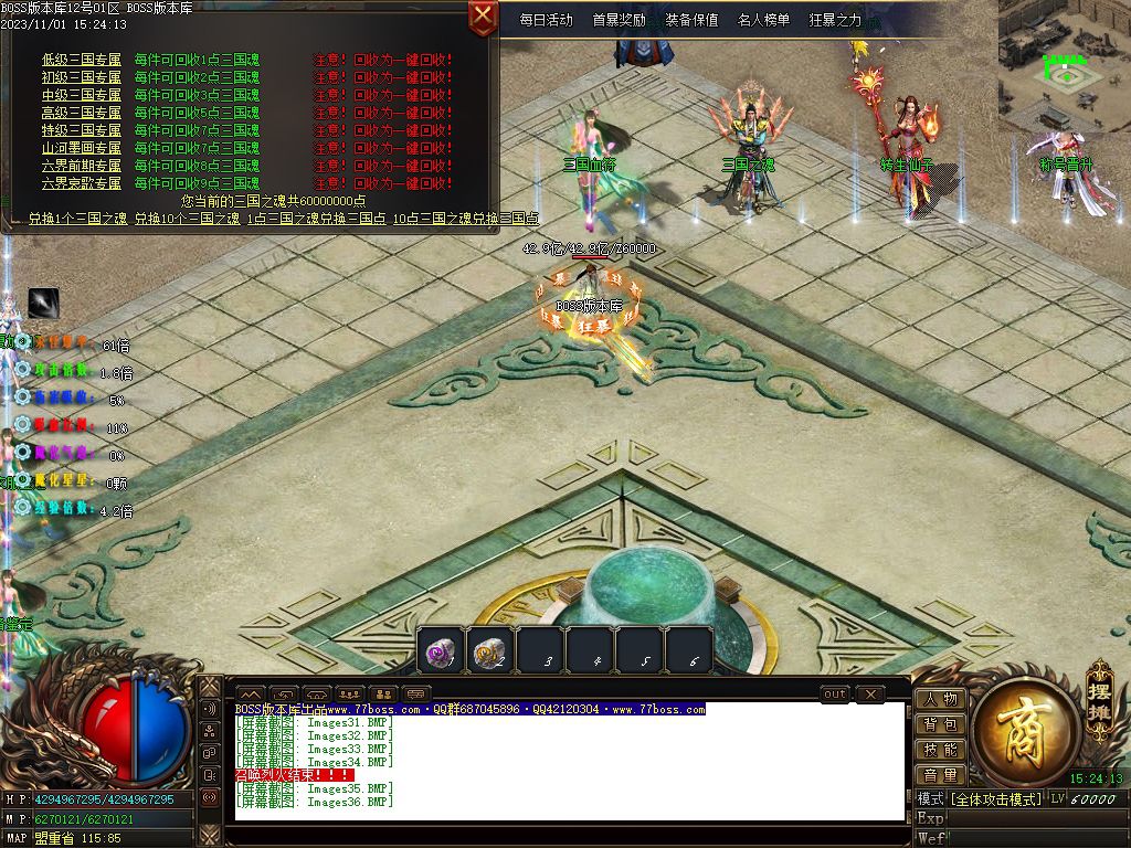 4.本服地图超多,地图等级越高,爆率越高,地图里面刷新全BOSS模式.1000W血BOSS爆所有装备