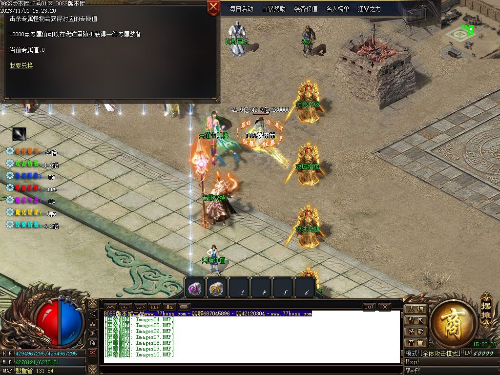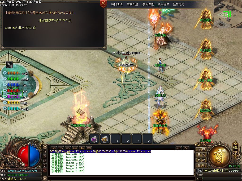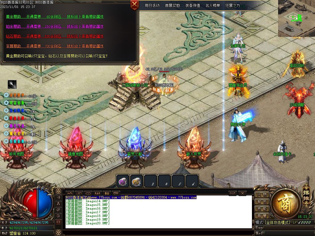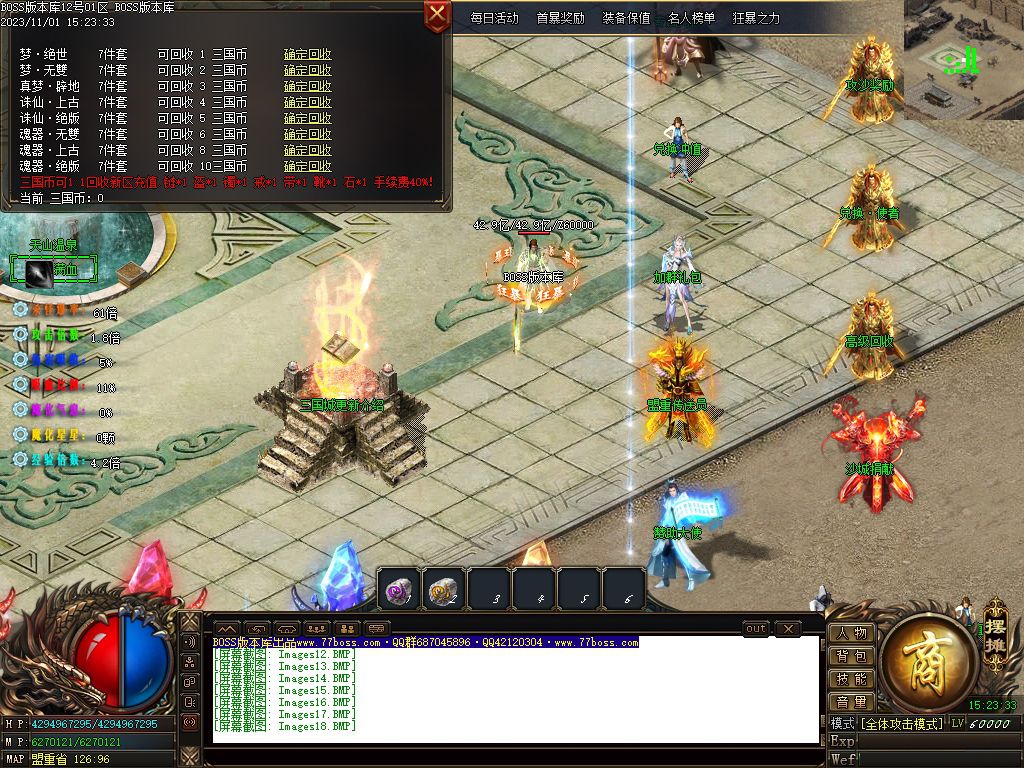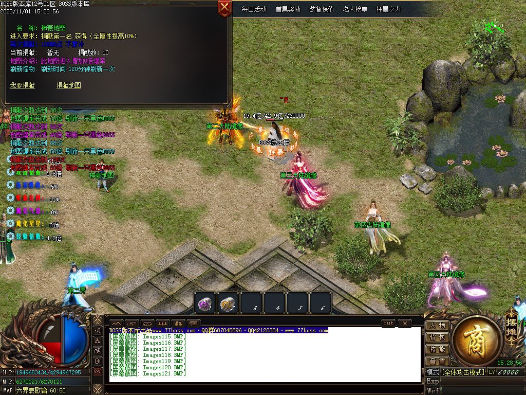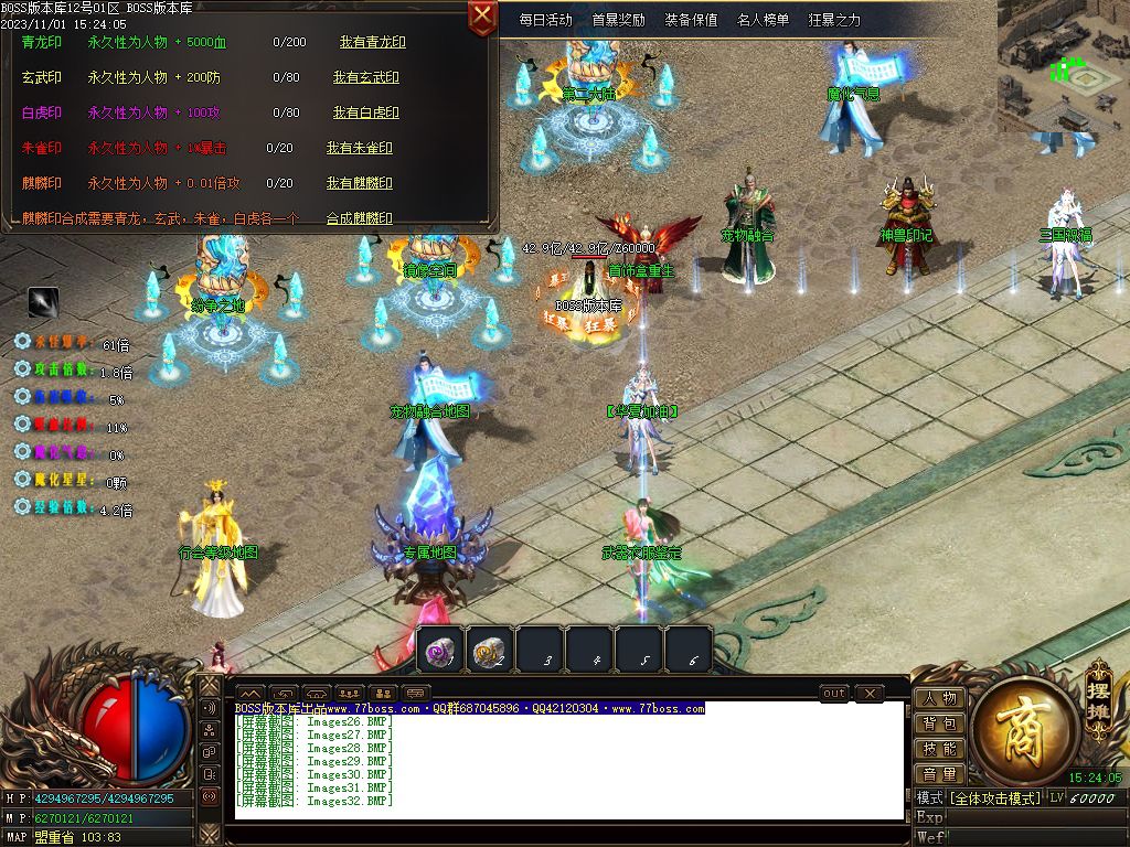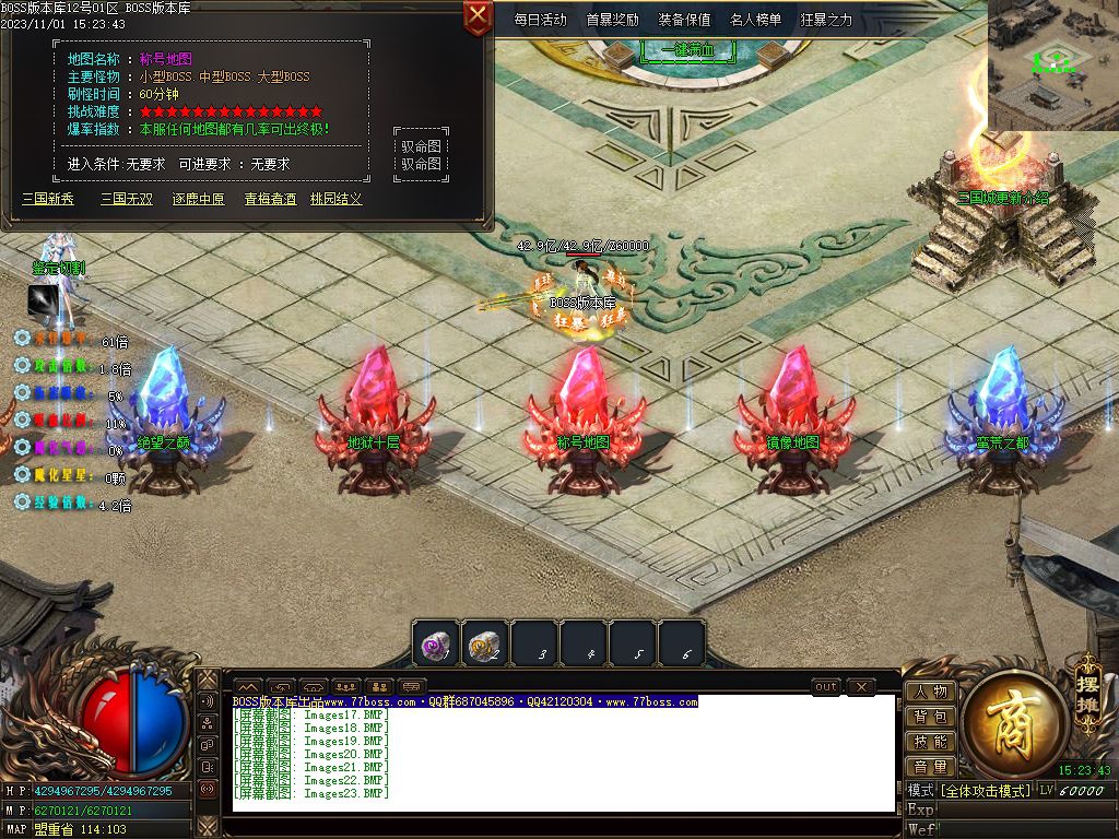 4.本服地图超多,地图等级越高,爆率越高,地图里面刷新全BOSS模式.1000W血BOSS爆所有装备