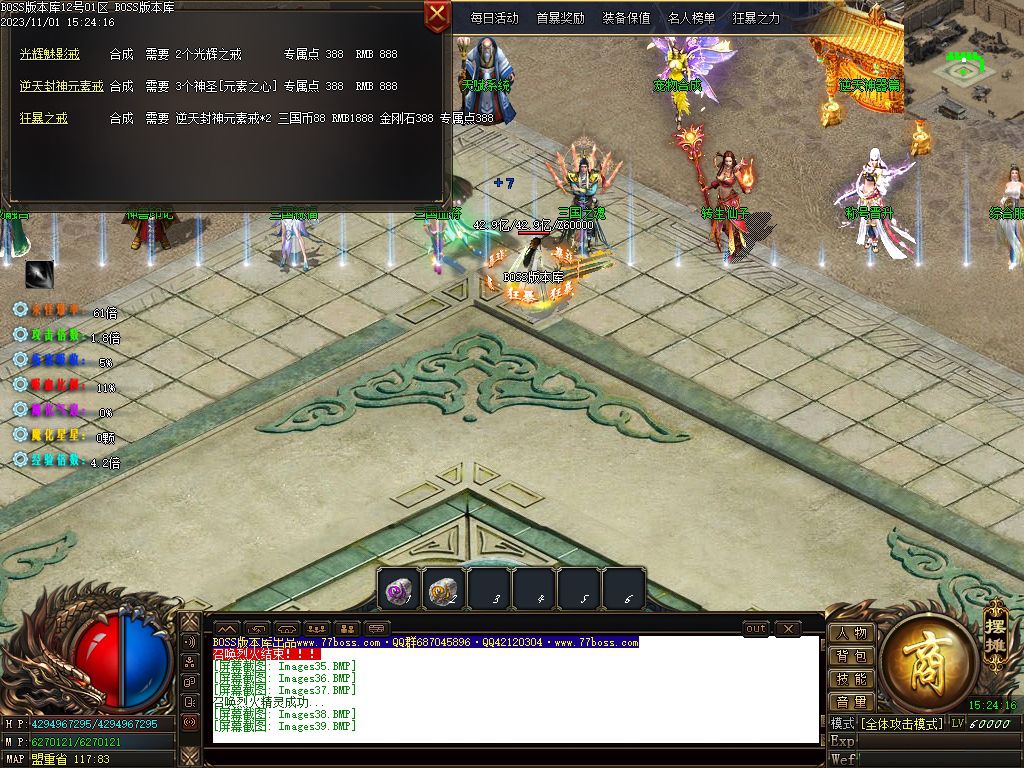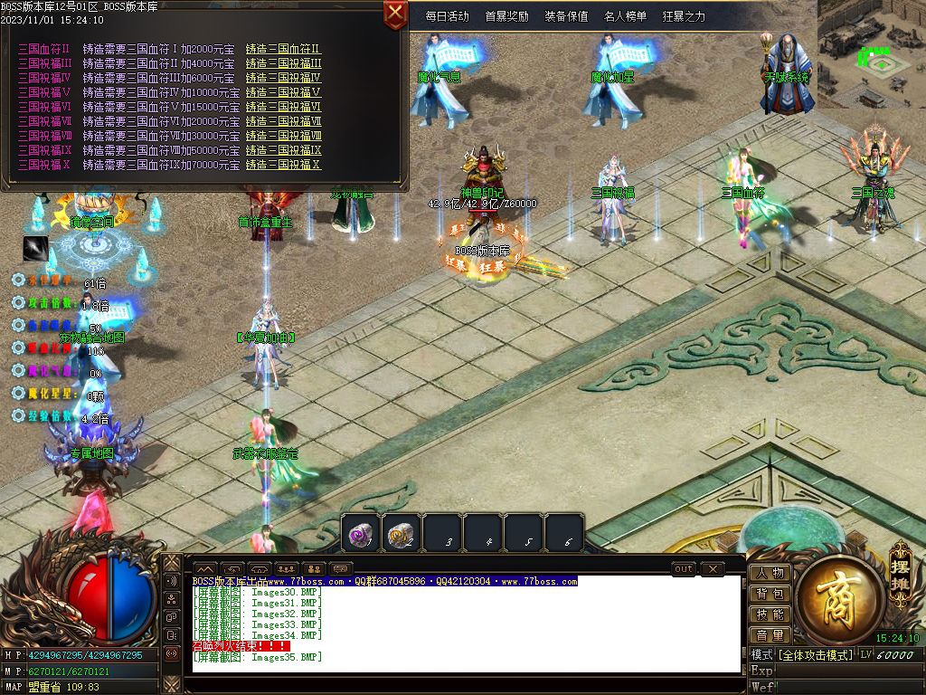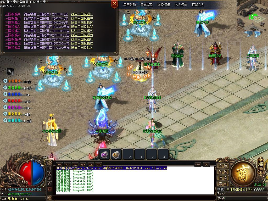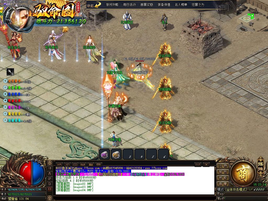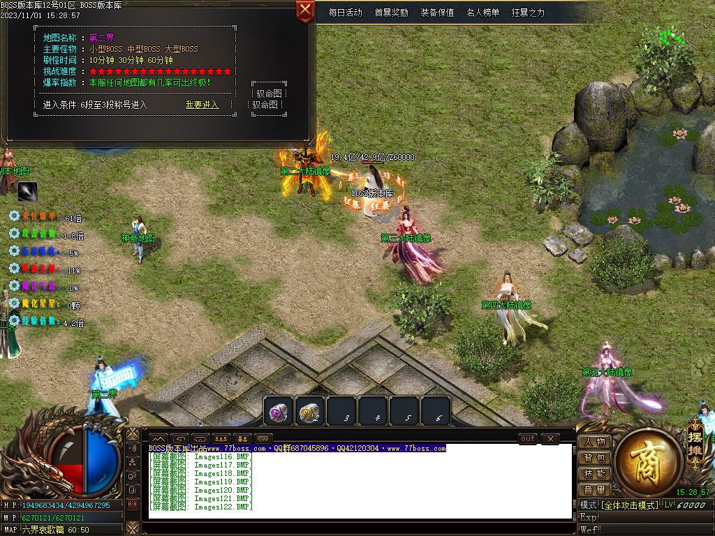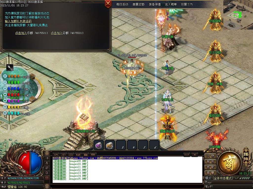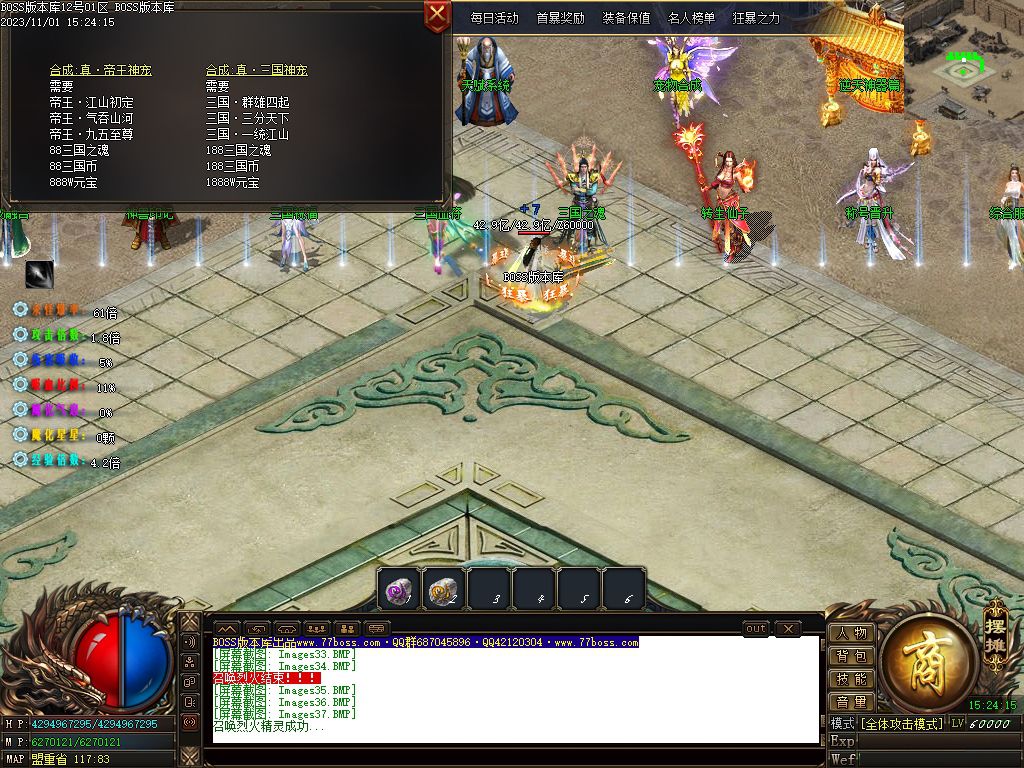4.本服地图超多,地图等级越高,爆率越高,地图里面刷新全BOSS模式.1000W血BOSS爆所有装备