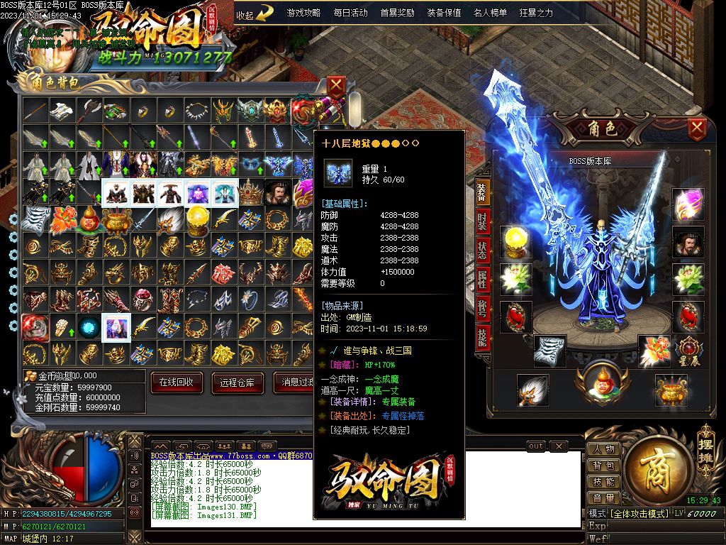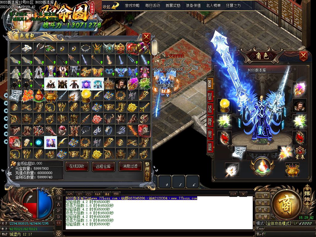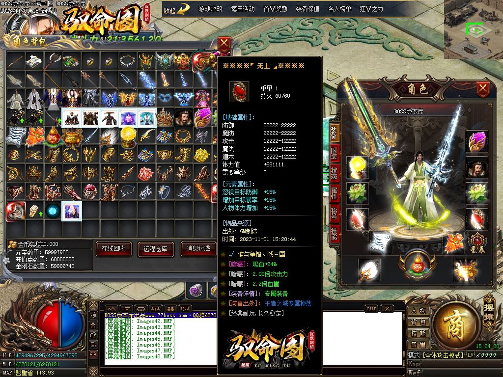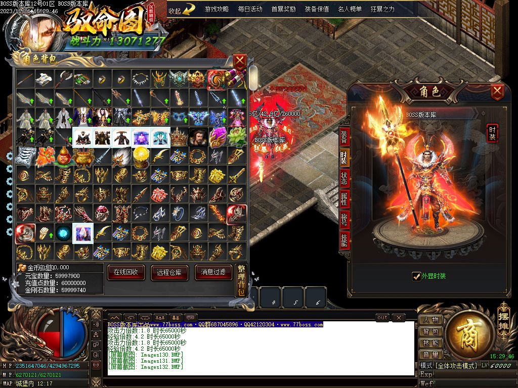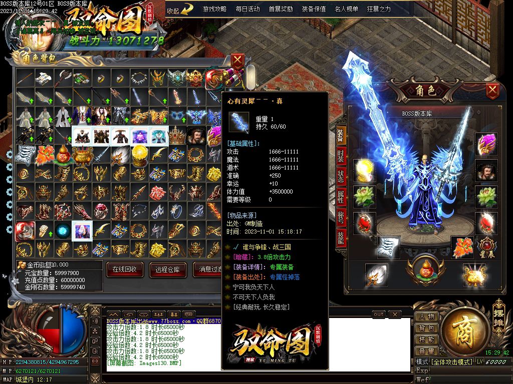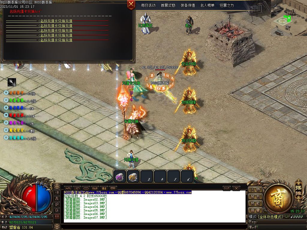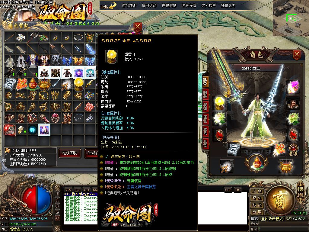 4.本服地图超多,地图等级越高,爆率越高,地图里面刷新全BOSS模式.1000W血BOSS爆所有装备