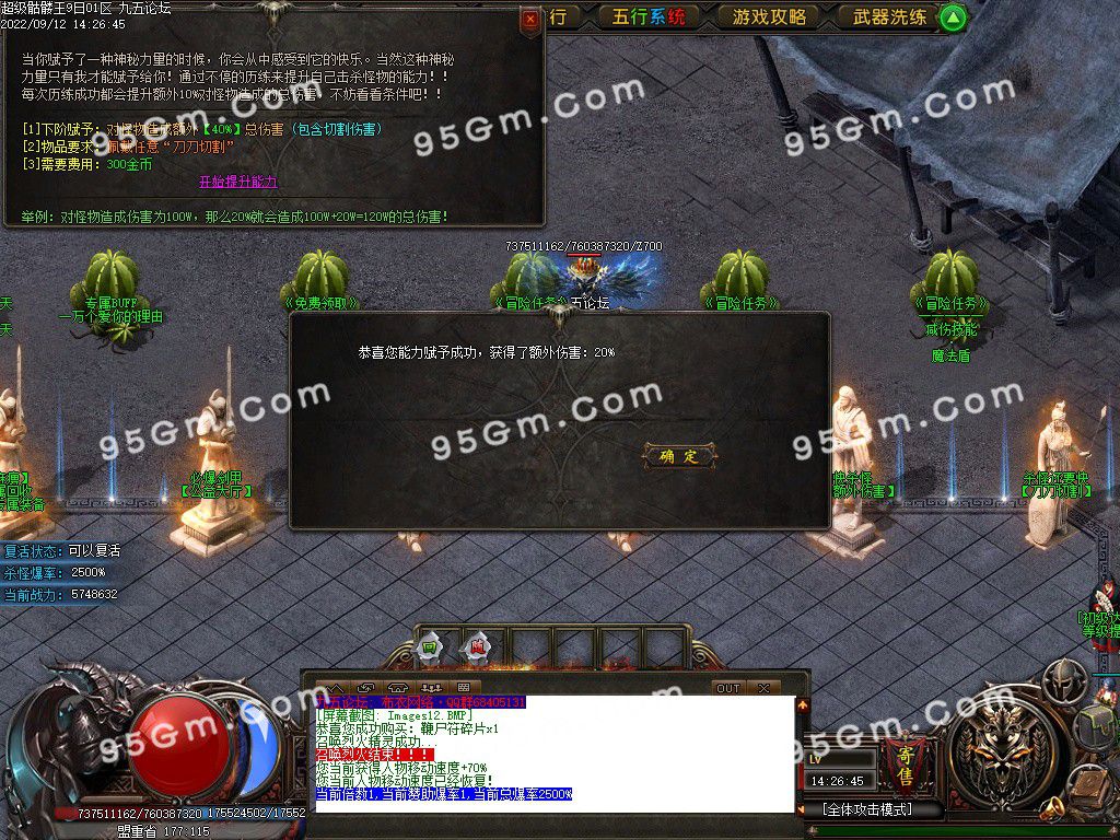 前往魅影新城-绝地求生,无限刷怪,刷升级材料【启封秘籍】同时也可以打到1.2-1.5倍攻血牛套。提升个人战力!